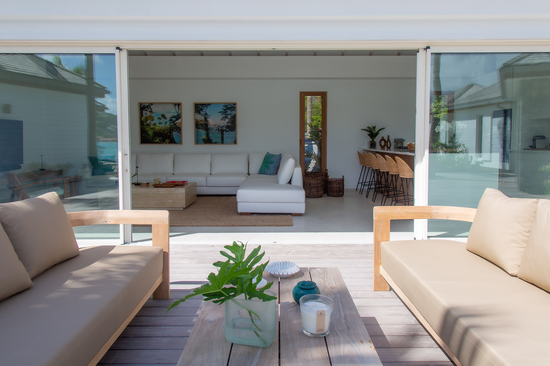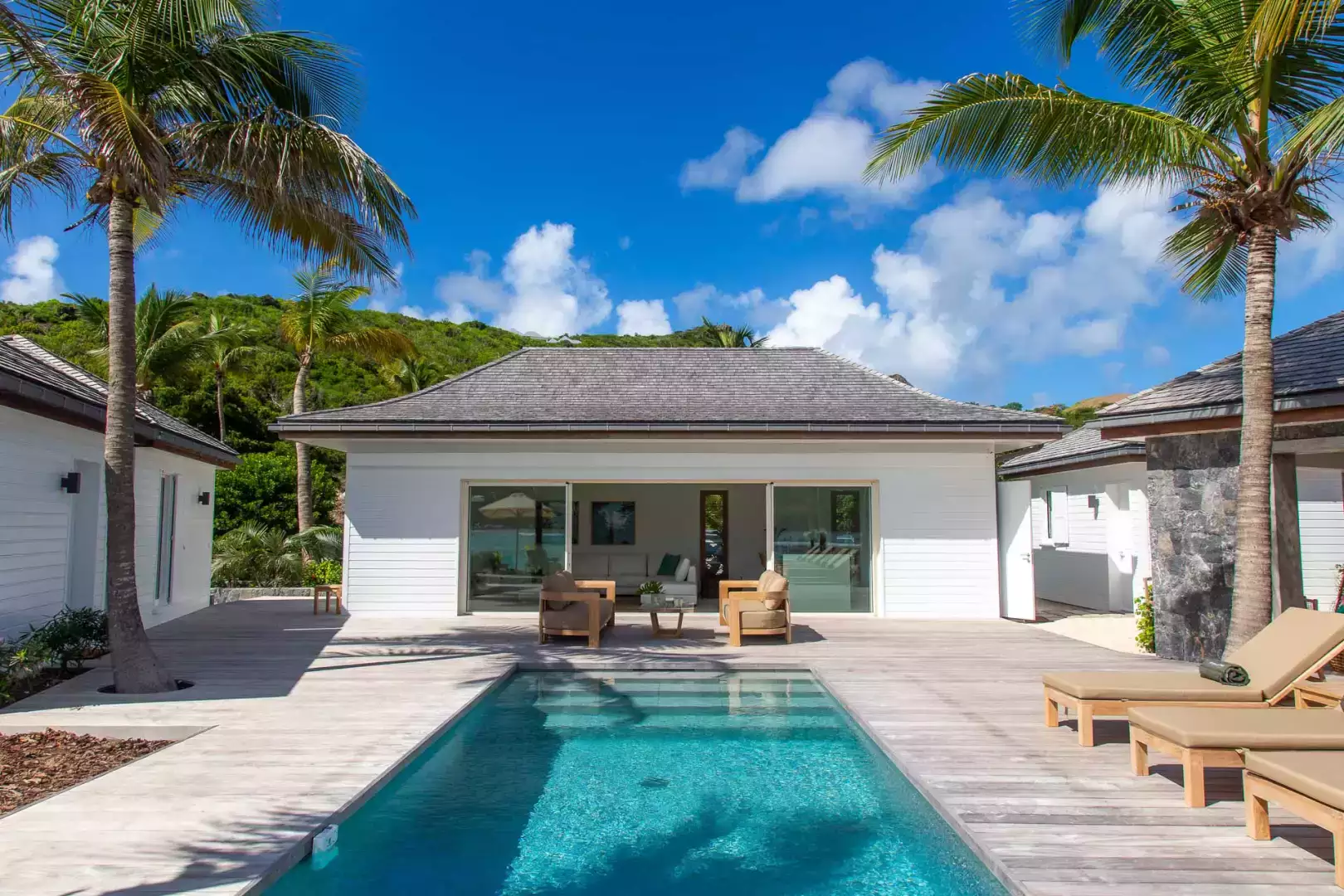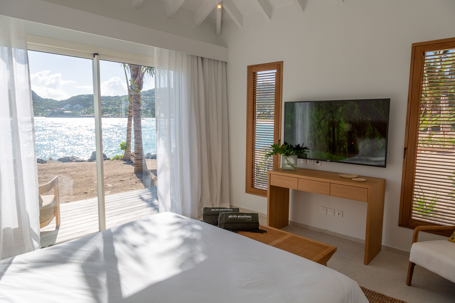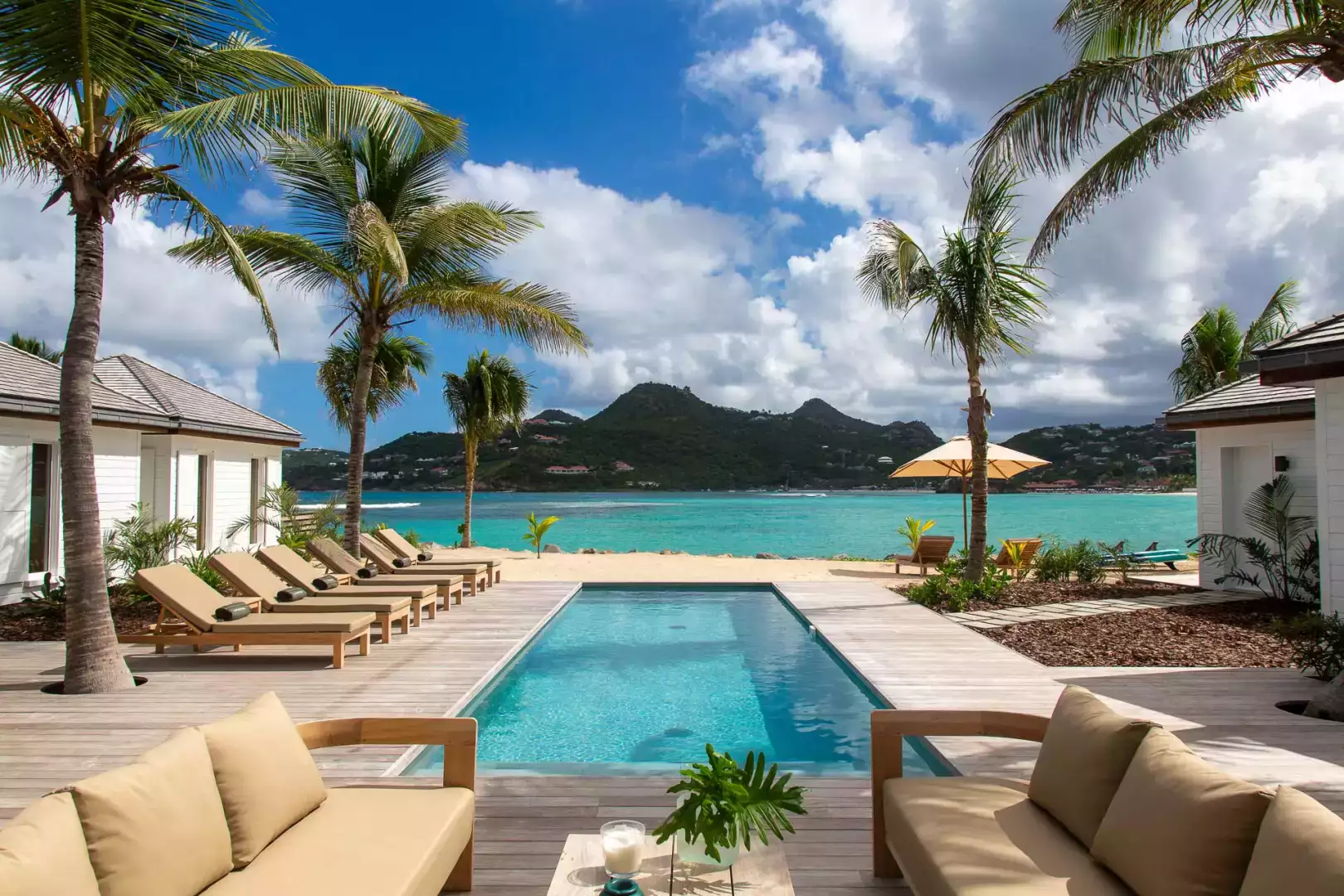 Outside, the property offers two swimming pools facing the ocean, several lounging areas, outdoor dining spaces with BBQ, and water equipment such as paddle boards. A private dock provides direct access to the sea, allowing guests to enjoy the crystal-clear waters at any time of day. With its prime location in St Jean and complete amenities, this villa combination is the perfect choice for a comfortable and memorable stay in St Barts.
