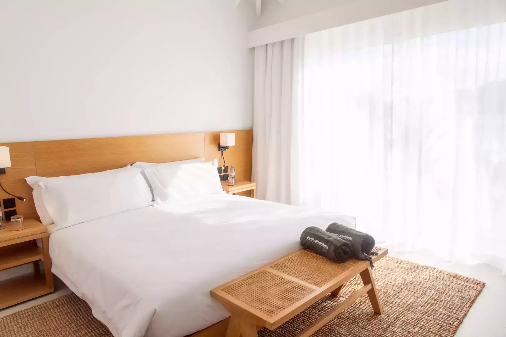 Sea view, King size bed (180 cm), A/C, ceiling fan, adjacent bathroom with shower and toilet, HDTV, hairdryer and safe.