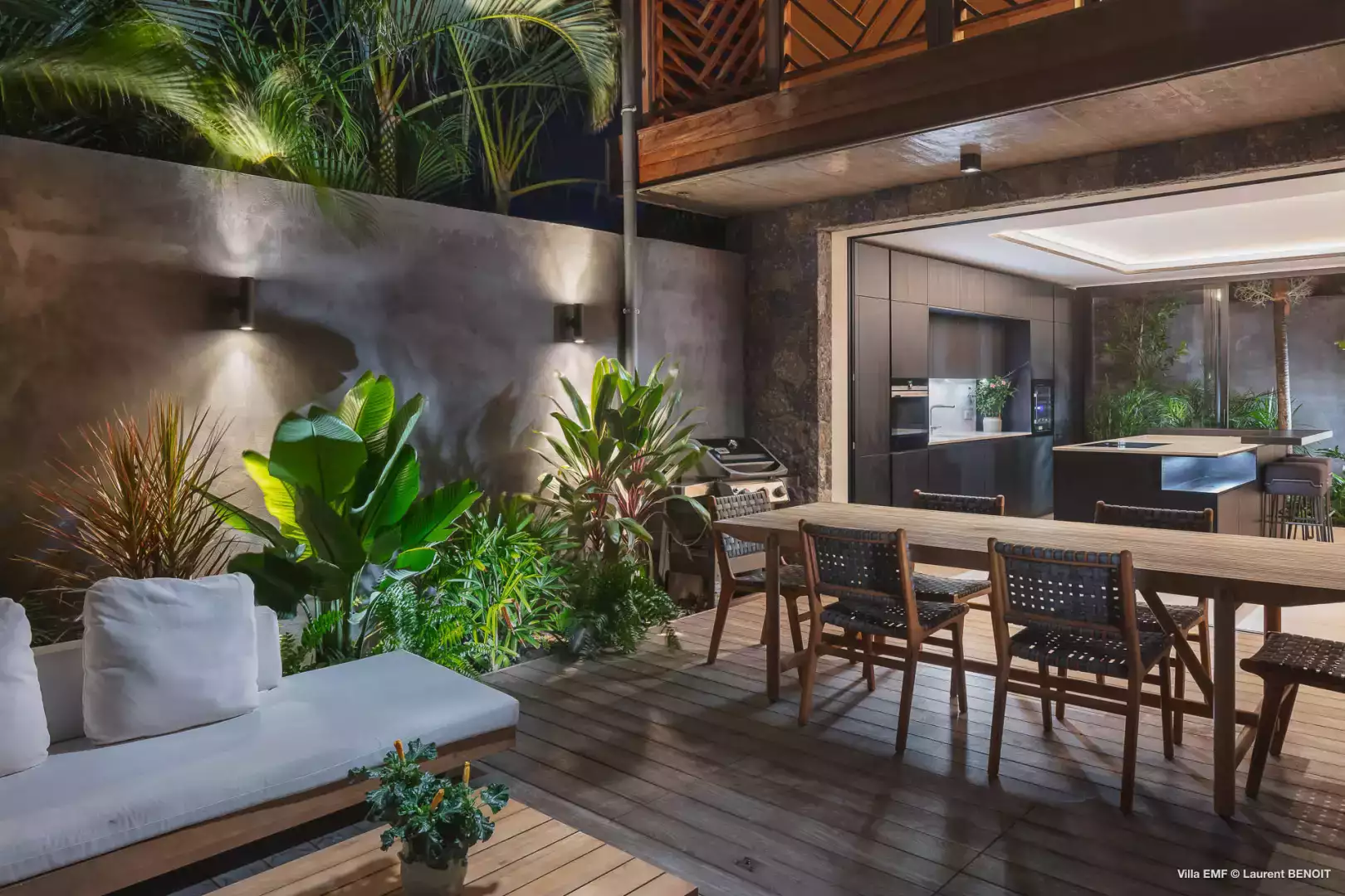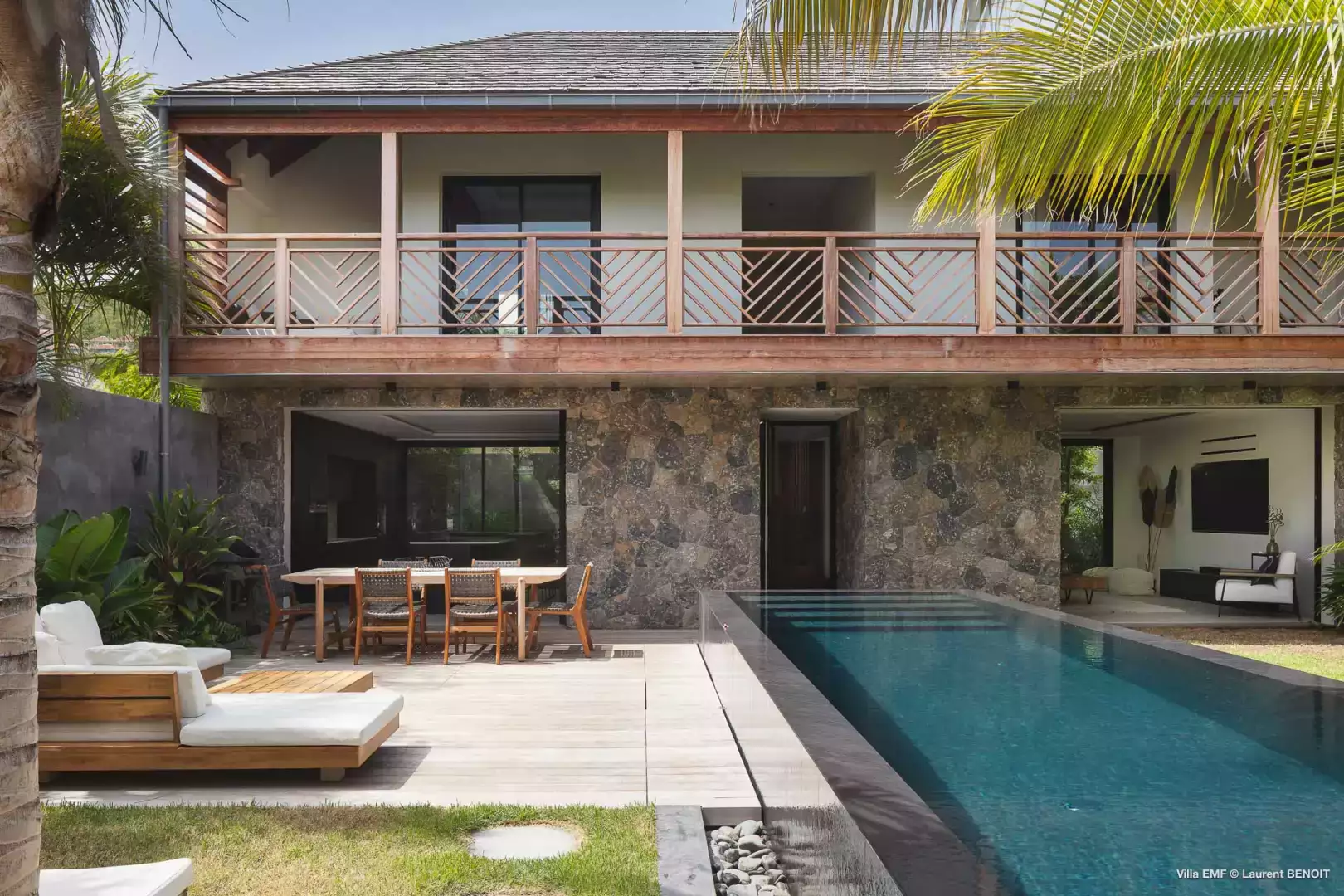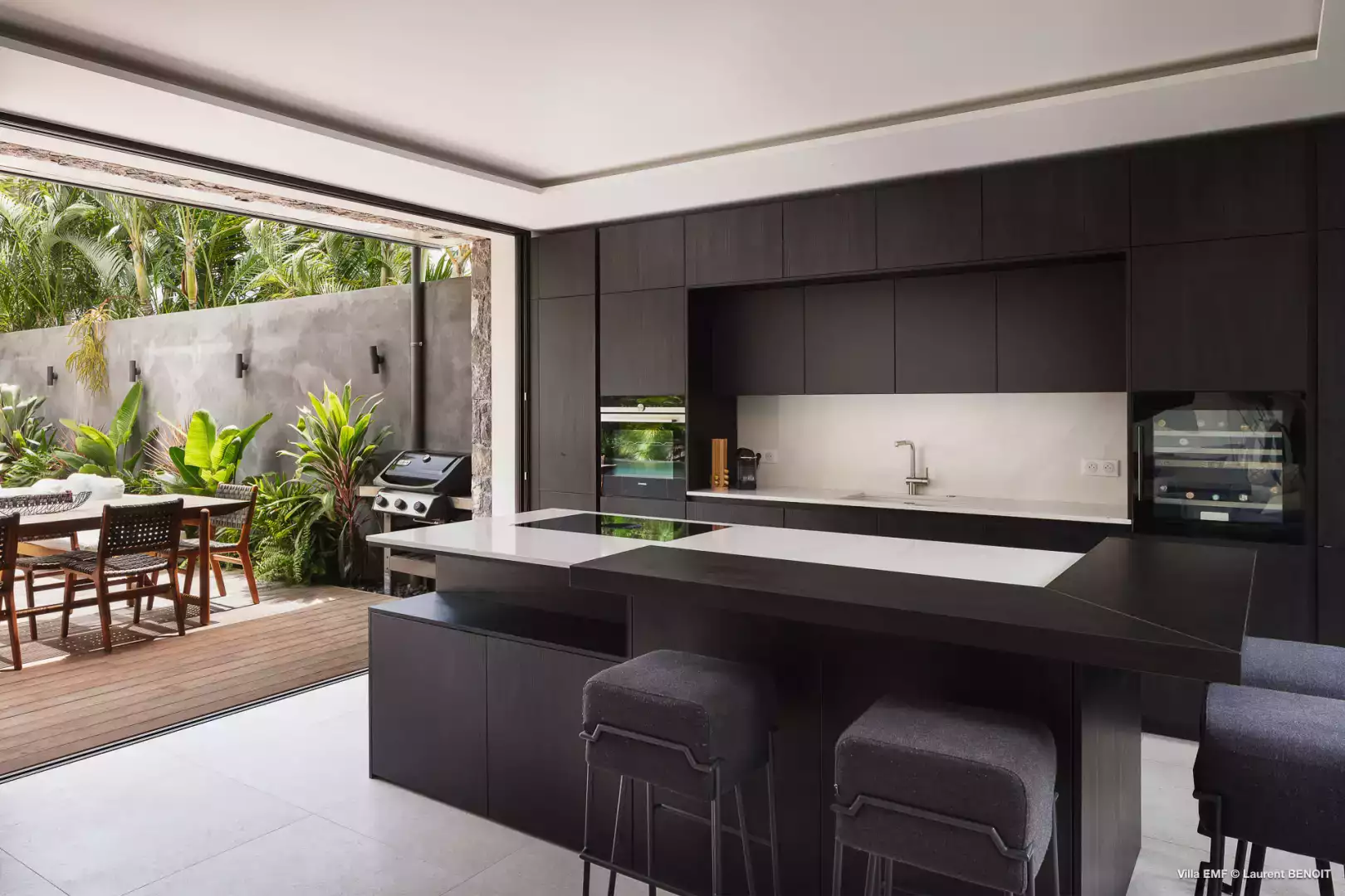 Located in Flamands, Villa Excuse My French is a stylish and modern retreat nestled in lush tropical surroundings. With clean lines and natural textures, the villa exudes understated elegance and peaceful energy.