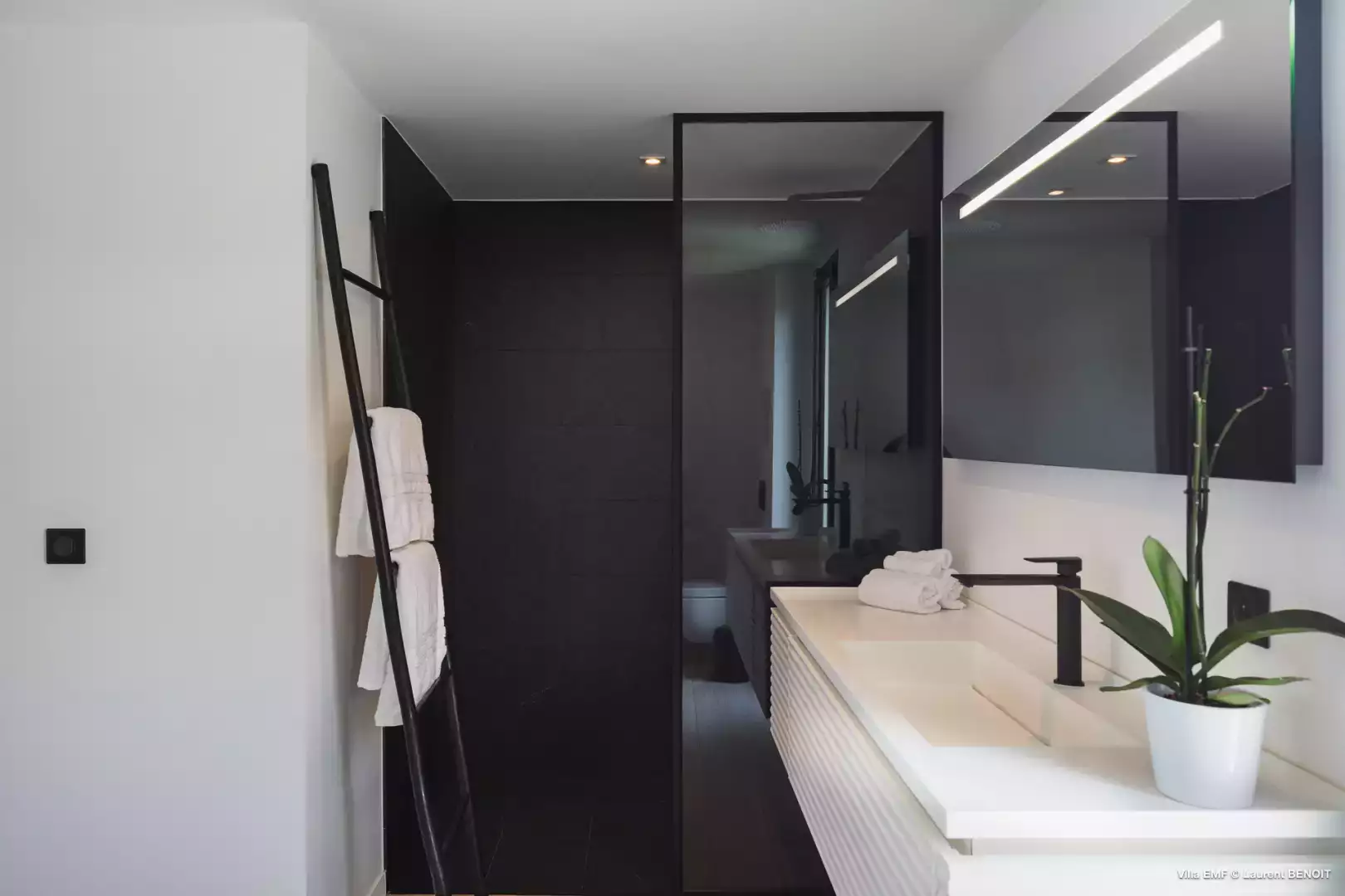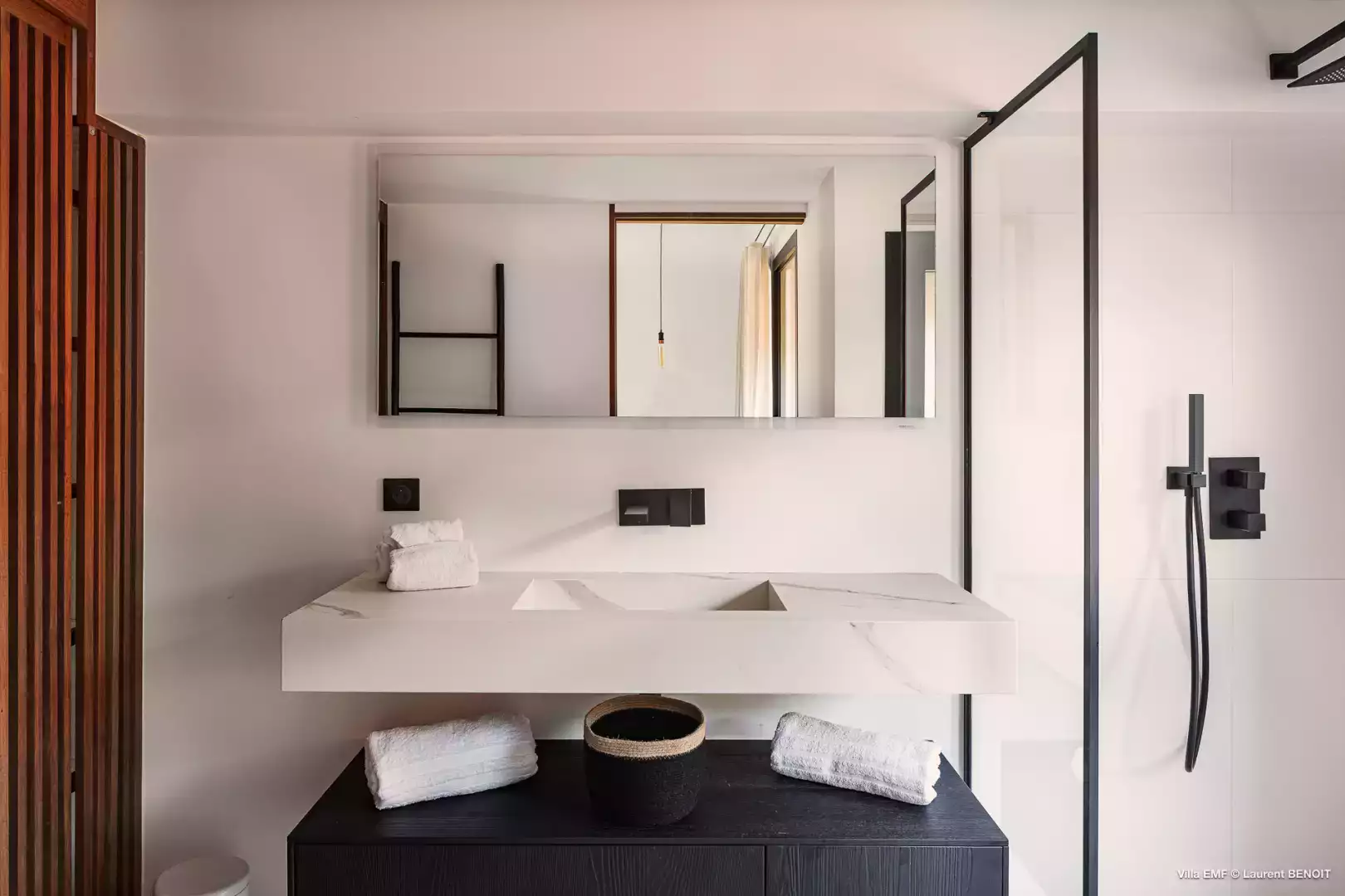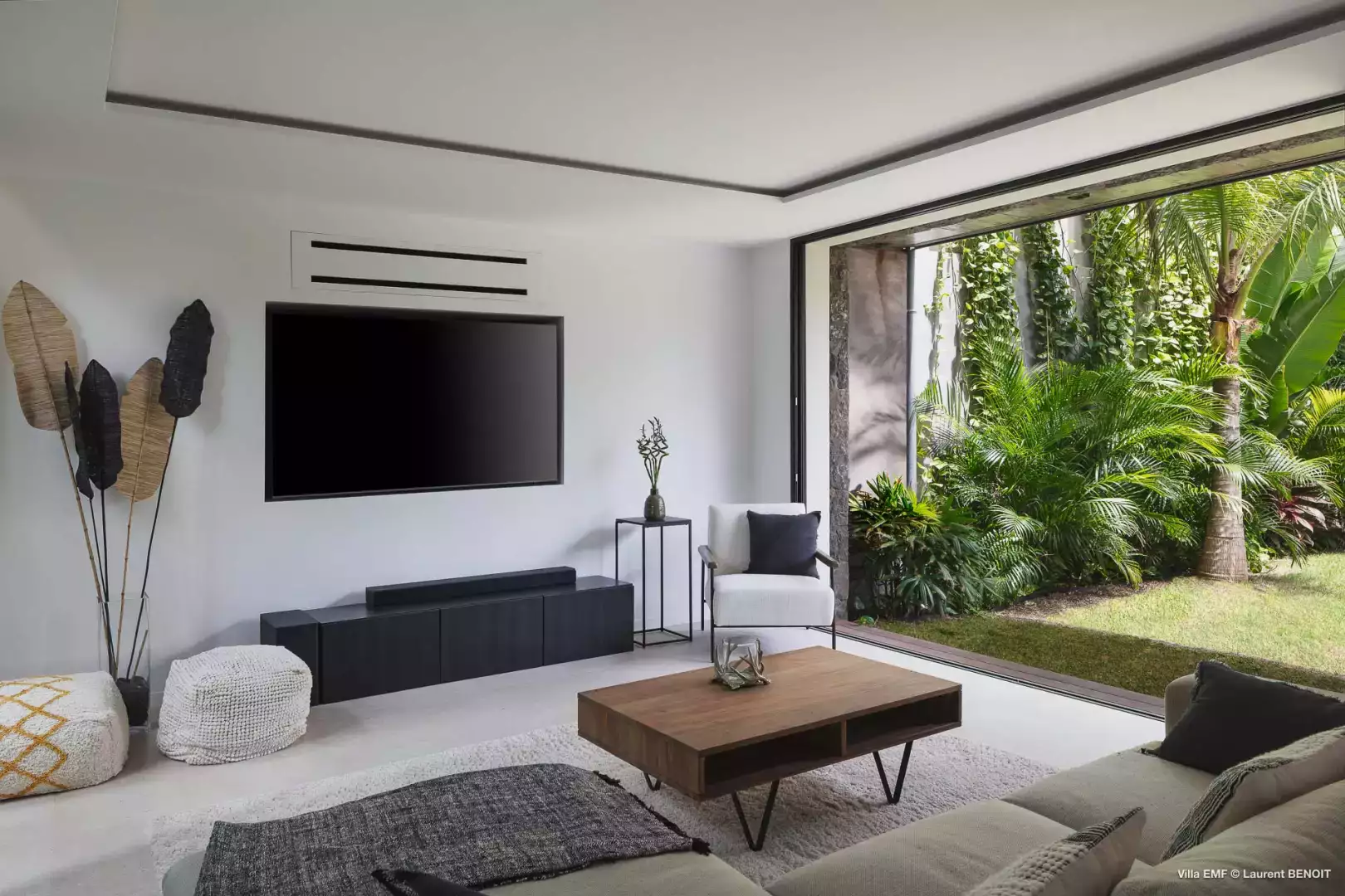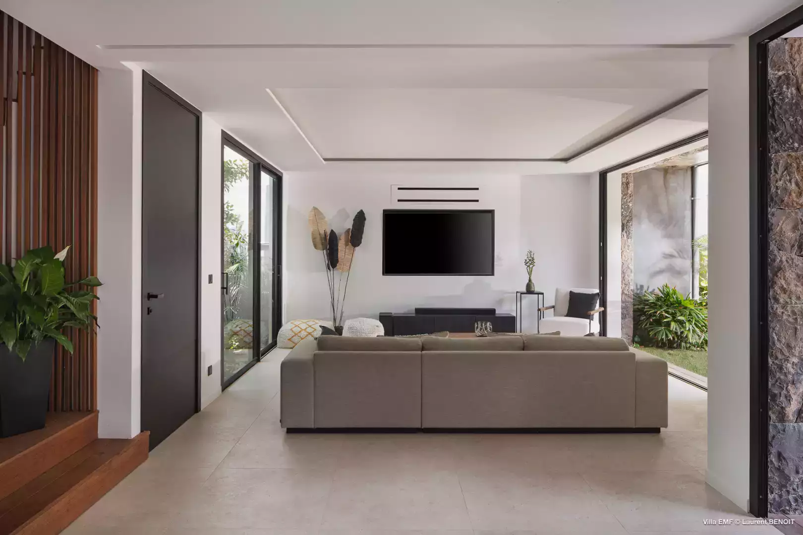 Located in Flamands, Villa Excuse My French is a stylish and modern retreat nestled in lush tropical surroundings. With clean lines and natural textures, the villa exudes understated elegance and peaceful energy.