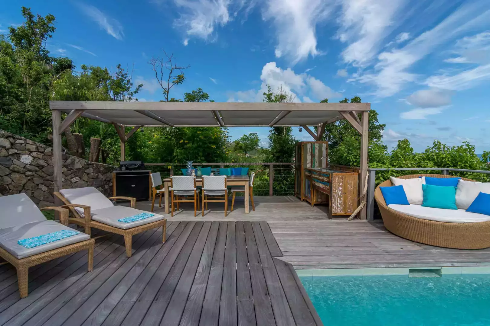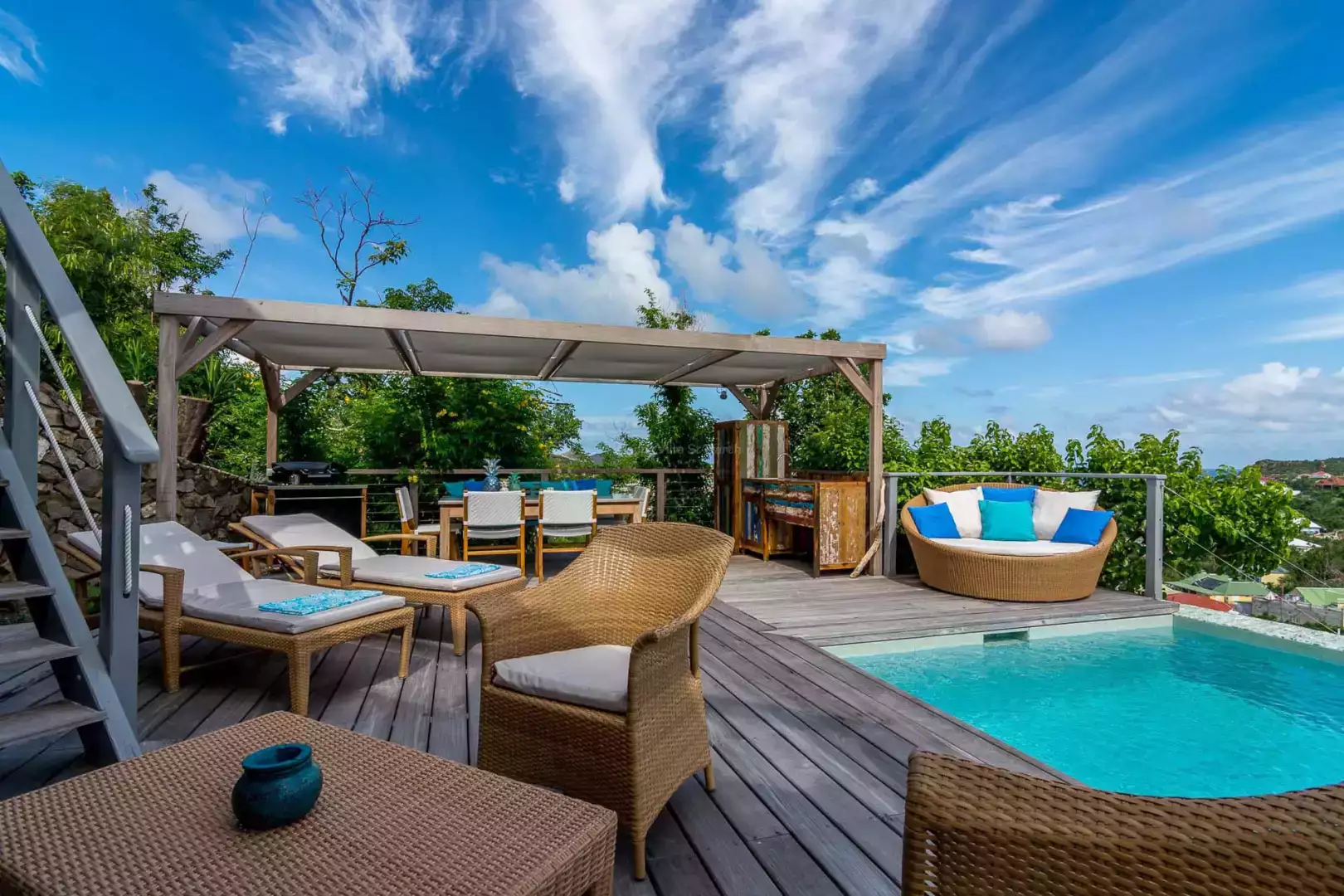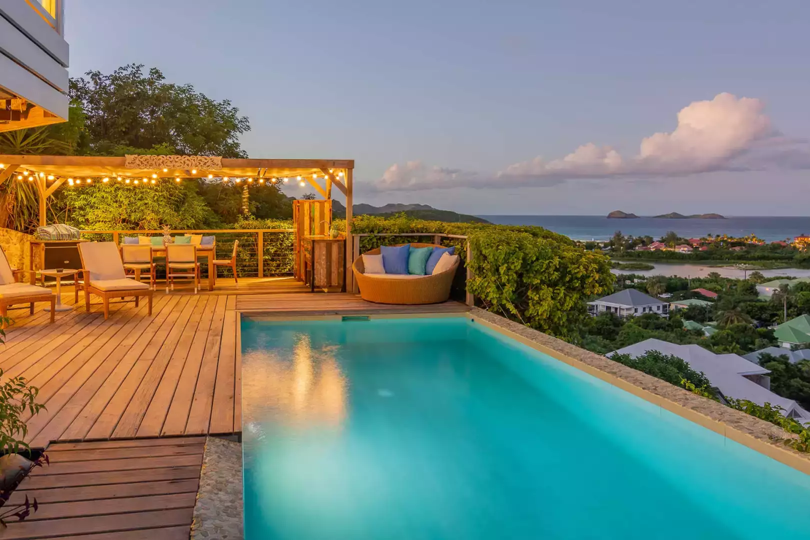 Situated on the heights of St. Jean, the Villa Fleur de Cactus provides breathtaking views of the bay of St. Jean, the sea, and the surrounding islands.