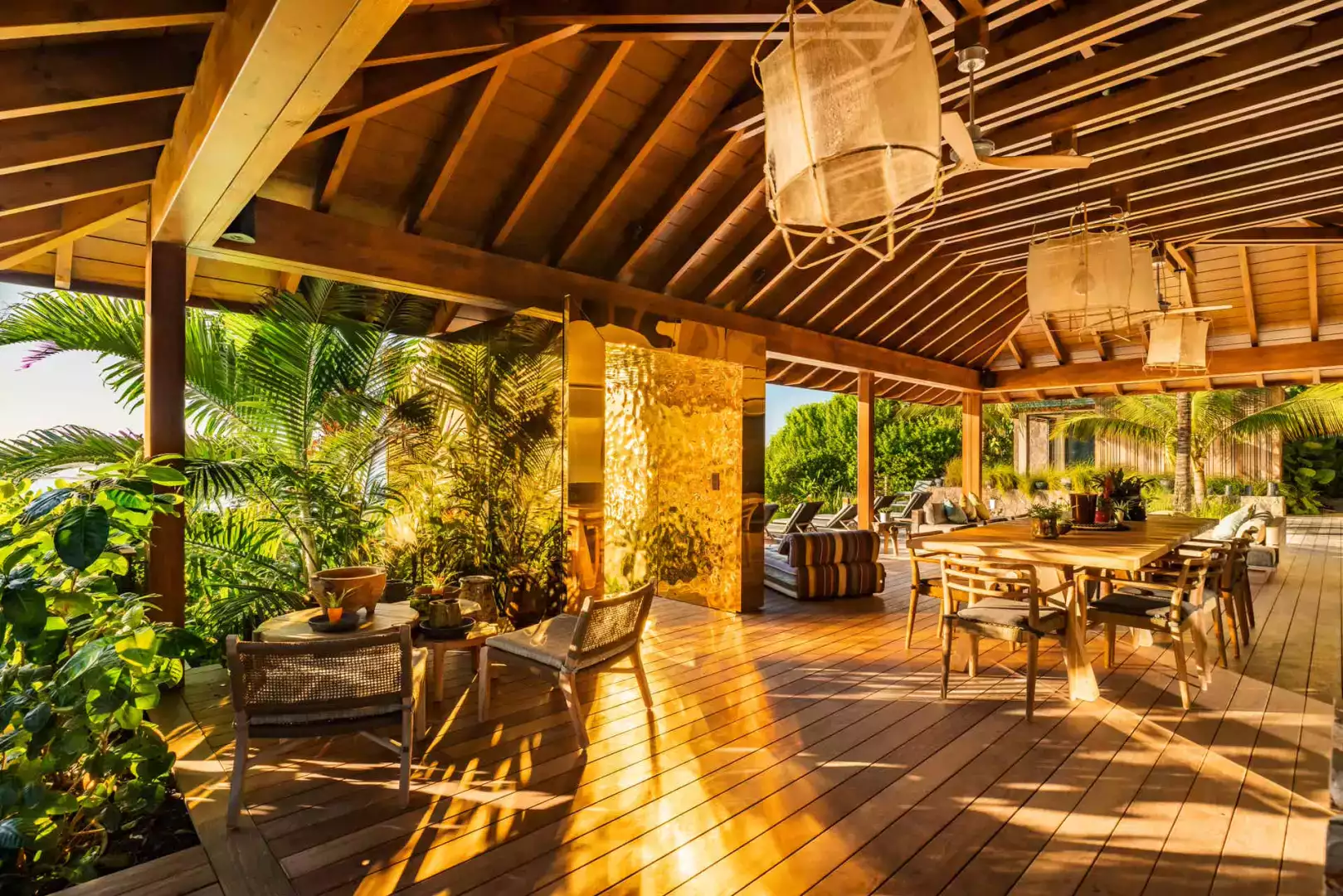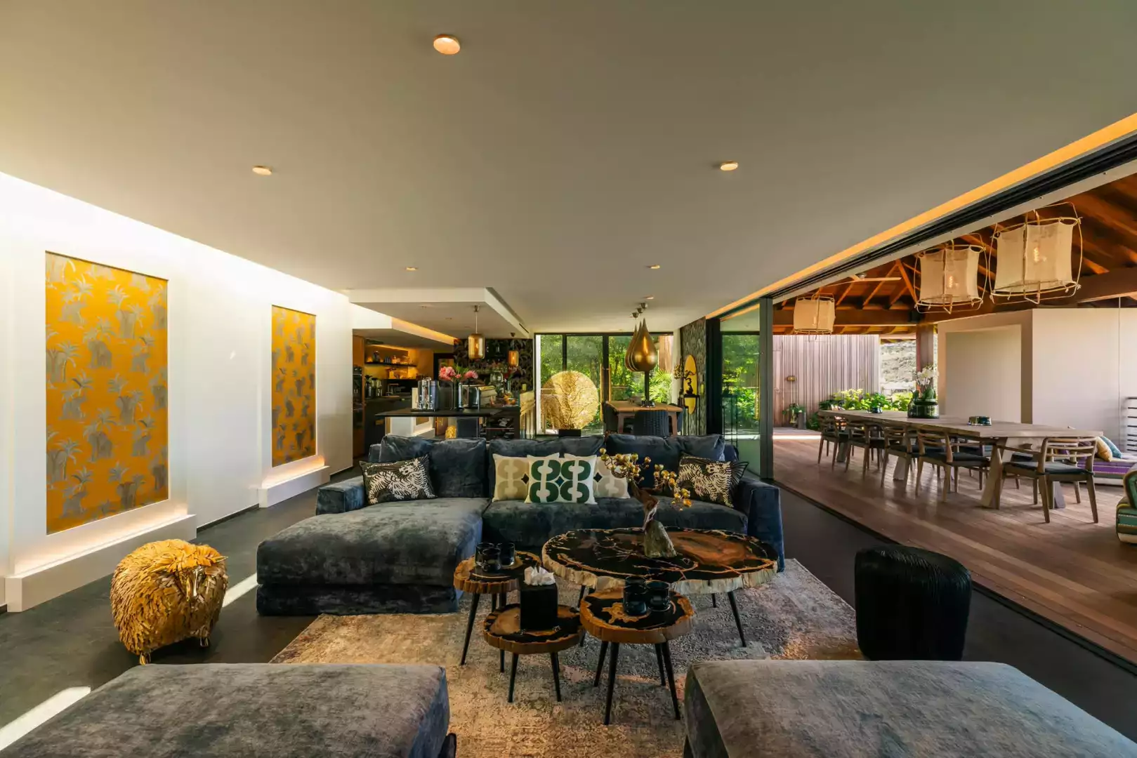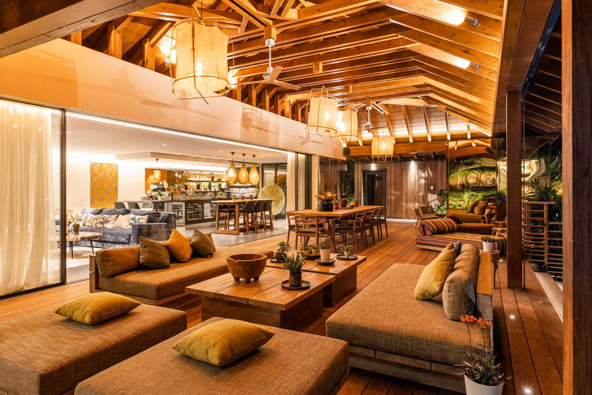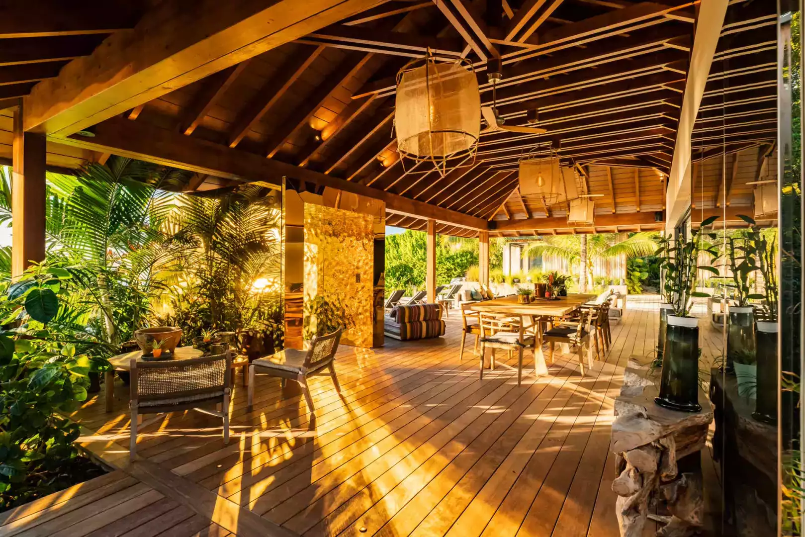 Set above the turquoise lagoon of Grand Cul de Sac, Villa Larimar is a beautifully curated retreat where modern elegance blends seamlessly with warm, natural Caribbean inspiration. Designed to celebrate both indoor and outdoor living, the villa offers generous volumes, soft lighting, and refined materials that create an immediate sense of comfort. The living room opens onto a large terrace with sweeping ocean views, connecting effortlessly with the expansive outdoor lounge and dining areas. A professional-grade kitchen completes the space, ideal for cooking enthusiasts or private chef dinners, while the spectacular wooden dining pavilion invites long, memorable evenings.