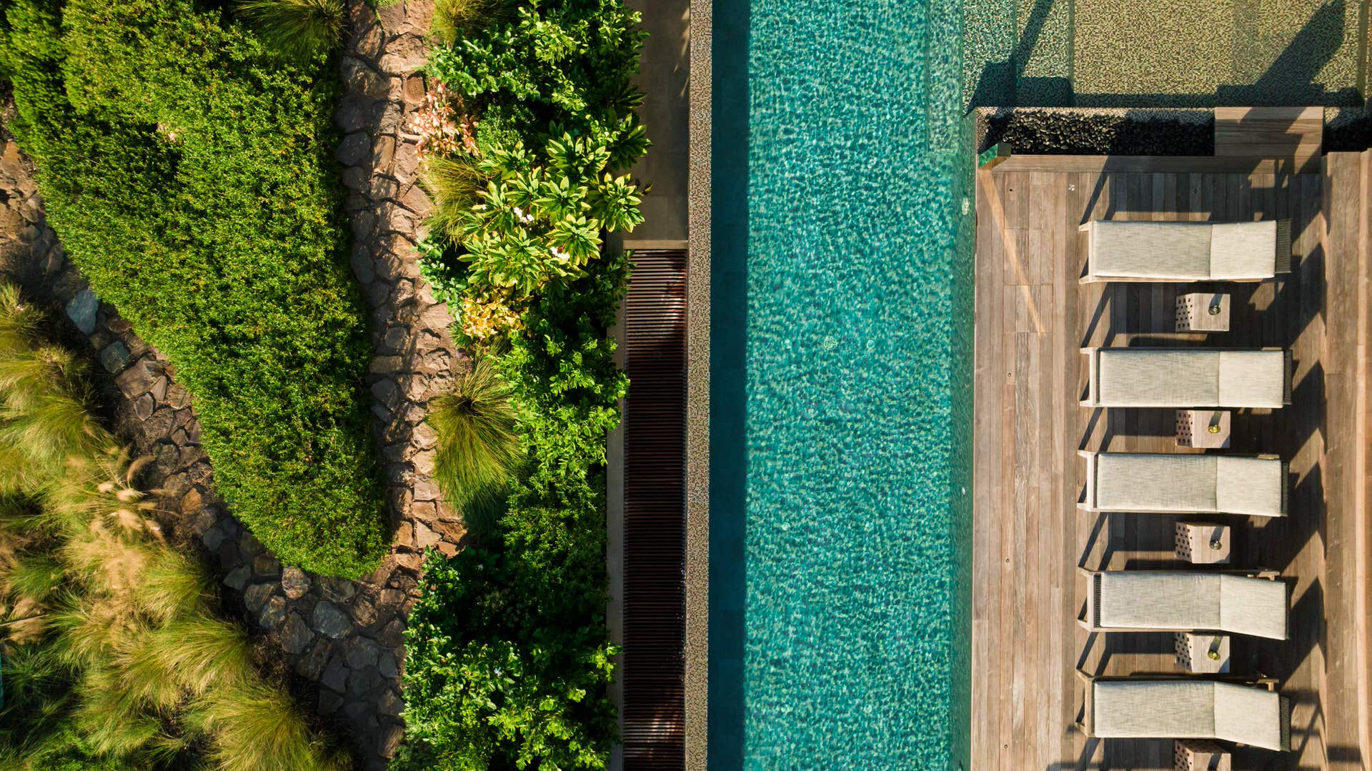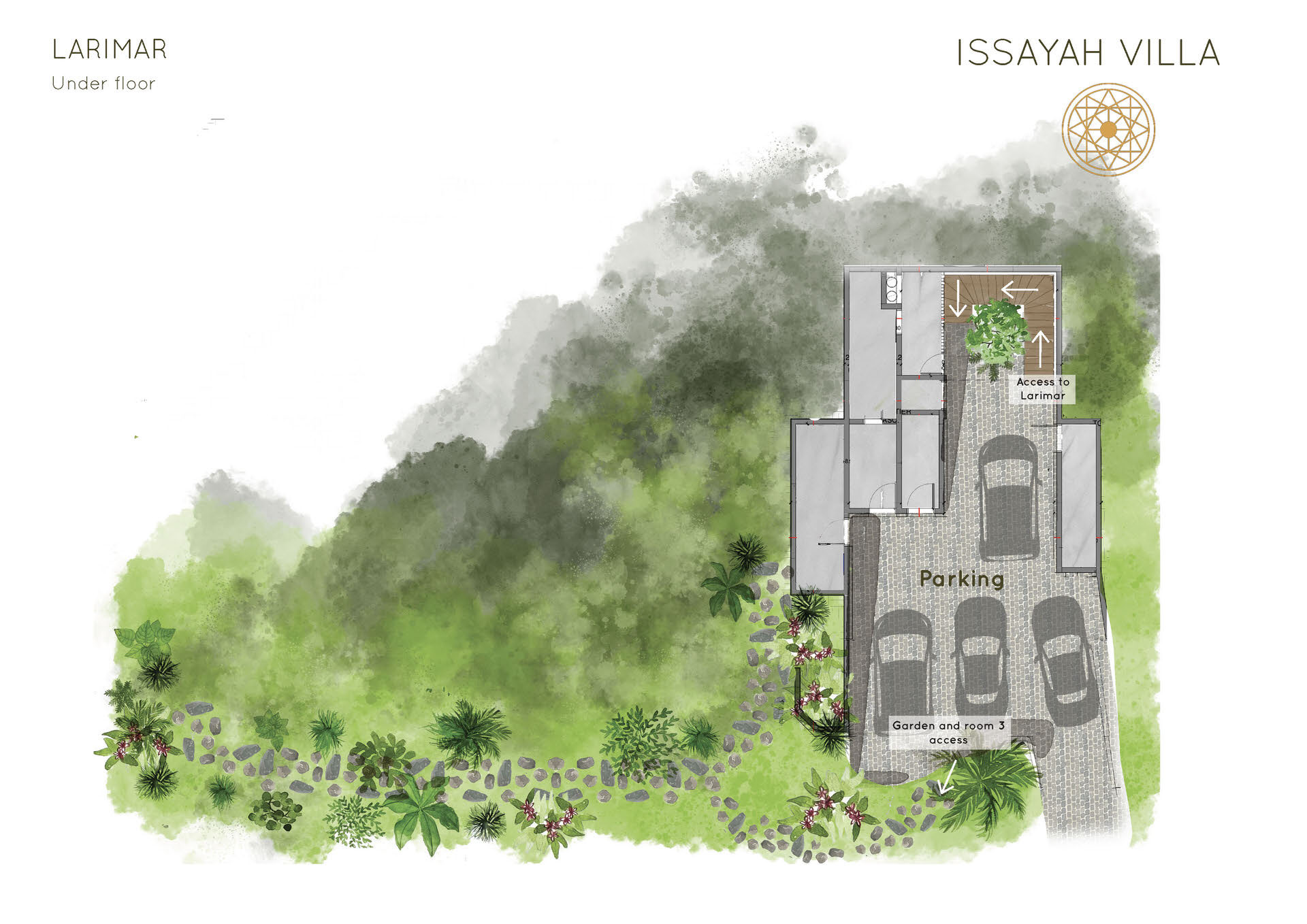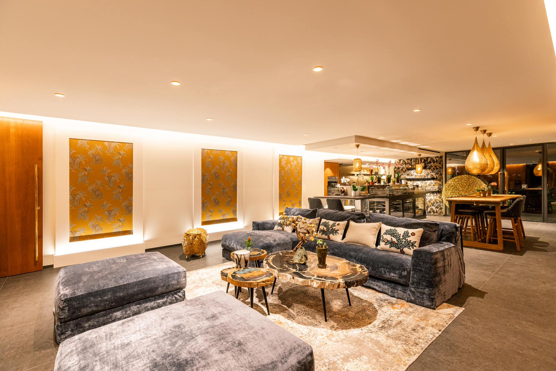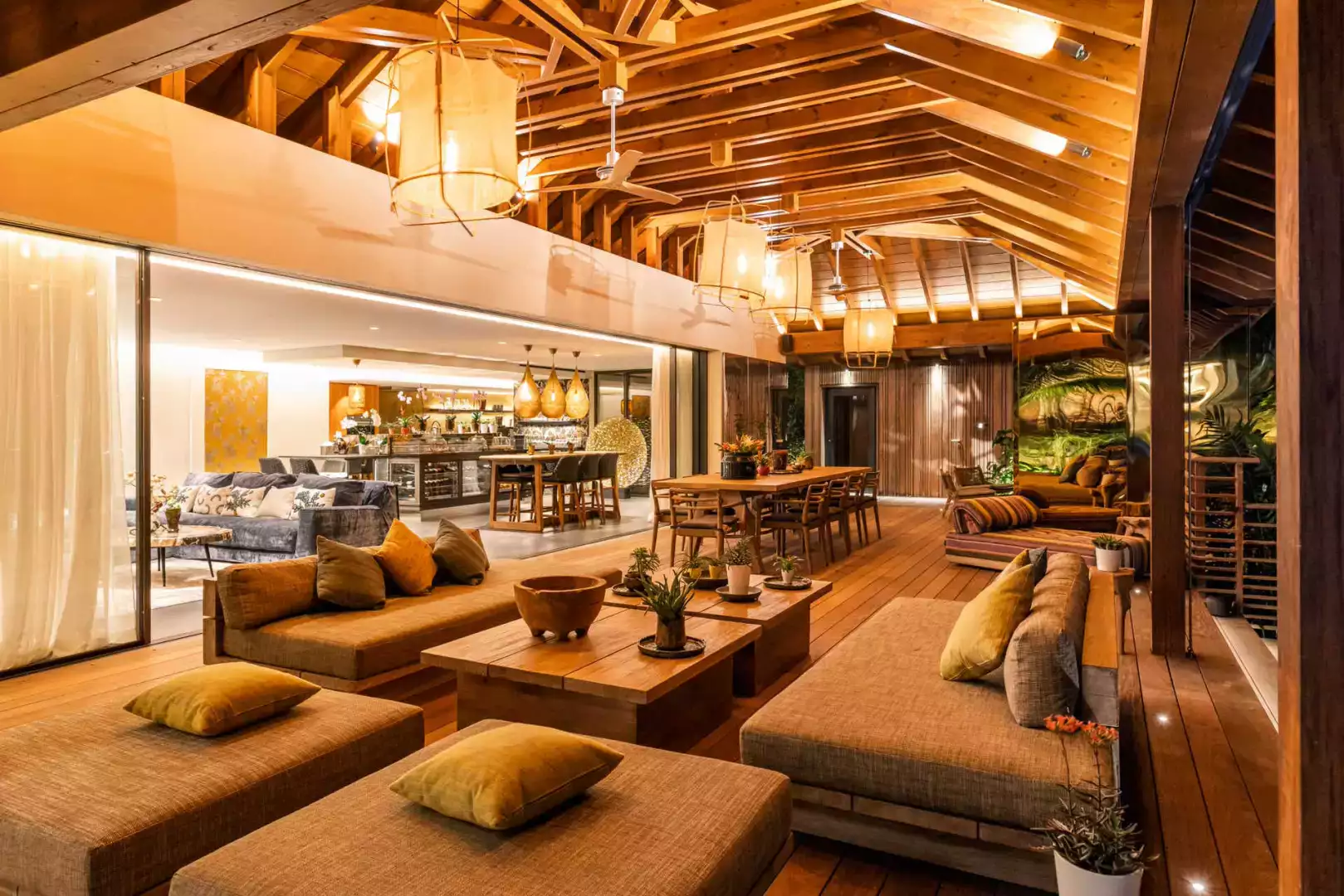 Each of the four bedrooms offers a serene sanctuary, featuring luxurious details, soothing textures, and spacious en-suite bathrooms. Some open directly onto the sea view, others onto lush tropical gardens, but all share the same level of comfort and understated sophistication. The heated infinity pool seamlessly merges with the surrounding landscape and is bordered by lush vegetation and multiple sun-filled lounging areas.