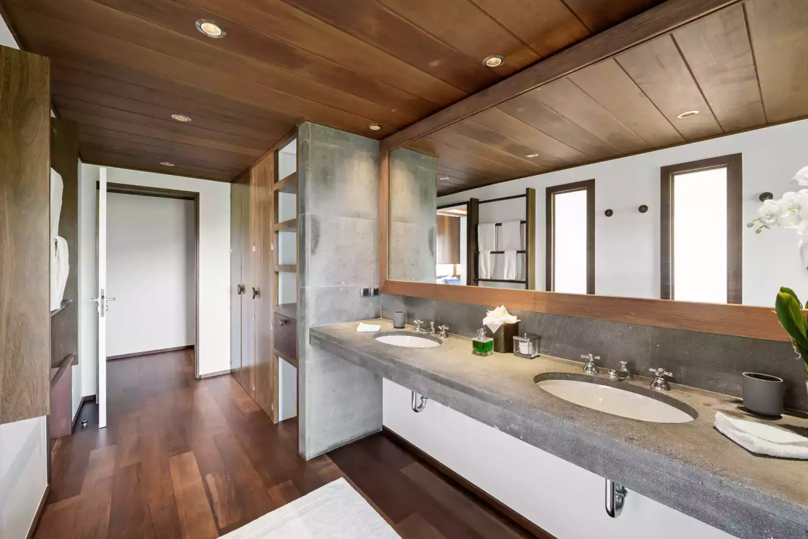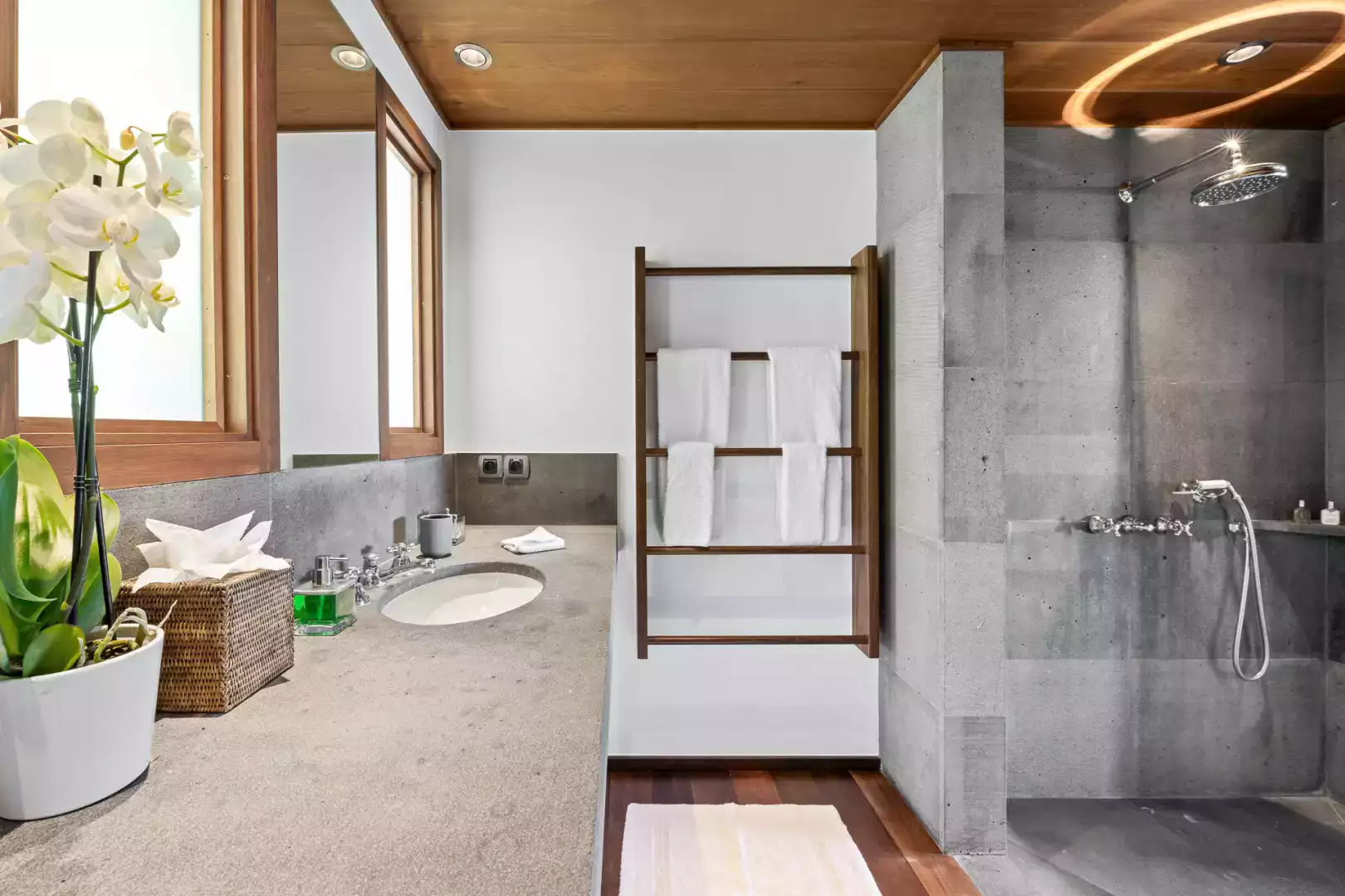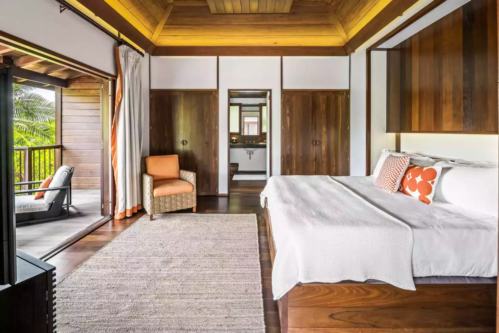 The three bedrooms are situated in separate bungalows, each with its own ensuite bathroom and a beautiful view of the lagoon. The largest bedroom boasts a private terrace for added privacy.