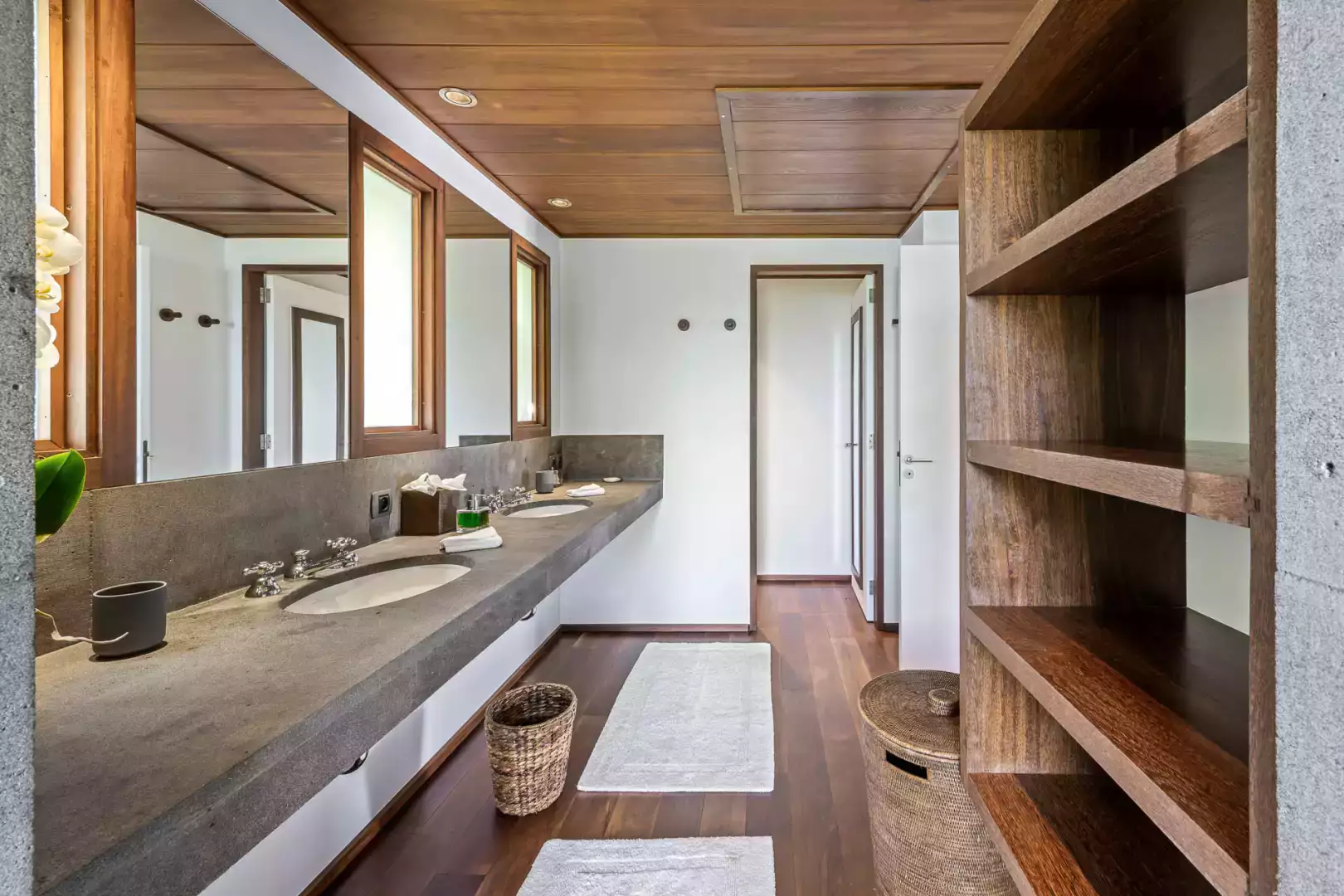 With wooden accents in its decor, the villa creates a warm and cozy atmosphere. The air-conditioned living room opens to a fully equipped kitchen, perfect for enjoying quality time together.