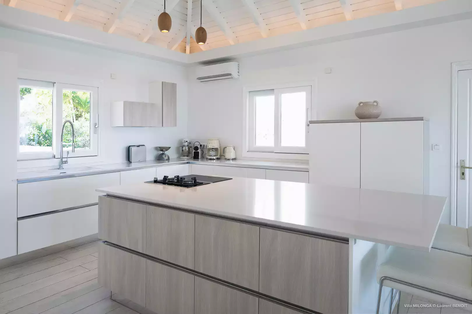 It's located a 5-minute drive to the beach and the grocery stores in Lorient and 15 min to the shops, bars and restaurants in Gustavia.