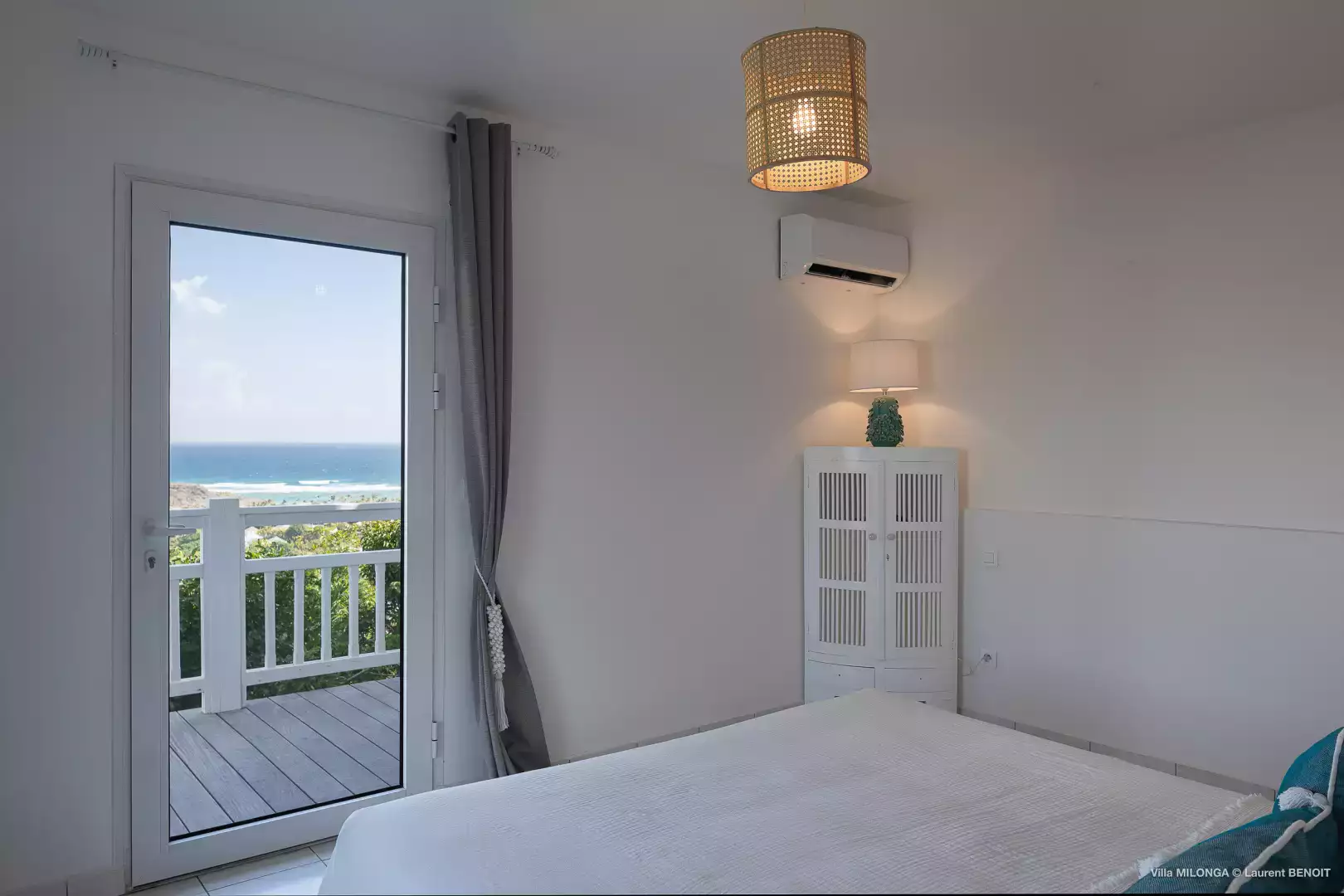 King size bed (180 cm), A/C, ceiling fan, sea view, ensuite bathroom with shower and toilet, Apple TV and Direct TV, hairdryer, safe. Connects to Bedroom 3