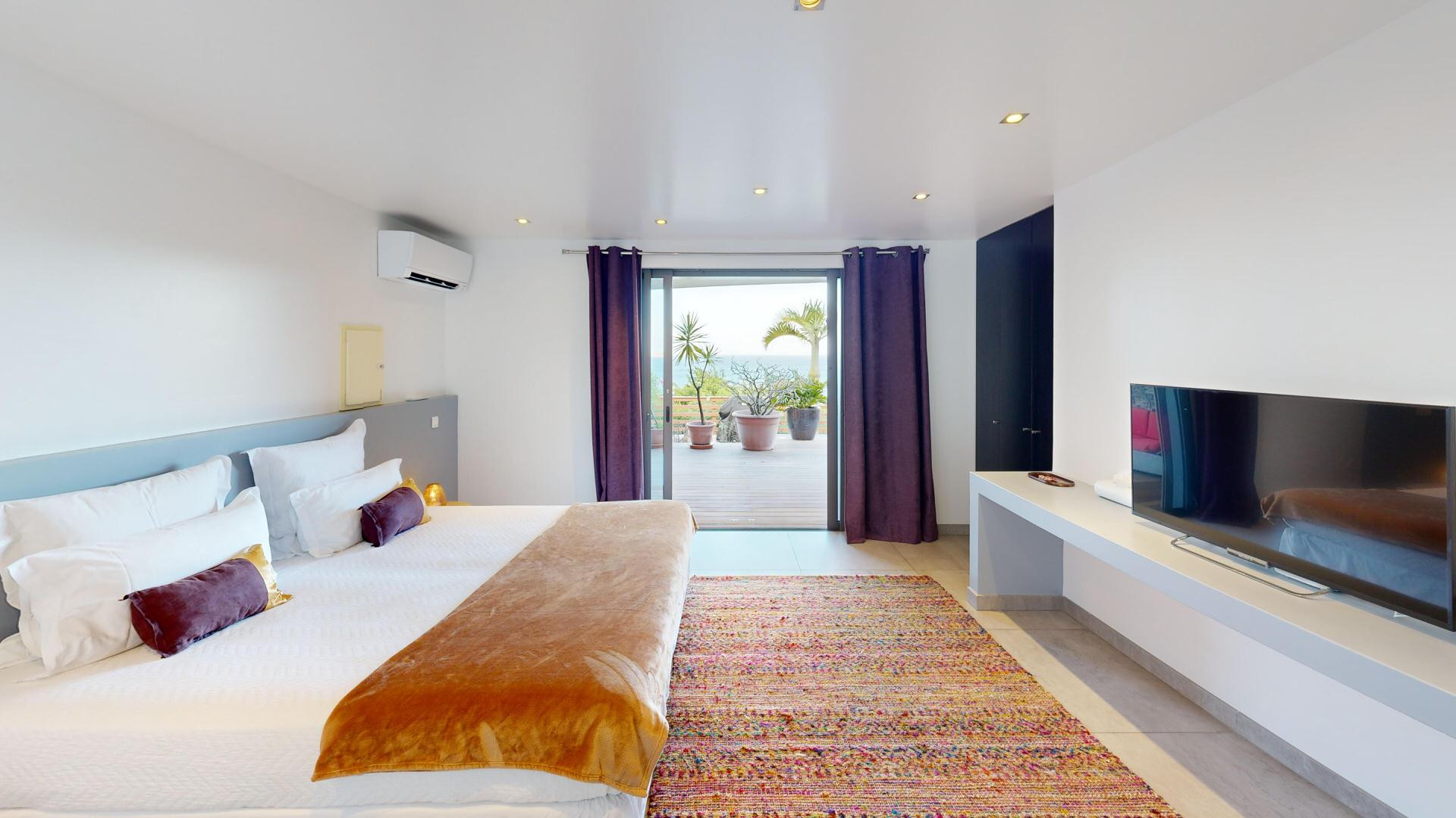 Next to the living room, Queen size bed (160 cm), A / C, sea view, ensuite bathroom with shower and toilet, hairdryer, safe