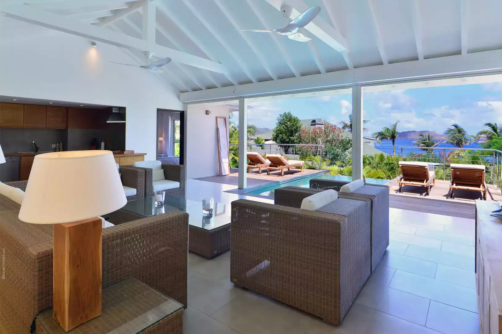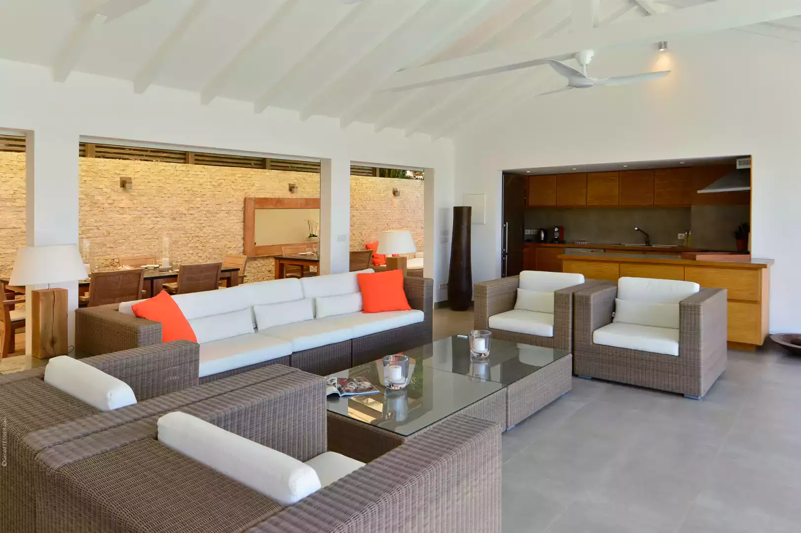 The villa's open kitchen seamlessly connects to the spacious living room, creating a perfect hub for gatherings.