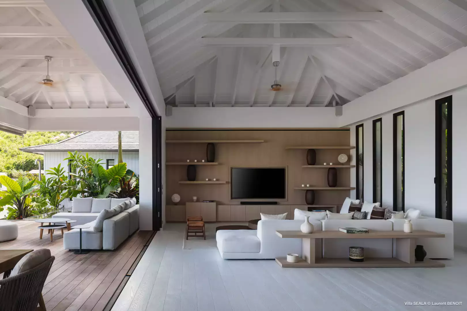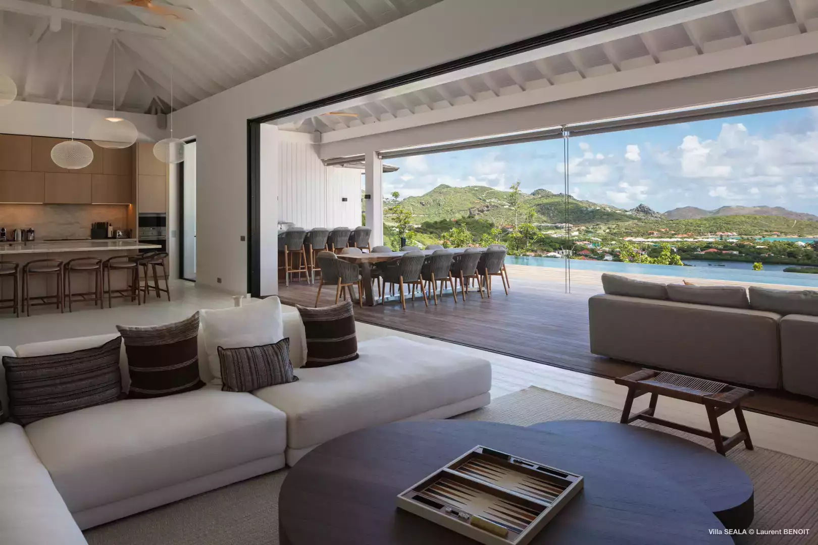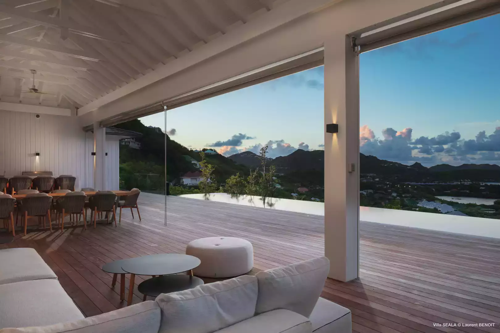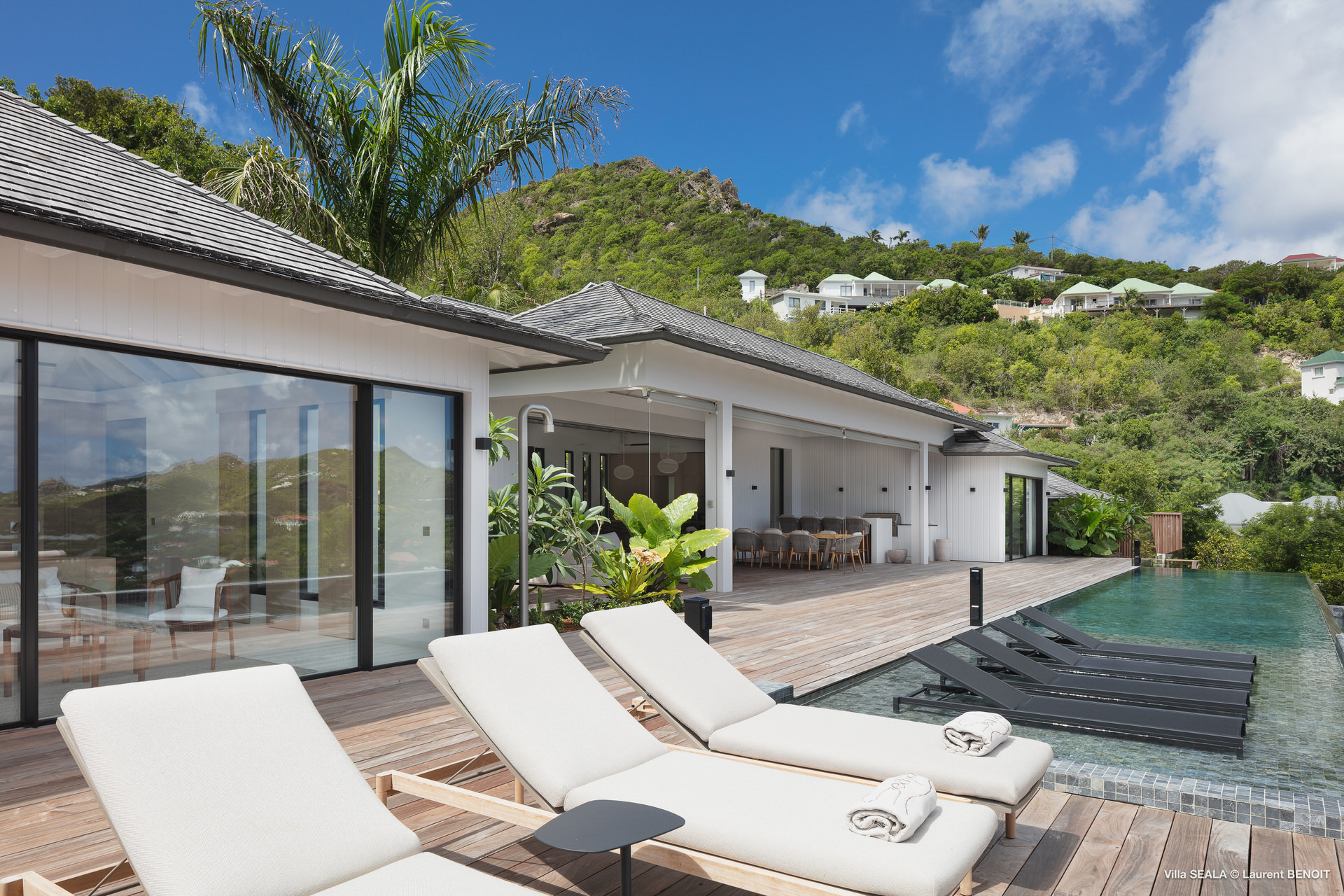 Perched above St Jean, Villa Seala enjoys breathtaking views over the turquoise bay and the lush hills of St Barts. This contemporary five-bedroom villa stands out for its refined architecture, generous volumes, and serene atmosphere. Bright, open living spaces flow seamlessly onto a spacious terrace and a heated infinity pool, perfect for enjoying the scenery from sunrise to sunset.