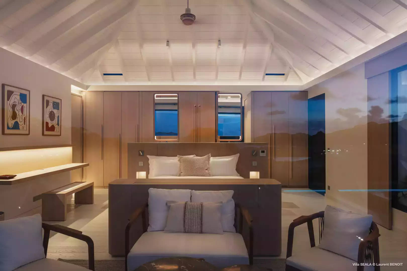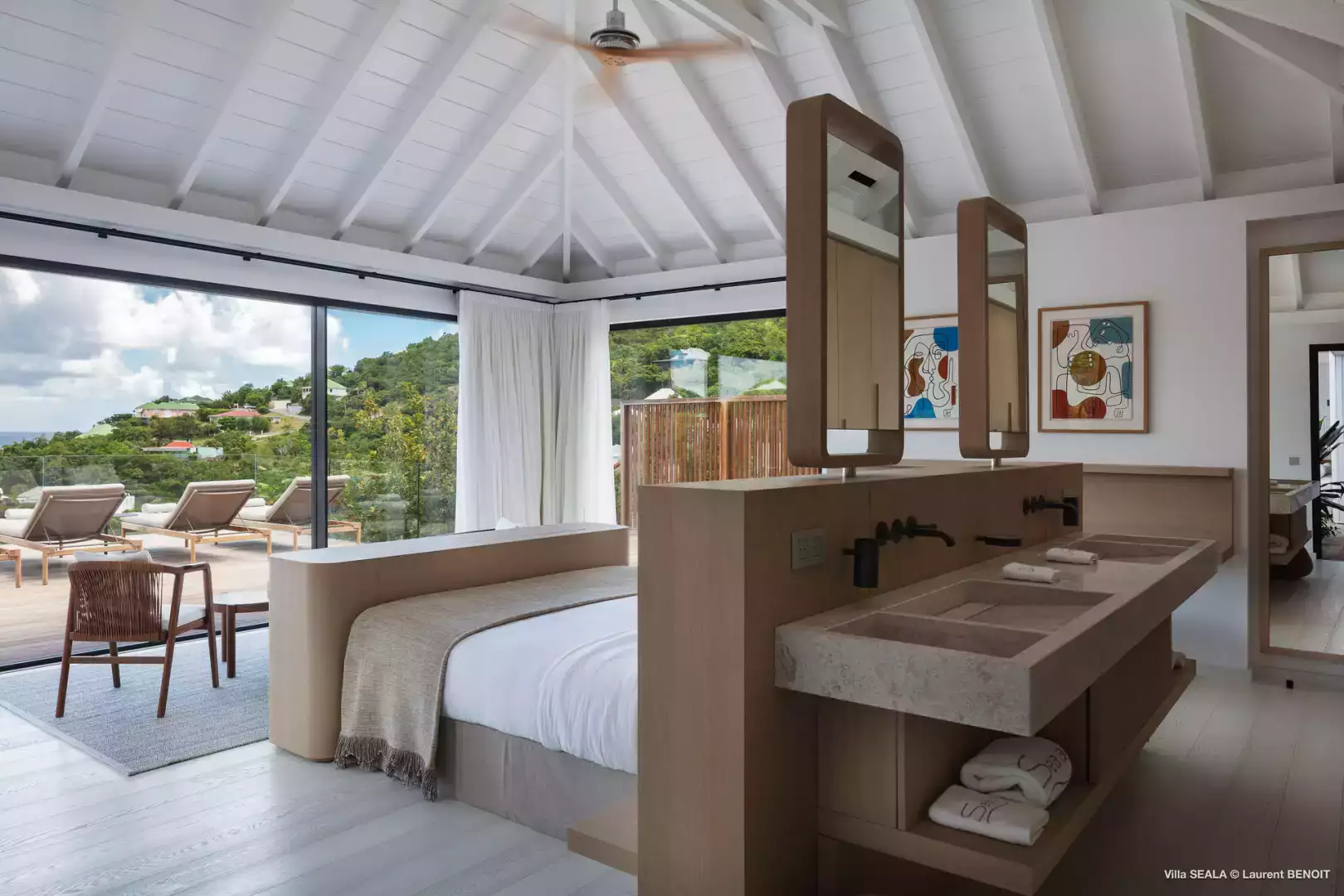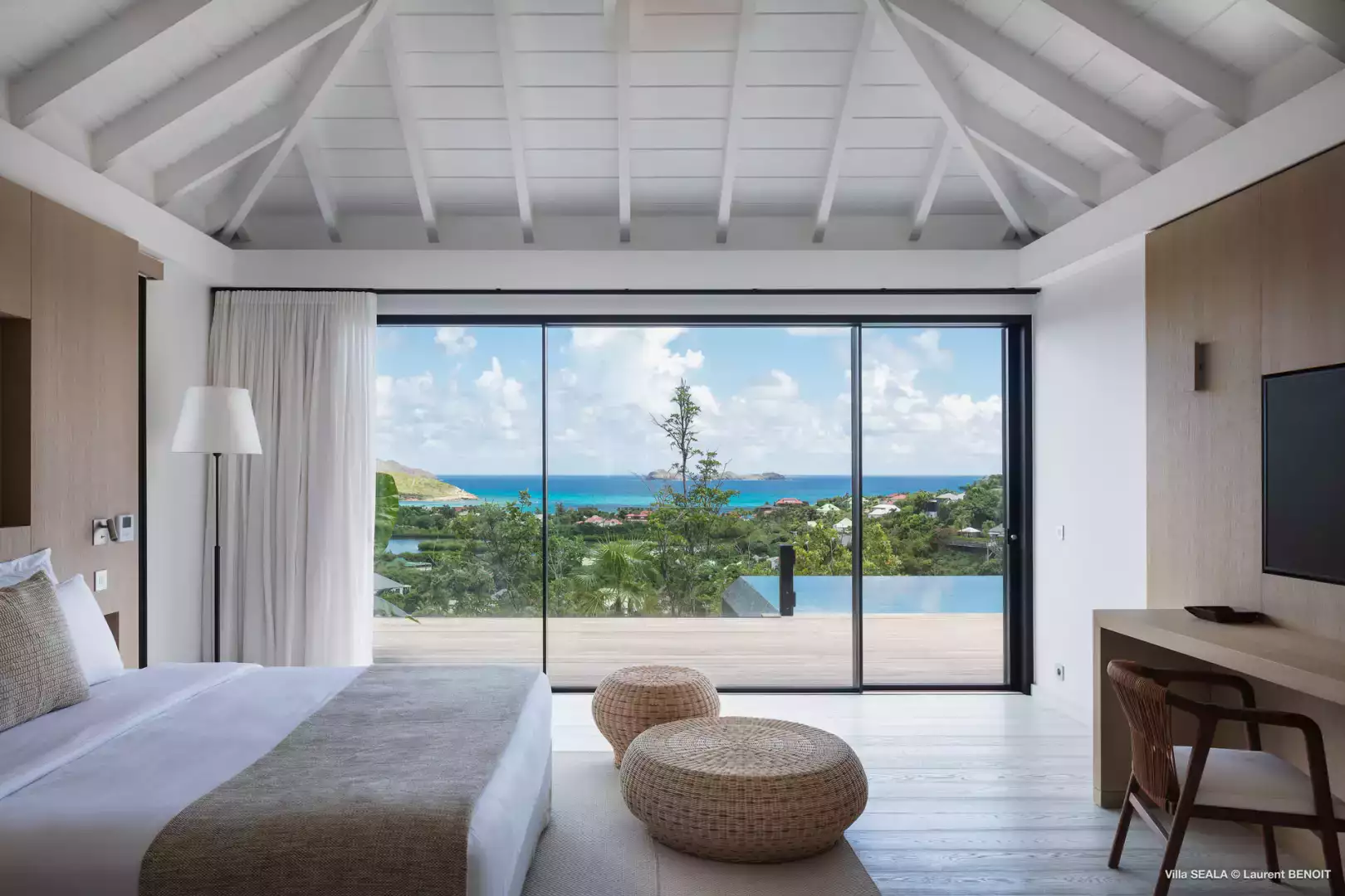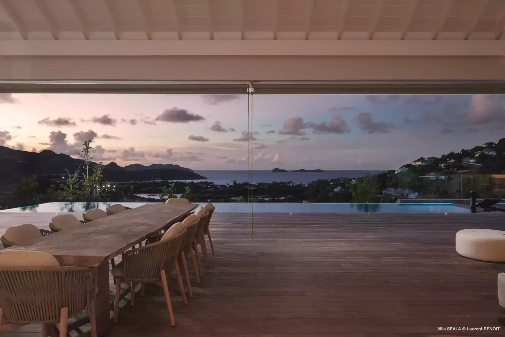 Perched above St Jean, Villa Seala enjoys breathtaking views over the turquoise bay and the lush hills of St Barts. This contemporary five-bedroom villa stands out for its refined architecture, generous volumes, and serene atmosphere. Bright, open living spaces flow seamlessly onto a spacious terrace and a heated infinity pool, perfect for enjoying the scenery from sunrise to sunset.