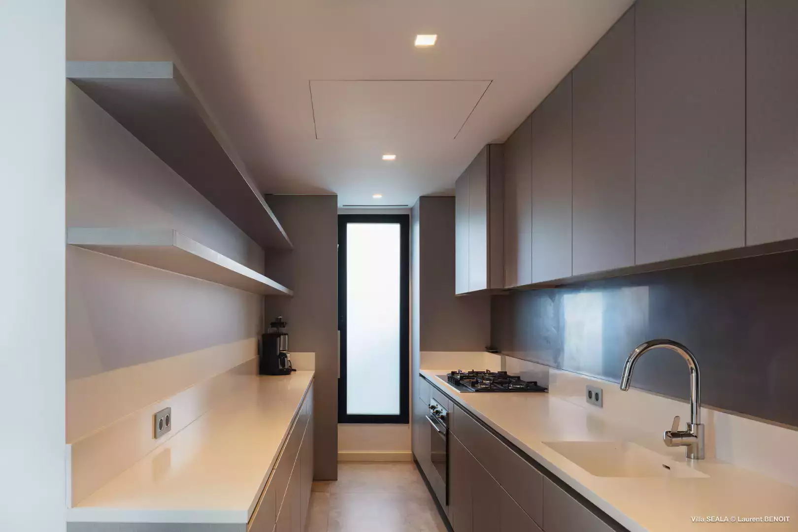 Refrigerator, freezer, dishwasher, oven, microwave oven, filter coffee maker, Nespresso coffee maker, toaster, kettle, blender, wine cellar, back kitchen.