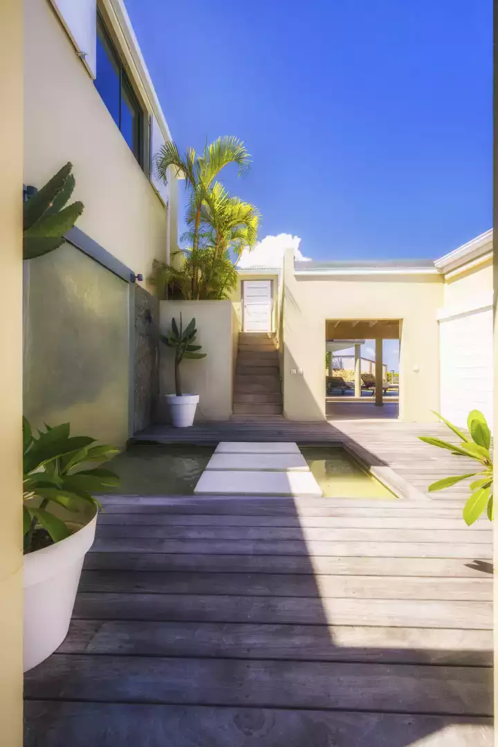 Located in the tranquil hills of Dévé, this villa features five bedrooms, each with its own bathroom, and offers magnificent sea views. Four of the bedrooms are situated on the upper level, with each providing a serene atmosphere and air-conditioned comfort. The fifth bedroom, found on a lower level, affords extra privacy.