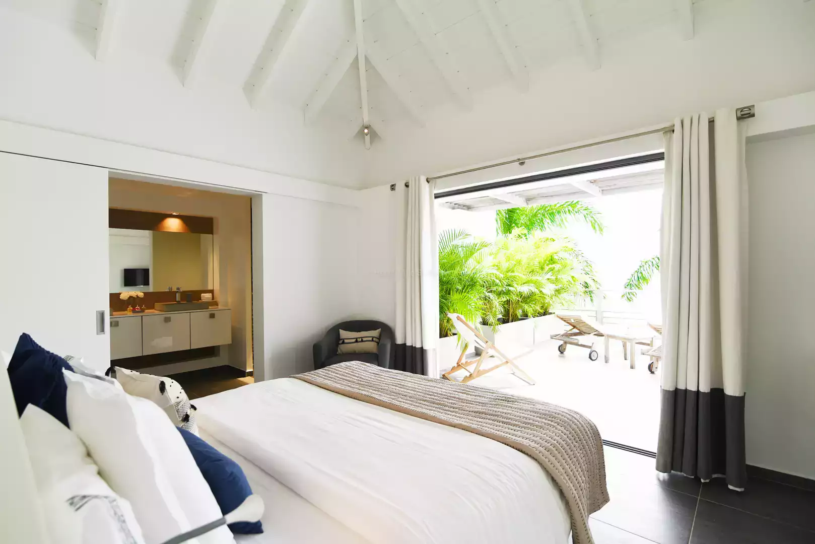 King size bed (180 cm), sea view, A/C, TV (with French satellite + 2 US channels), DVD, Ipod dock, safe, hairdryer, bathroom with shower and toilets