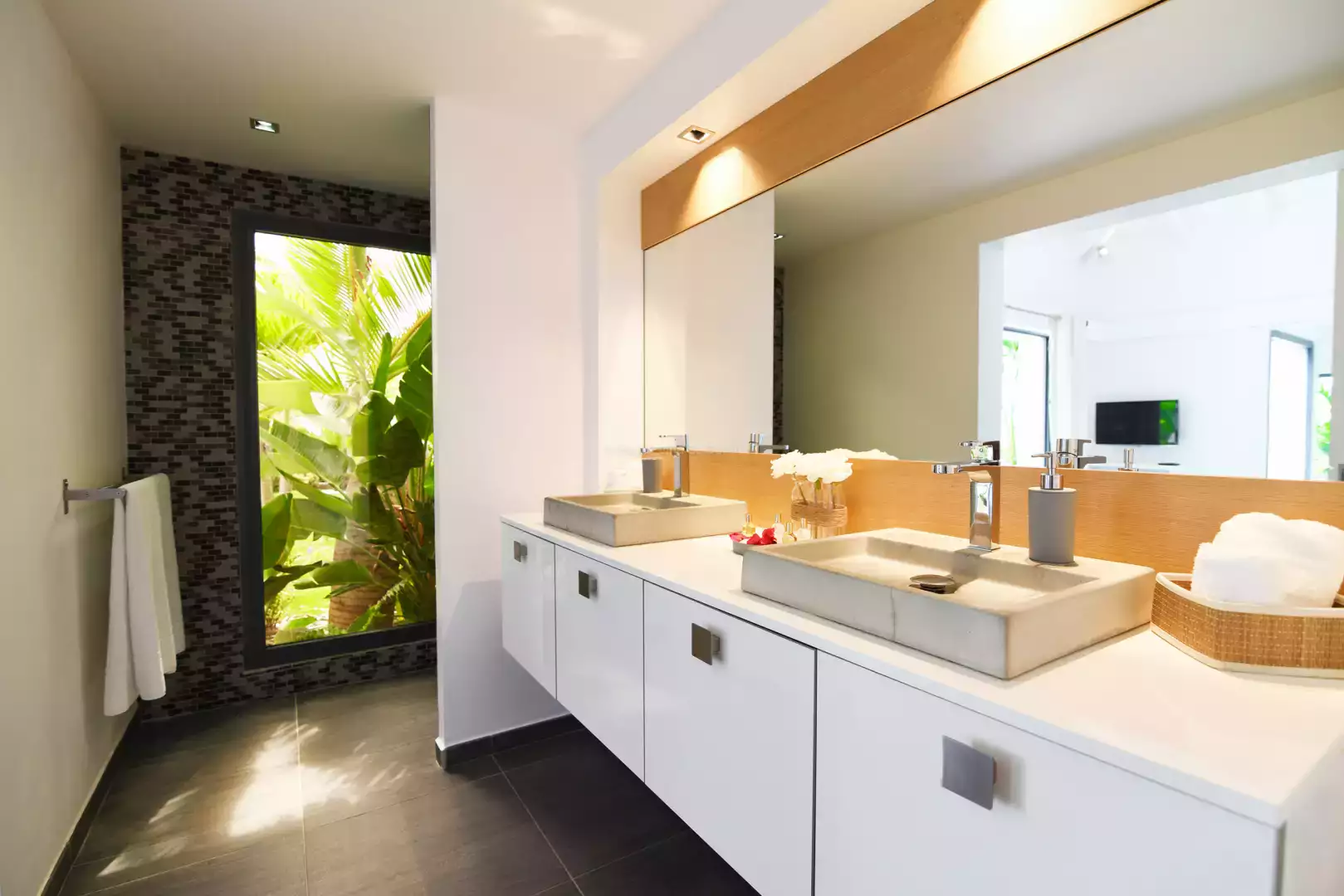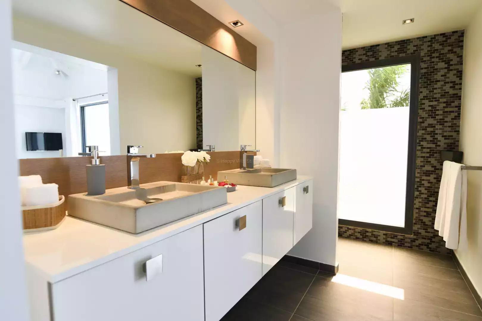 Villa Valley is a recent and modern 2 bedroom villa of 200 m2 located on the heights of Vitet which offers a beautiful view on the green valley of Grand Fond and the sea.