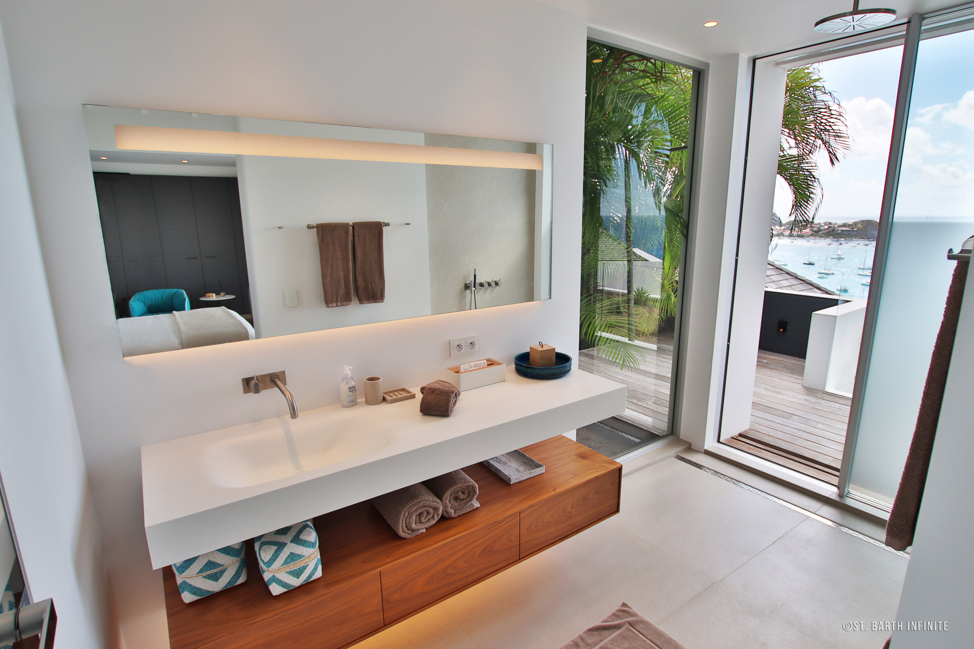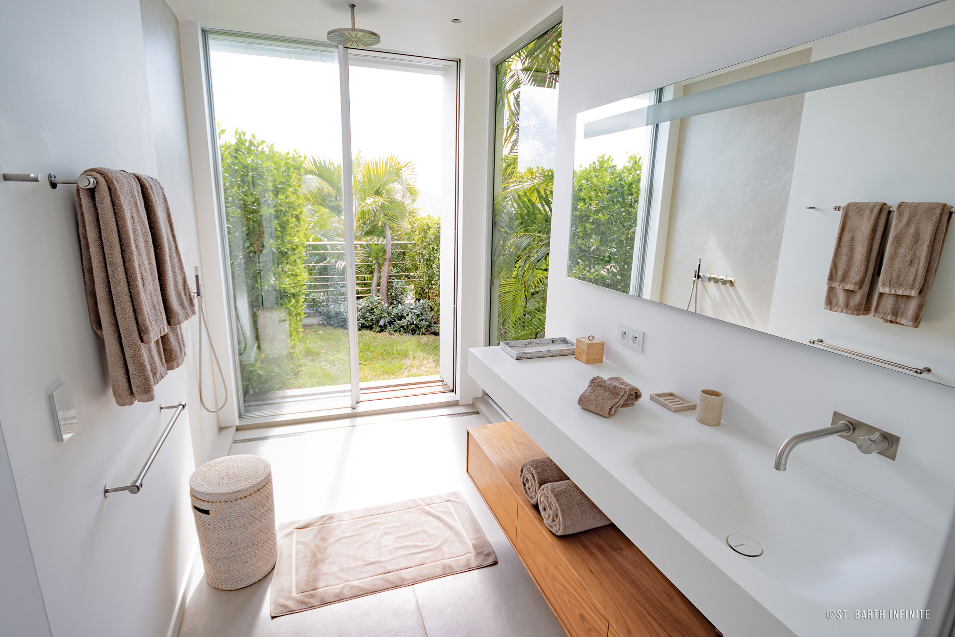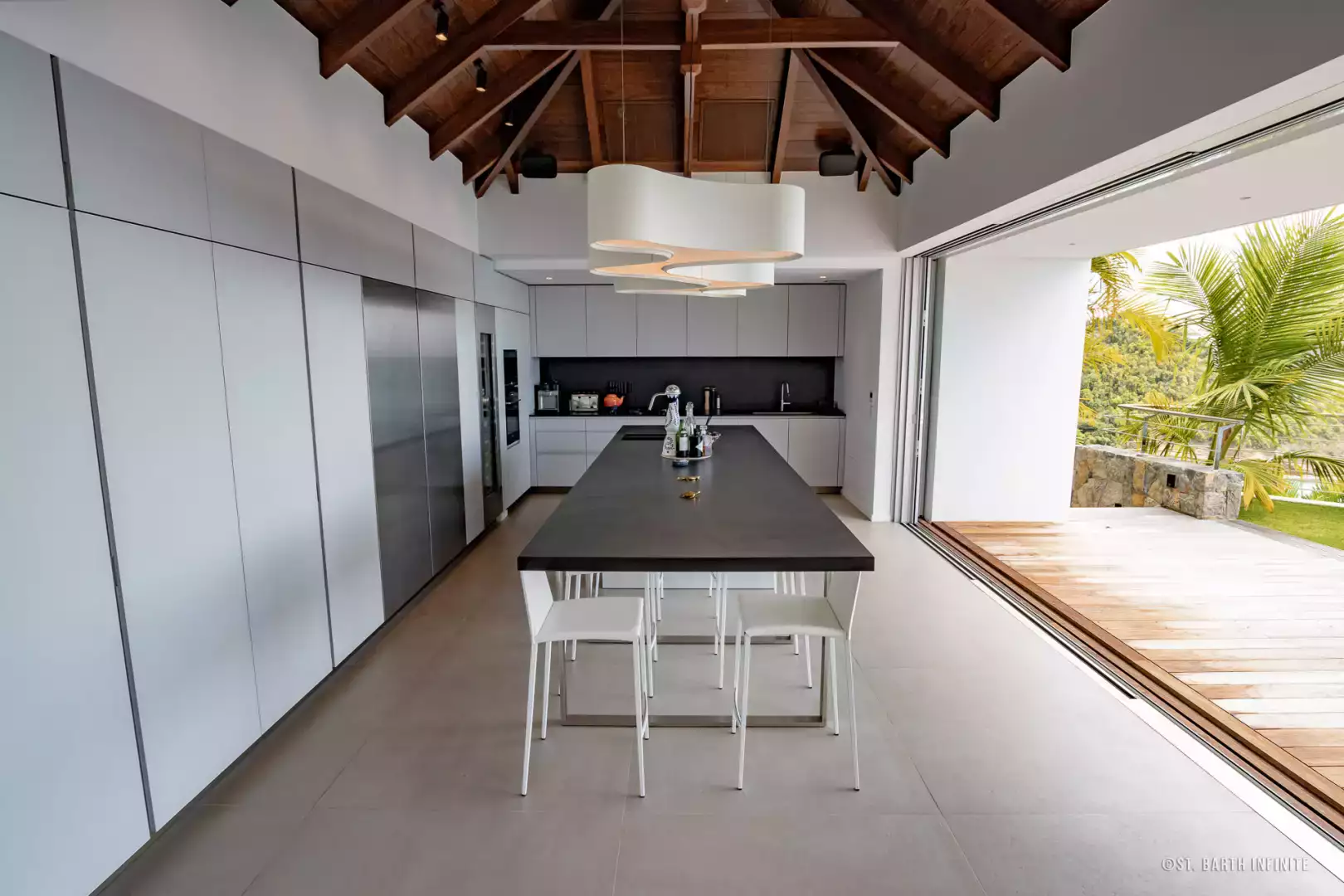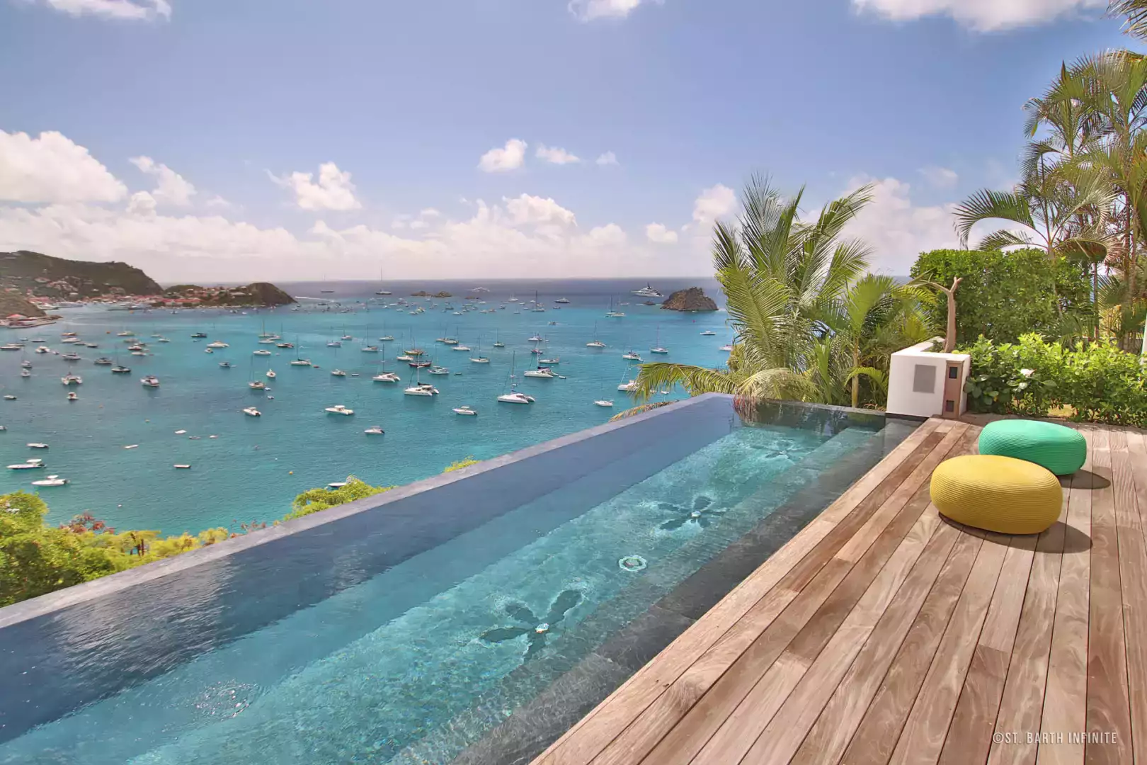 Nichée à flanc de colline à Corossol, la Villa Maison de la Luz offre une vue imprenable sur l’océan et les bateaux au mouillage. Cette propriété contemporaine séduit par son architecture en paliers, ses lignes épurées et son intégration parfaite dans la végétation luxuriante. Elle dispose de deux piscines chauffées à débordement, entourées de terrasses en bois et de coins lounge confortables, parfaits pour se détendre face au coucher de soleil.