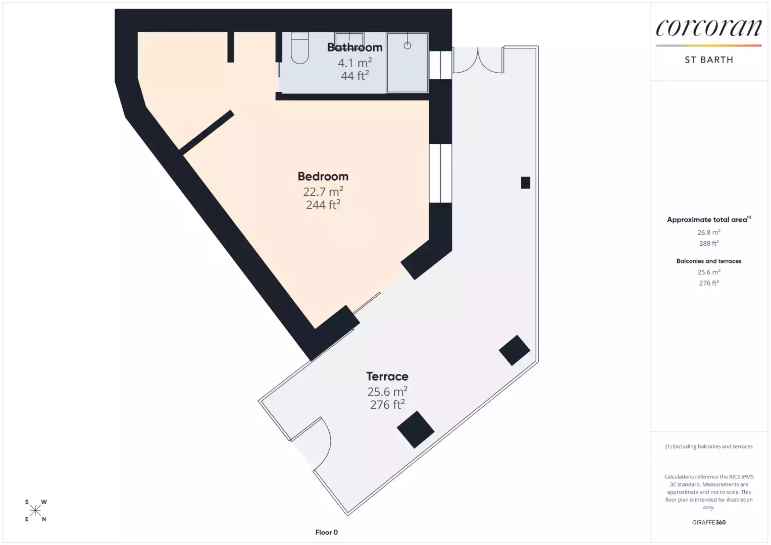 Décorée de façon moderne et épurée, la chambre est très équipée avec sa salle de bain privative avec douche à l'italienne et son grand dressing. Elle donne sur une petite terrasse avec jacuzzi et vue sur la baie de St Jean.