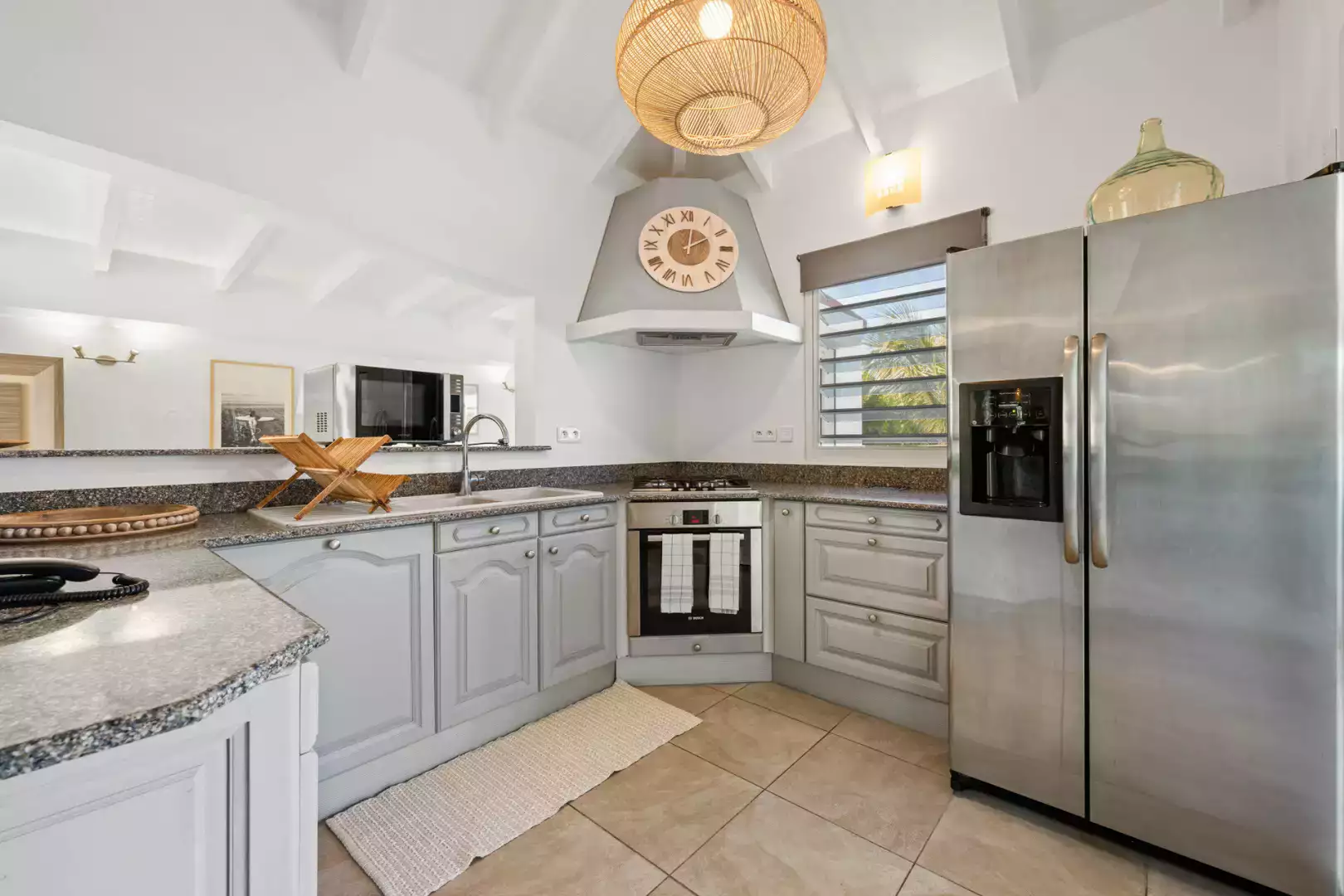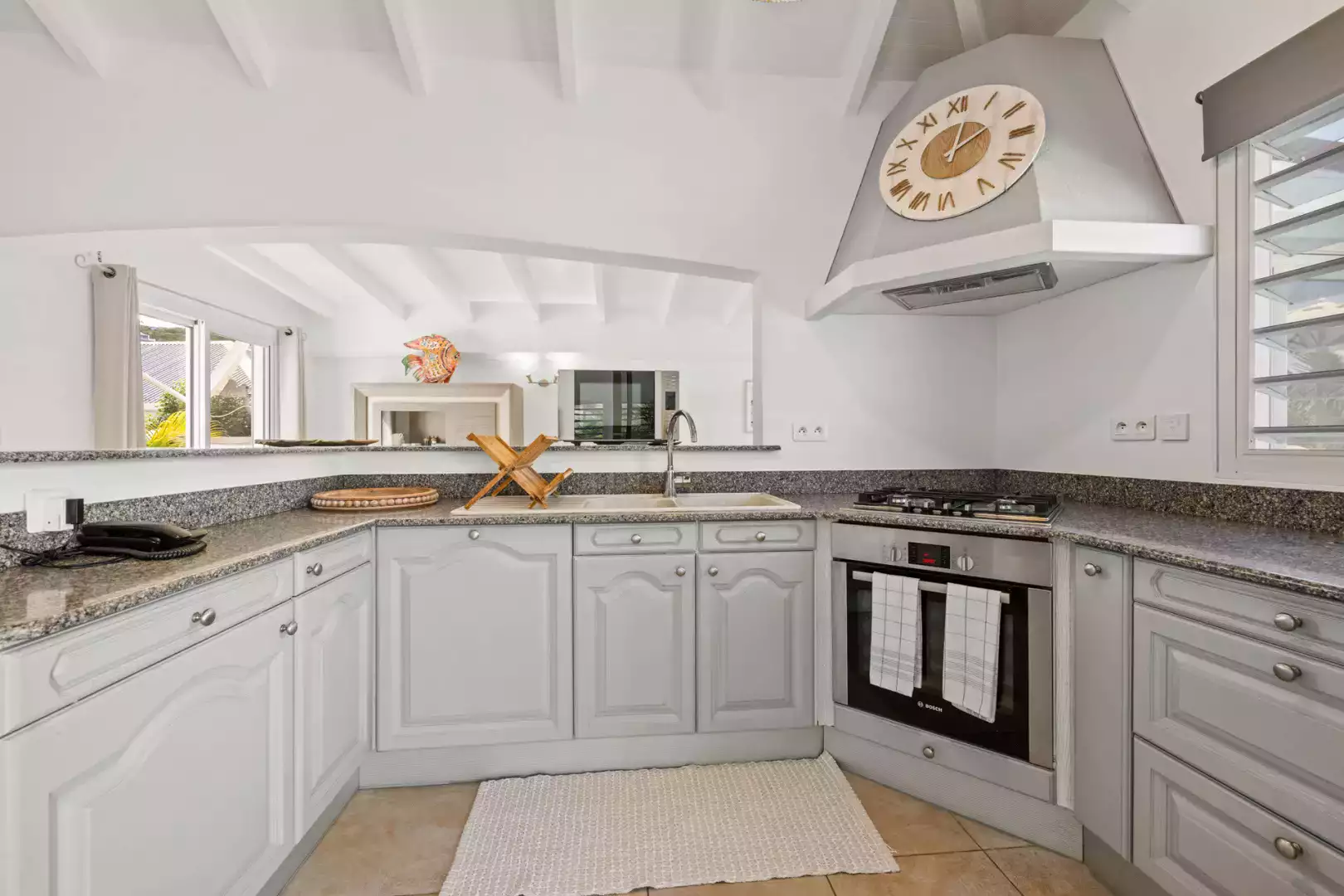 La cuisine, bien équipée, dispose de tout le nécessaire pour cuisiner facilement à la maison : four, micro-ondes, cafetières, presse-agrumes, mixeur… Côté extérieur, la piscine privée et les transats sont parfaits pour se détendre après une baignade dans l’océan.