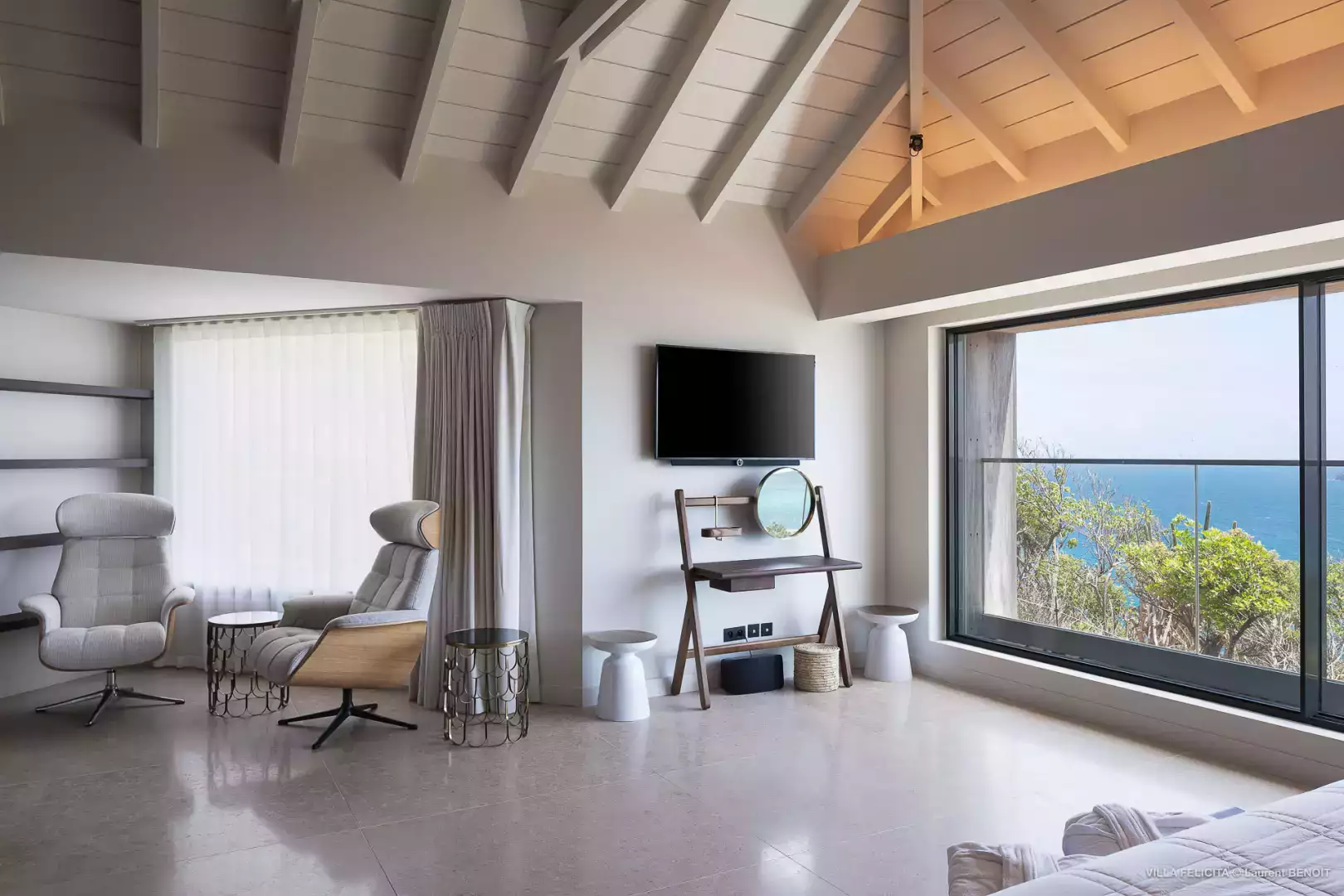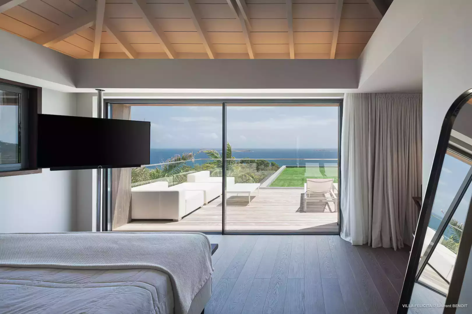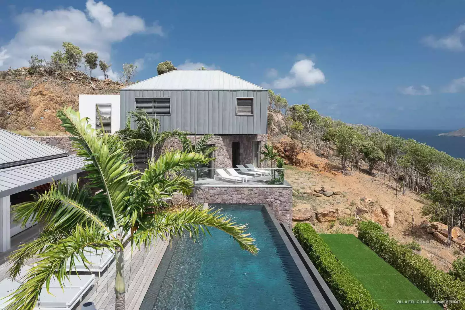 Perchée sur les hauteurs entre Lorient et St Jean, la Villa Felicita est une propriété contemporaine d’exception qui allie élégance, confort et convivialité.