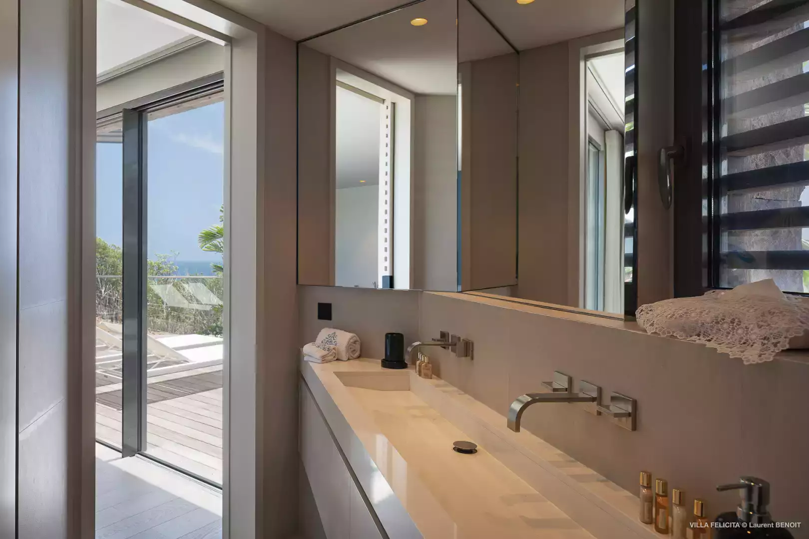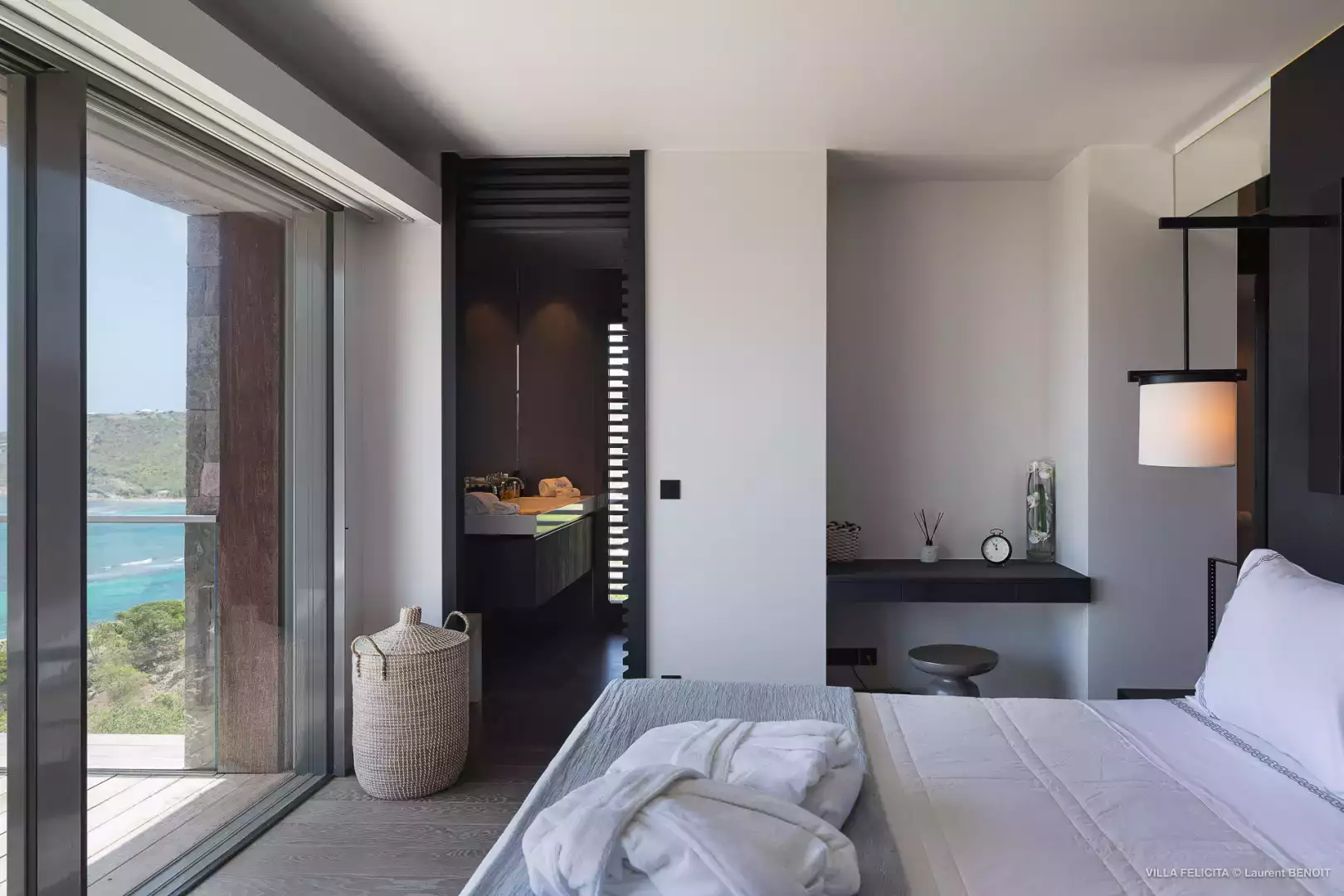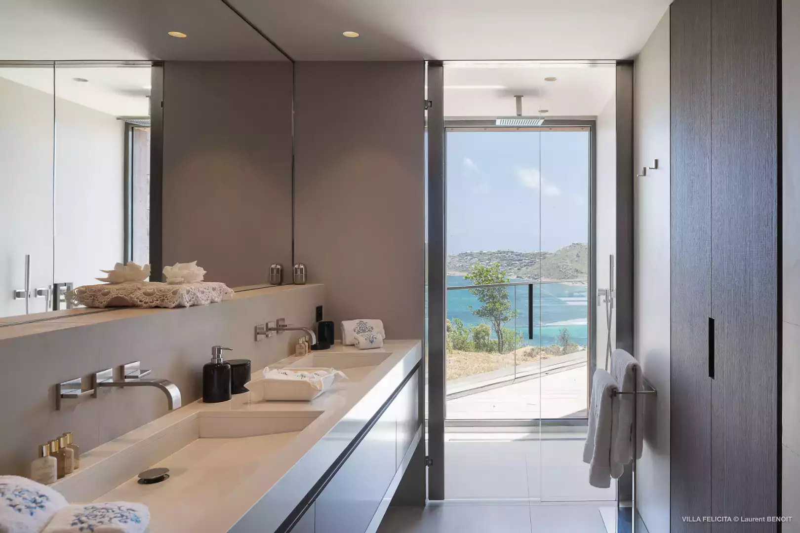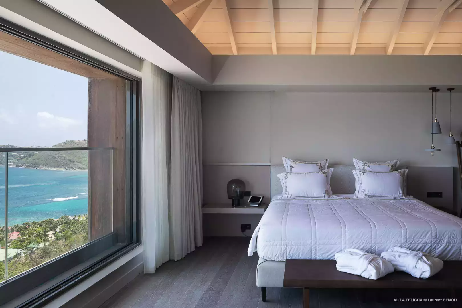 Perchée sur les hauteurs entre Lorient et St Jean, la Villa Felicita est une propriété contemporaine d’exception qui allie élégance, confort et convivialité.