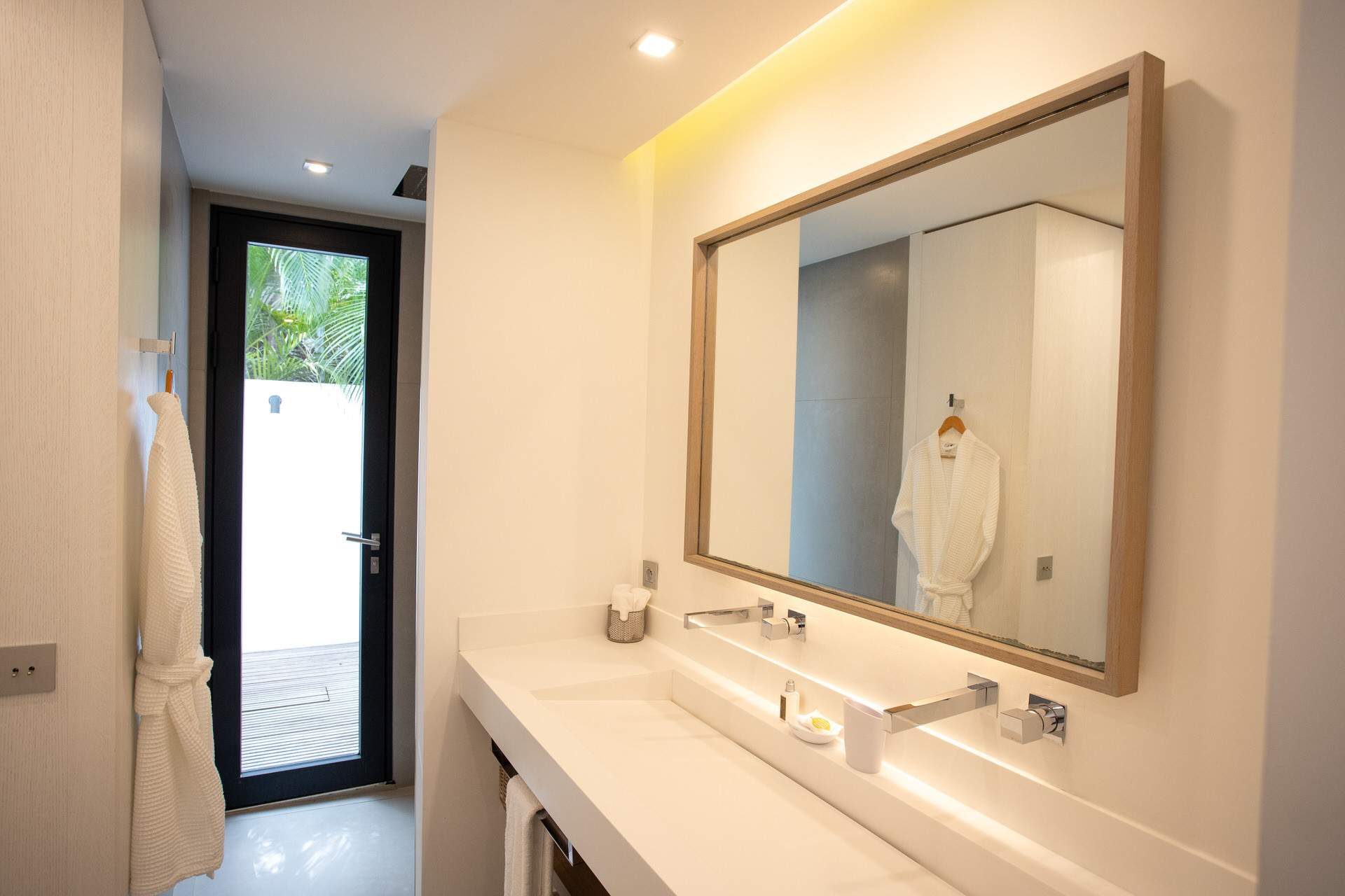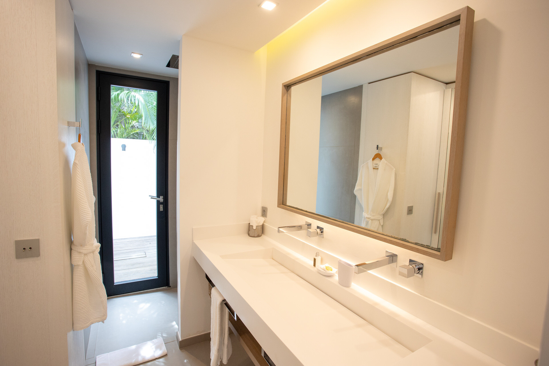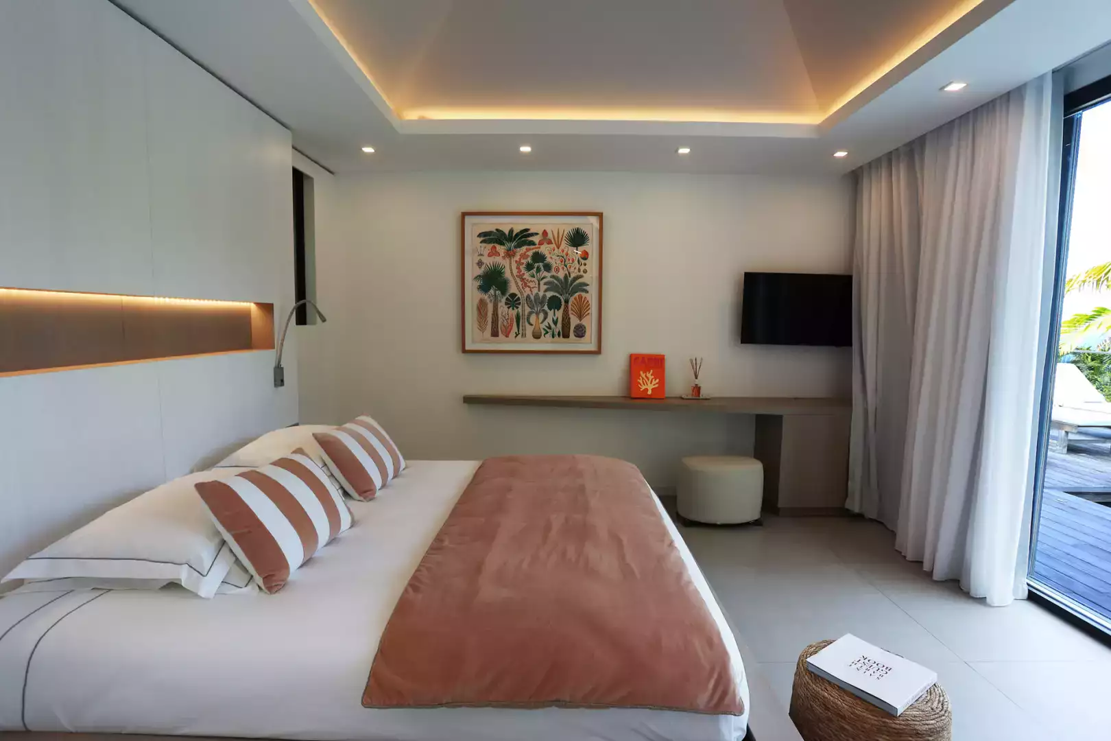 Lit King size, climatisation (A/C), TV (Satellite Français et Américain + Apple TV), salle de bain adjacente avec douche et toilettes, sèche-cheveux, coffre fort. La chambre est situé dans un bungalow séparé