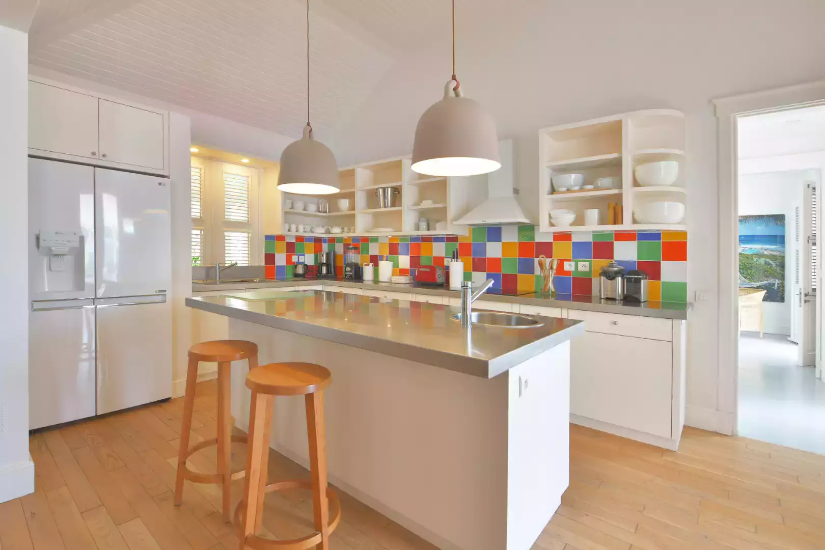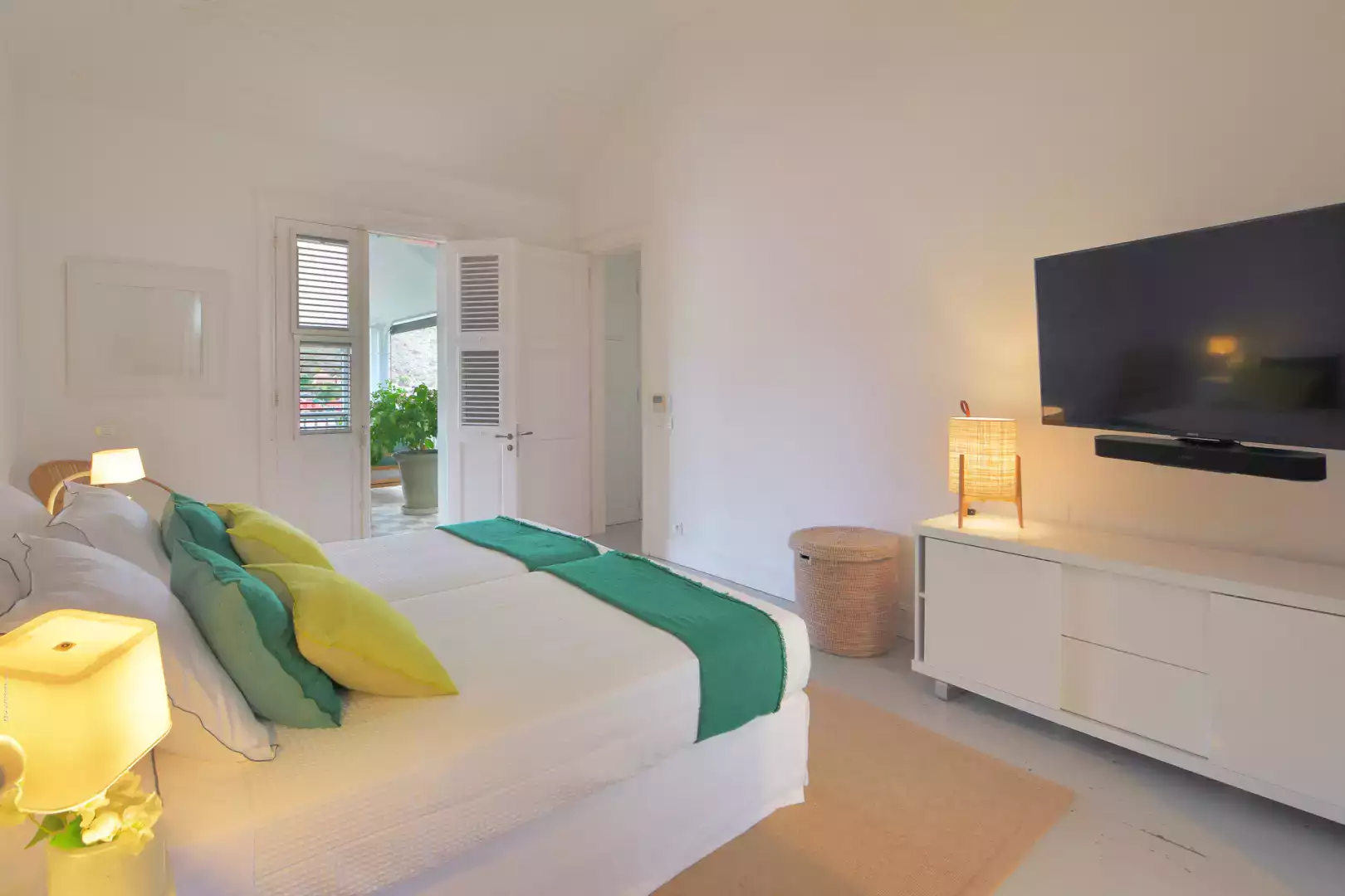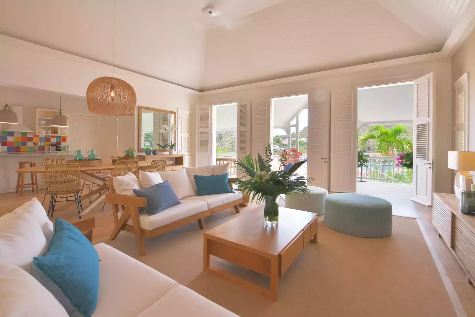 À l’extérieur, la piscine chauffée entourée de verdure invite à la détente. La villa bénéficie également d’une localisation idéale : à deux pas des restaurants, boutiques, et du port de Gustavia, tout en offrant une intimité totale. Un endroit parfait pour vivre l’ambiance de St Barth tout en profitant d’un cocon élégant et serein.