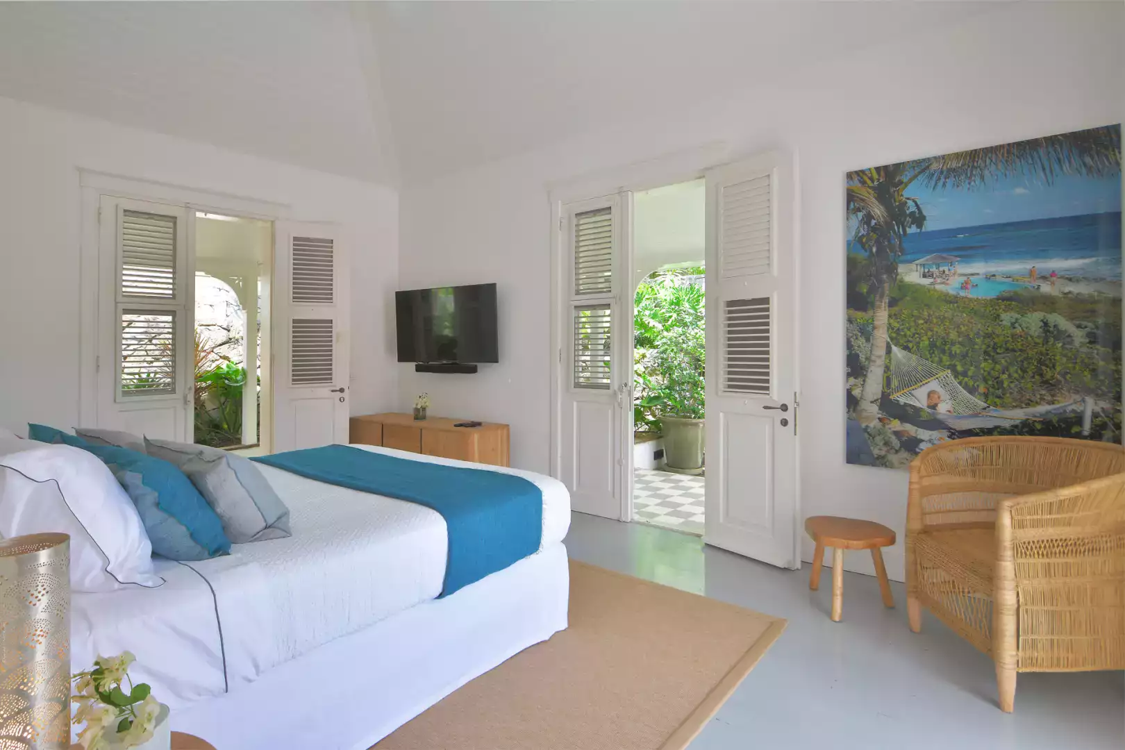 Lit King size, climatisation (A/C), ventilateur au plafond, moustiquaire au baies, TV (satellite + Apple TV), salle de bain adjacente avec douche, baignoire et toilettes, sèche-cheveux, coffre fort. La chambre partage sa salle de bain avec la chambre 4