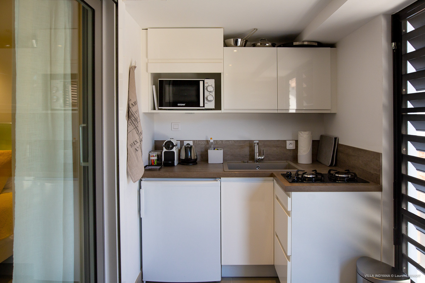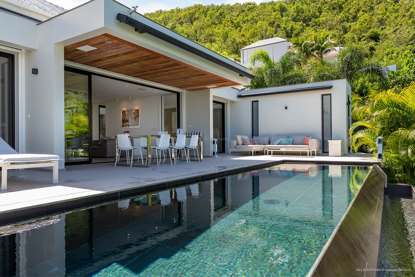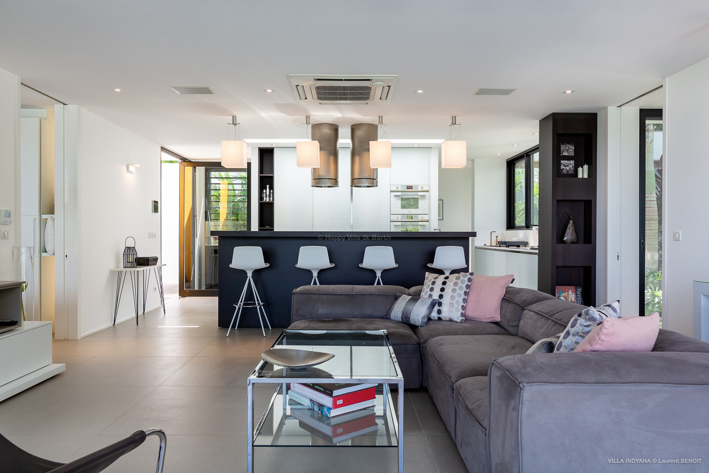 La cuisine ouverte, ultra équipée, fait le lien entre l’intérieur et la terrasse pour des repas conviviaux en toute simplicité. Le salon, cosy et climatisé, est idéal pour se détendre après une journée à la plage. L’atmosphère est calme, sereine, tout en étant à seulement quelques minutes en voiture de la plage de Saint-Jean ou des boutiques de Gustavia. Indyana Estate est un choix sûr pour ceux qui recherchent une villa moderne, fonctionnelle et chaleureuse au cœur de St Barth.