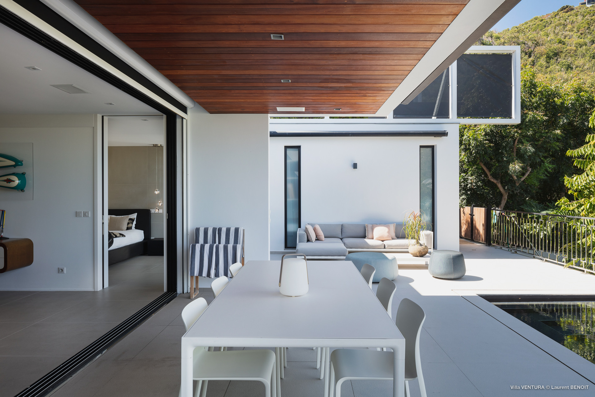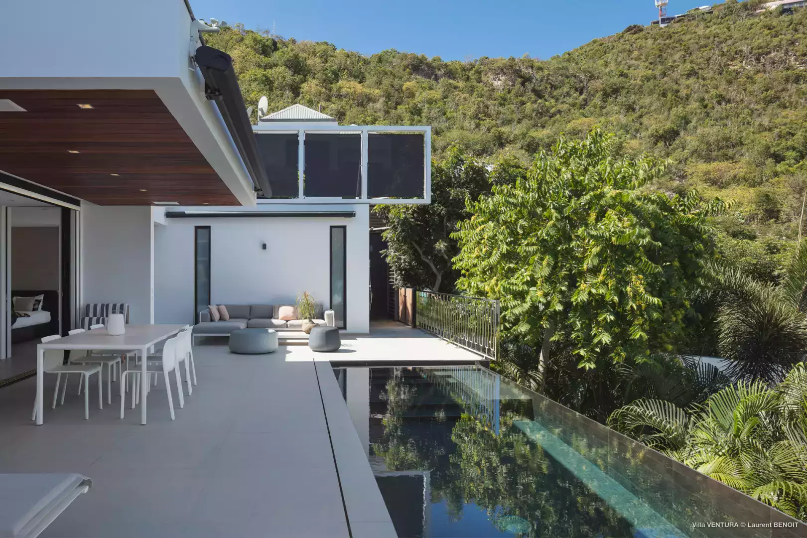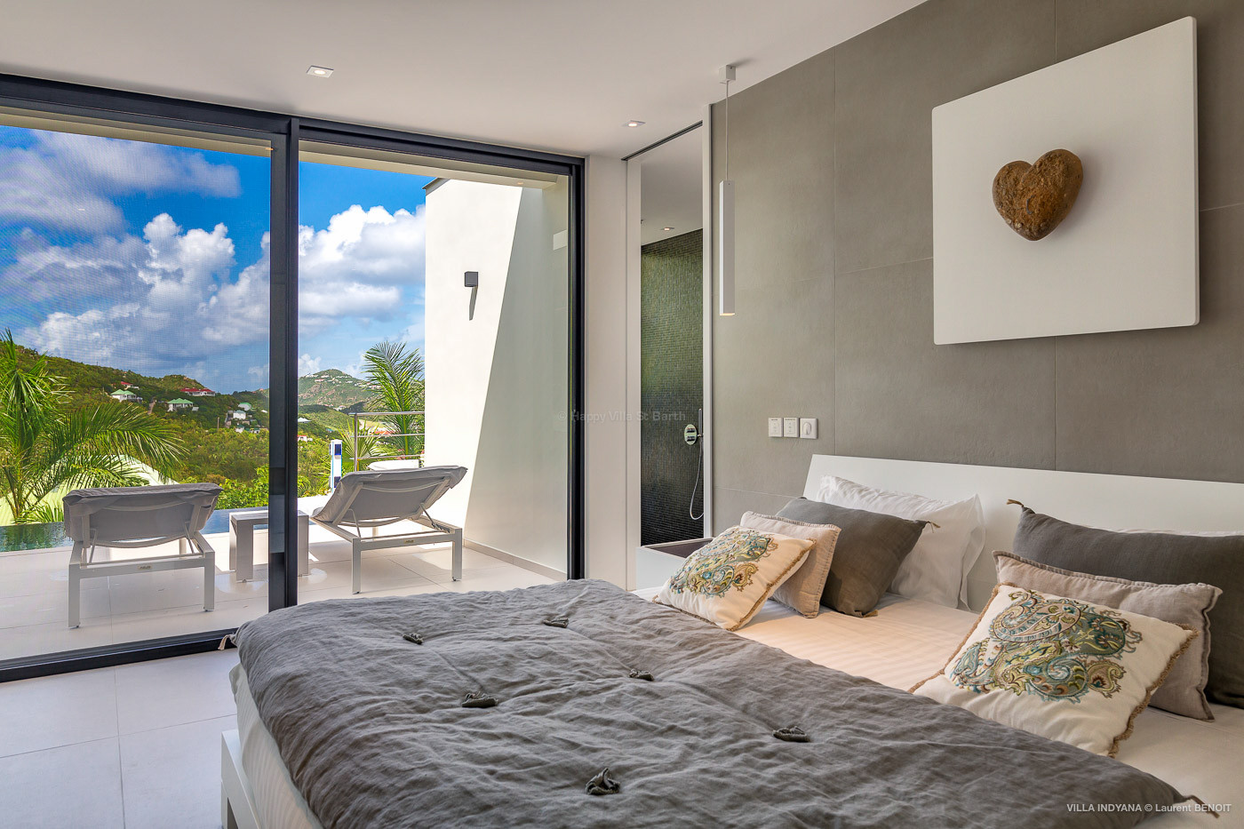 Nichée dans la verdure des hauteurs de Saint-Jean, Indyana Estate est une propriété contemporaine composée de deux villas distinctes – Indyana et Ventura – qui forment un ensemble harmonieux de cinq chambres. Pensée pour accueillir familles ou groupes d’amis, cette villa séduit par son élégance moderne et son confort absolu. Les espaces de vie sont spacieux, lumineux, parfaitement ouverts sur l’extérieur, avec deux belles piscines chauffées et des salons ombragés. Chaque chambre dispose d’un lit king size, d’une vue dégagée sur les collines tropicales, de la climatisation, d’une salle de bain attenante, et d’équipements multimédia complets. L’une d’elles, située en studio indépendant, garantit encore plus d’intimité.