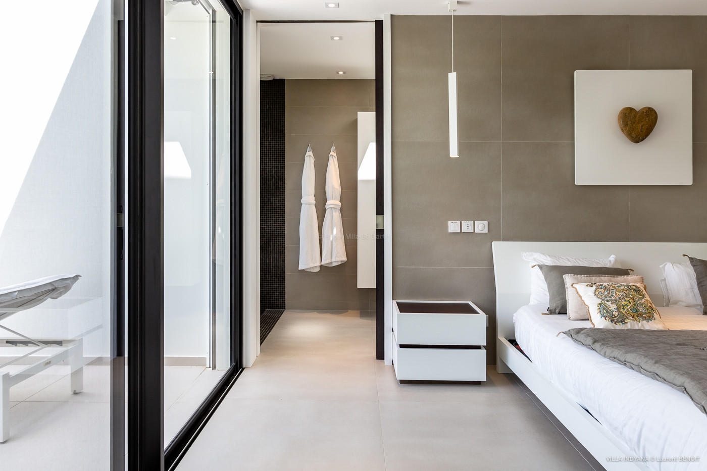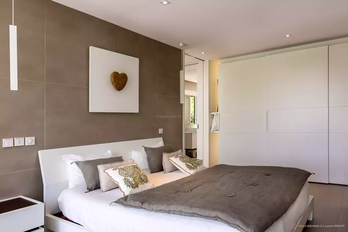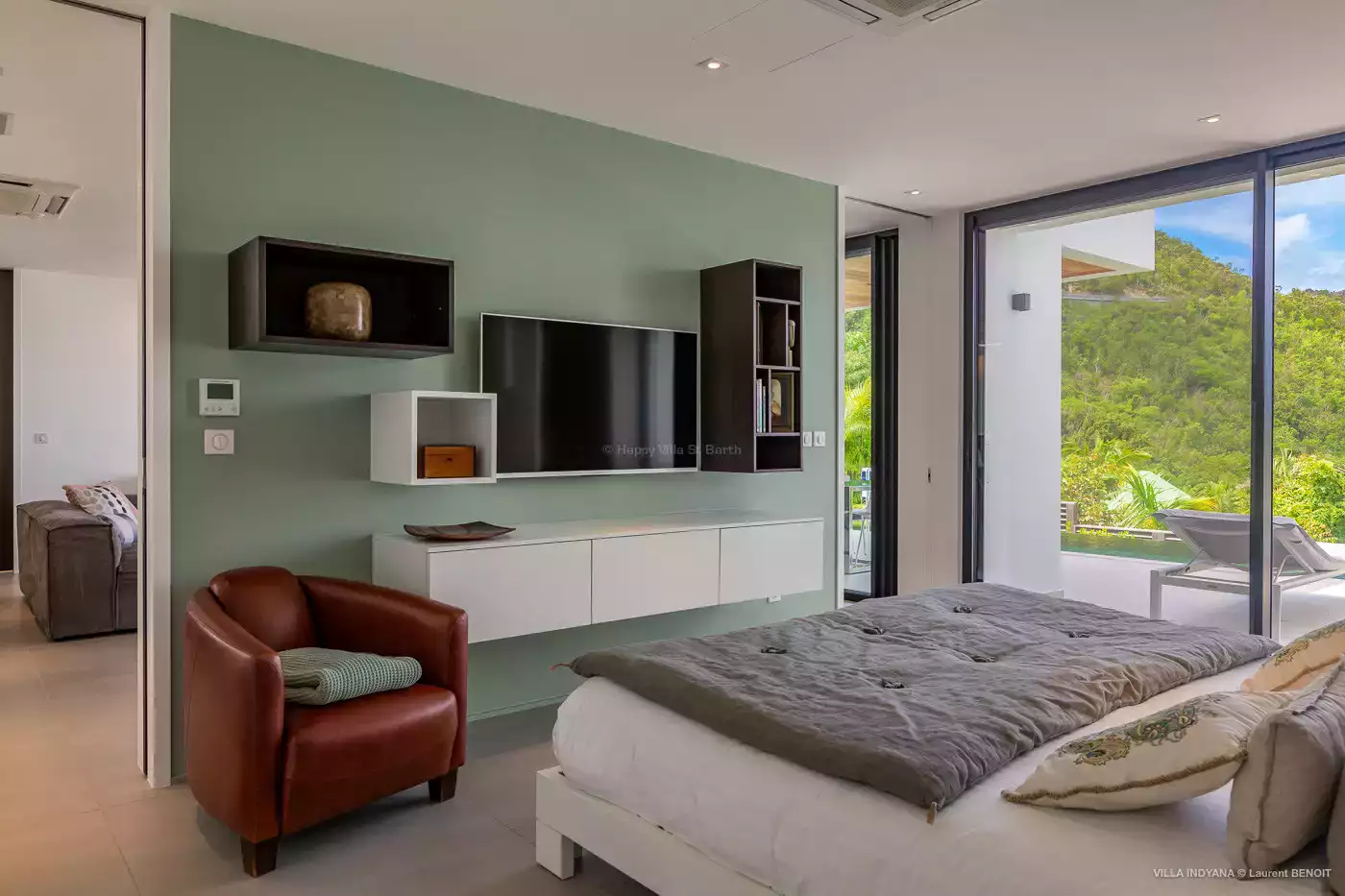 Villa Indyana : Lit king size, climatisation, TV (Apple TV + satellite français), salle de bain adjacente avec douche et toilettes, sèche-cheveux, coffre fort