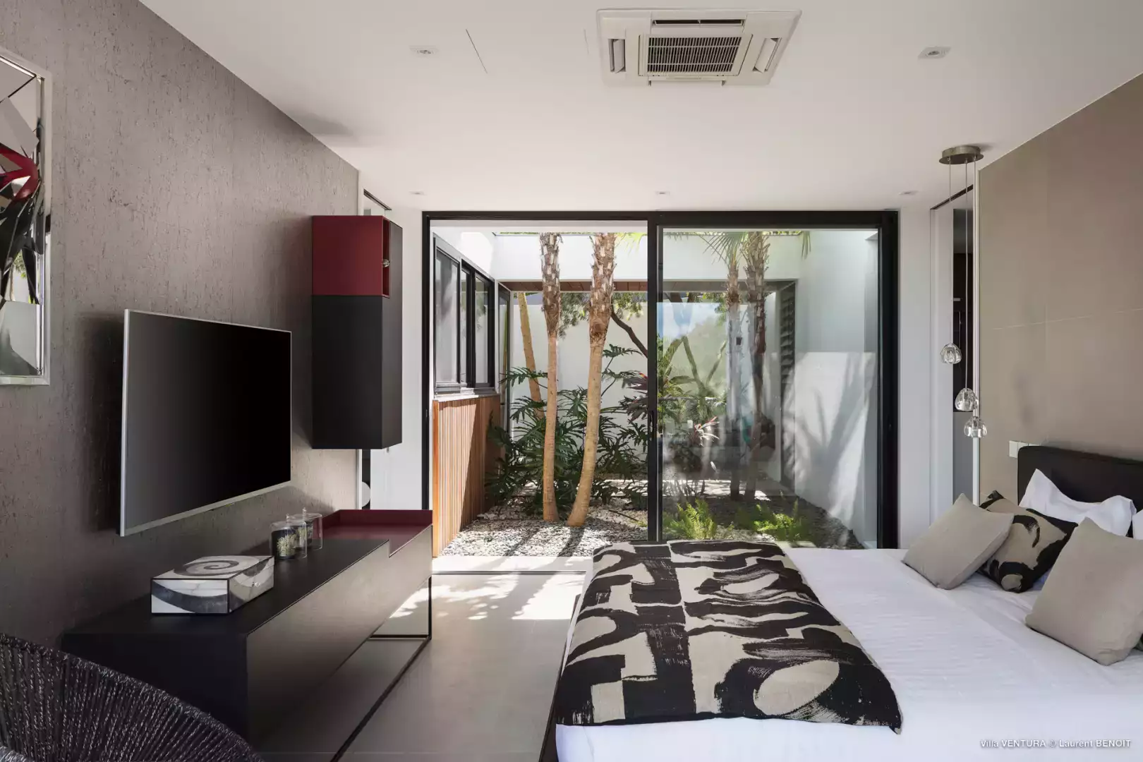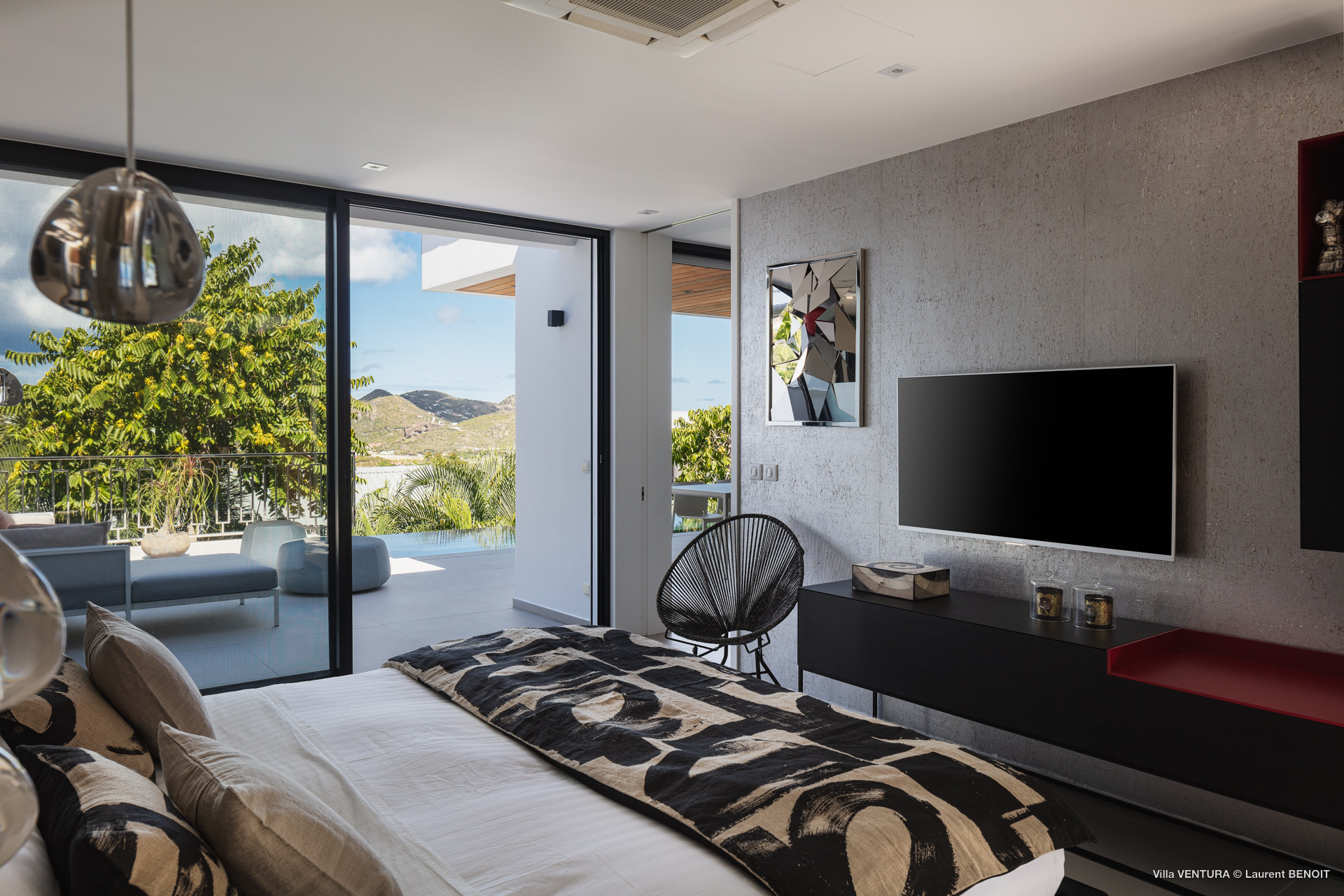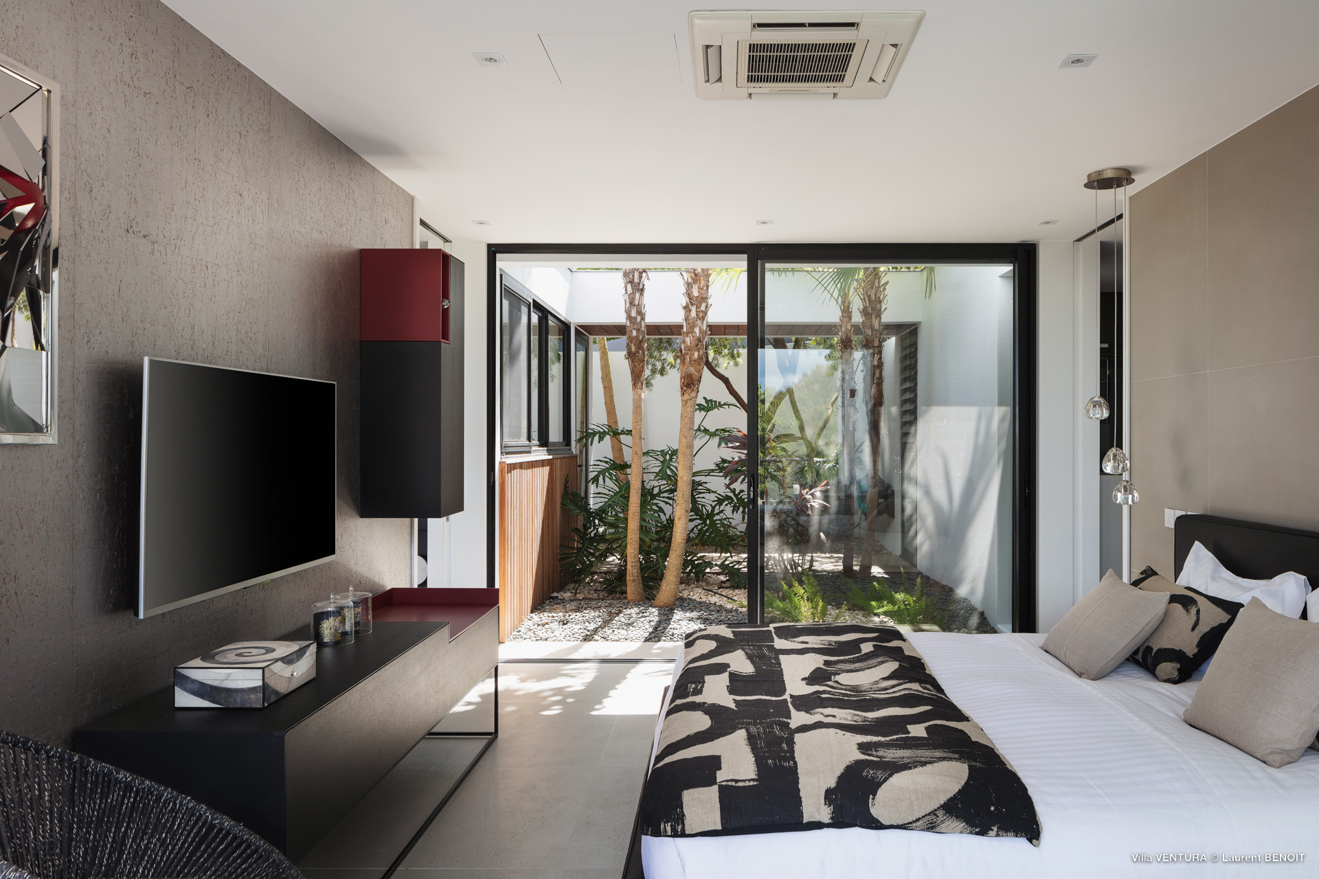 Villa Ventura : Lit king size, climatisation, TV (Apple TV + satellite français), salle de bain adjacente avec douche et toilettes, sèche-cheveux, coffre fort