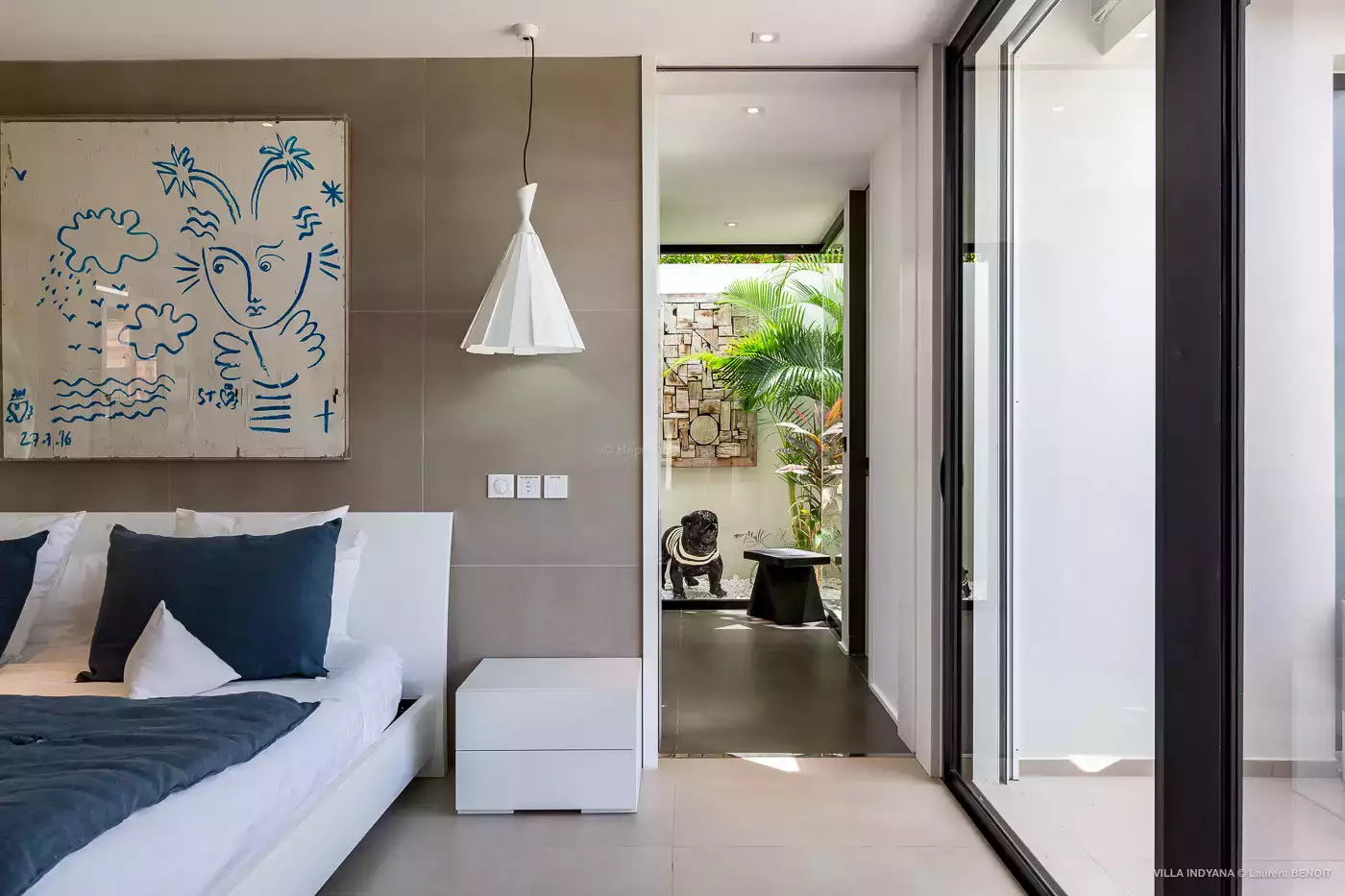 Villa Indyana : Lit king size, climatisation, moustiquaire, TV (Apple TV + satellite français), salle de bain adjacente avec douche et toilettes, sèche-cheveux, coffre fort