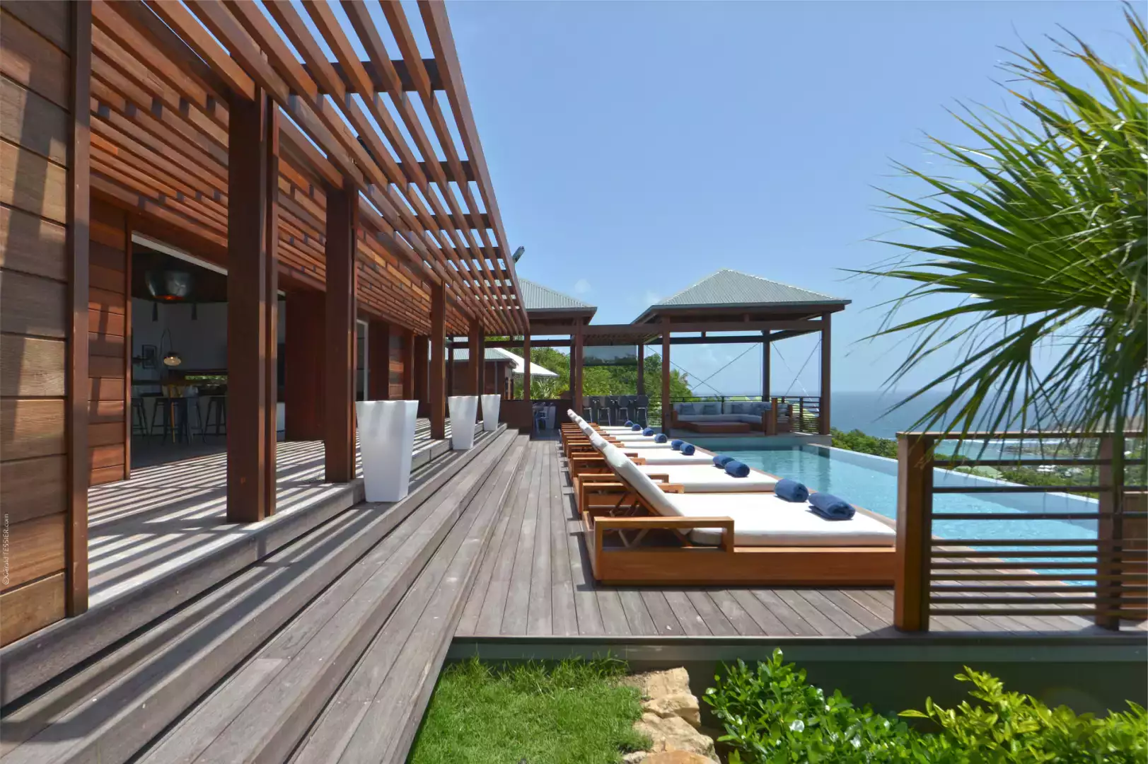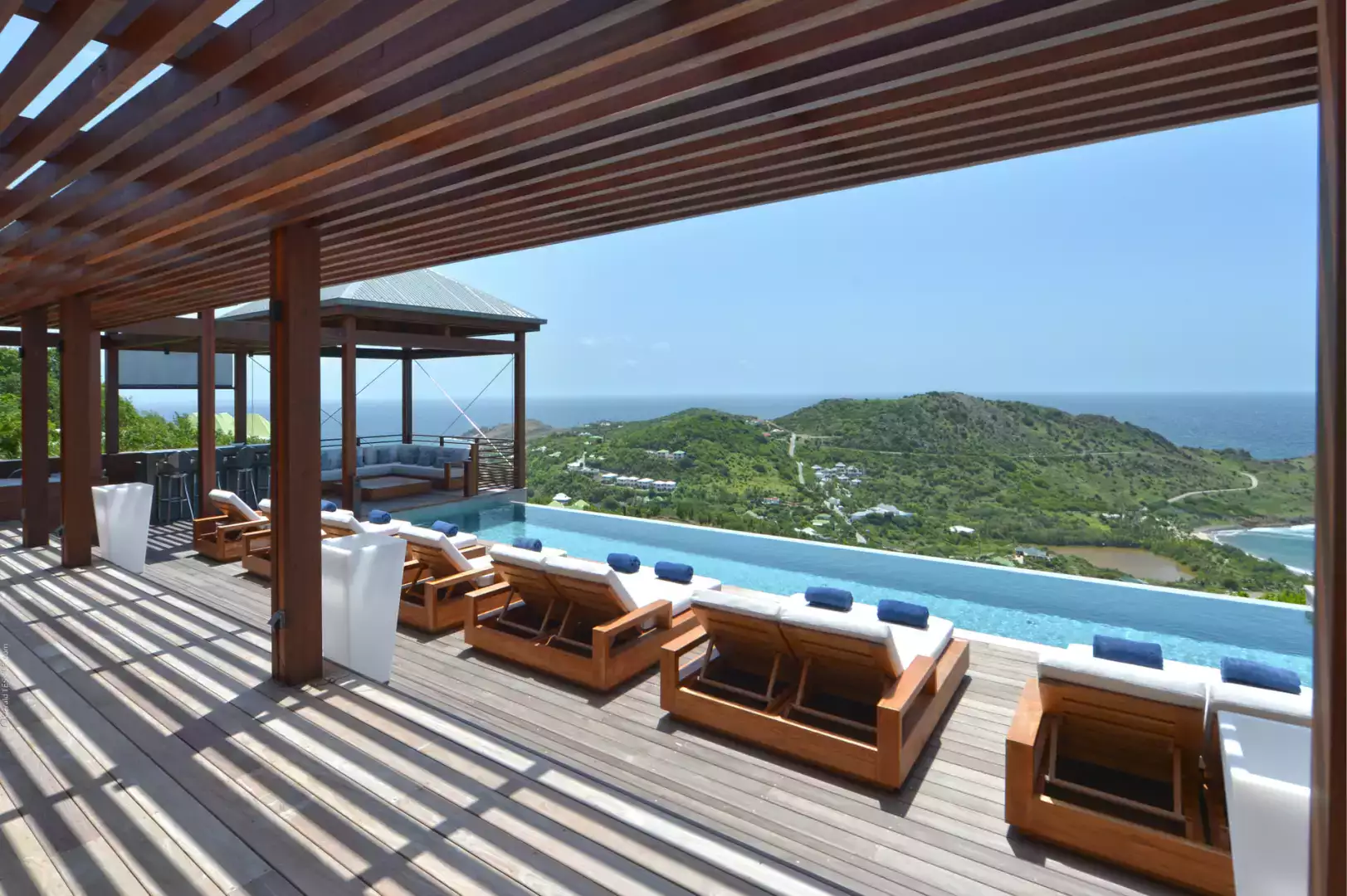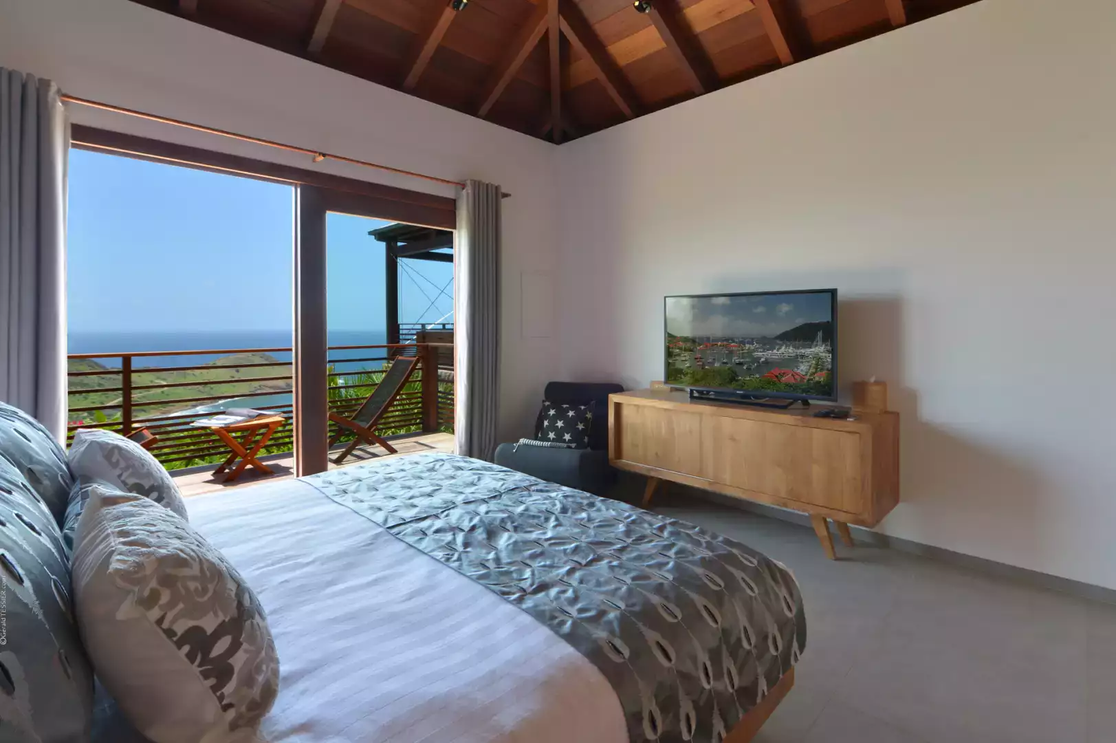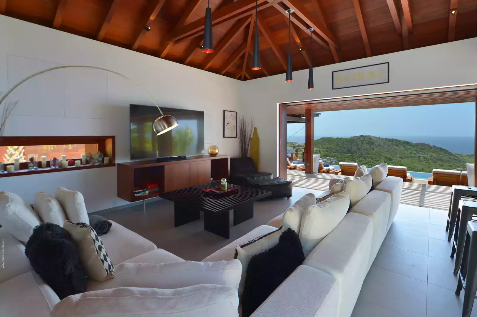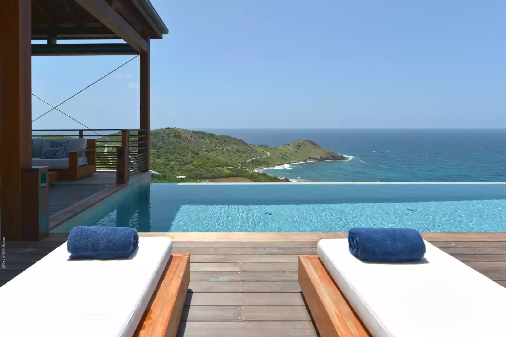 Située sur les hauteurs de Dévet, la Villa La Danse du Soleil offre une vue spectaculaire sur l’océan et sur la baie de Toiny. Son architecture mêle élégance contemporaine et charme caribéen, avec de beaux volumes, des poutres apparentes et une atmosphère chaleureuse. Le vaste séjour s’ouvre sur la terrasse et la piscine à débordement, idéale pour admirer les couchers de soleil ou se détendre face à la mer.