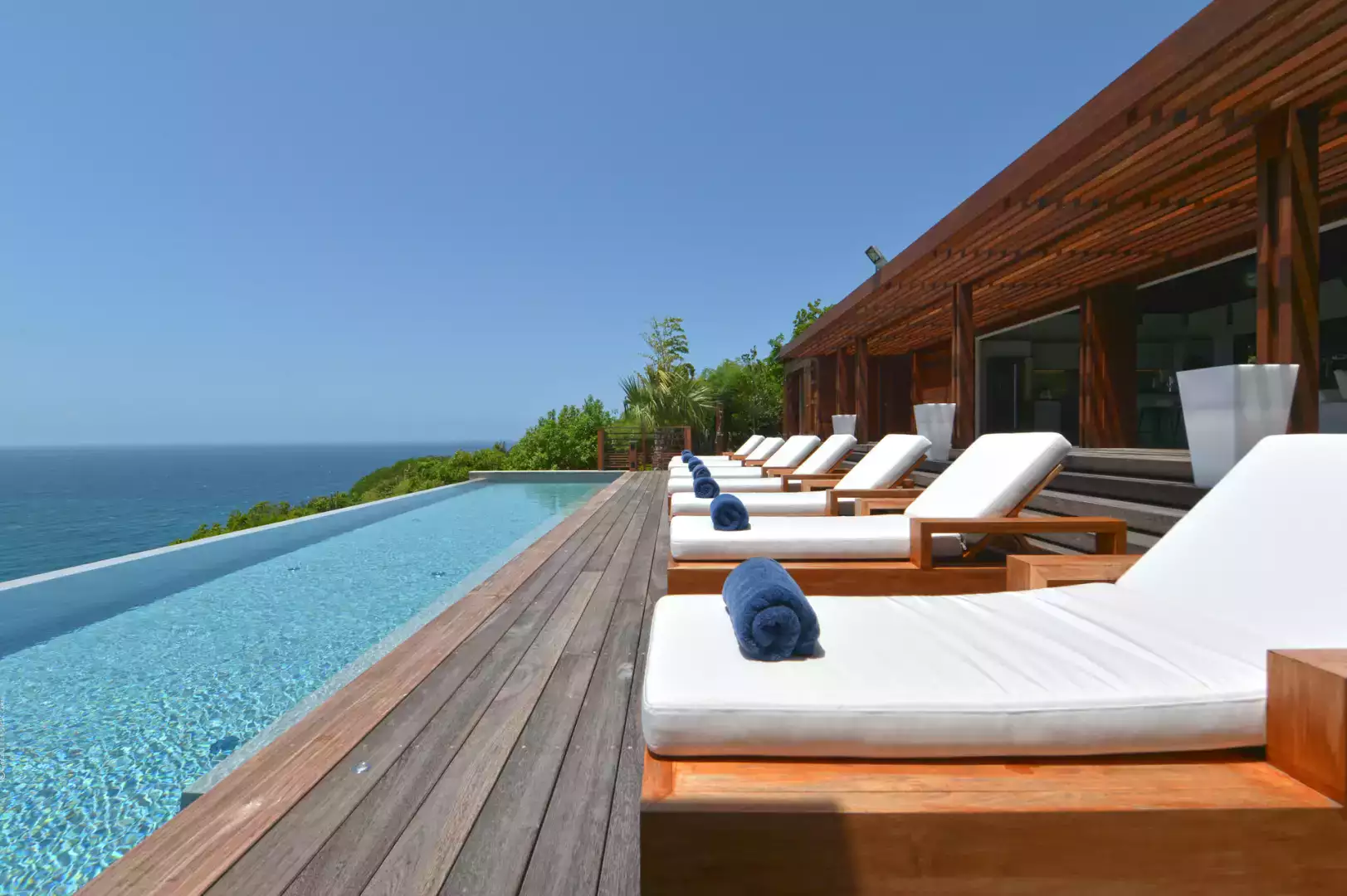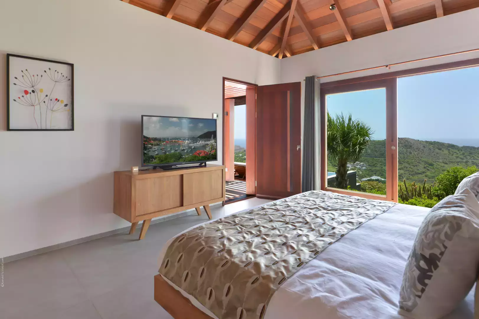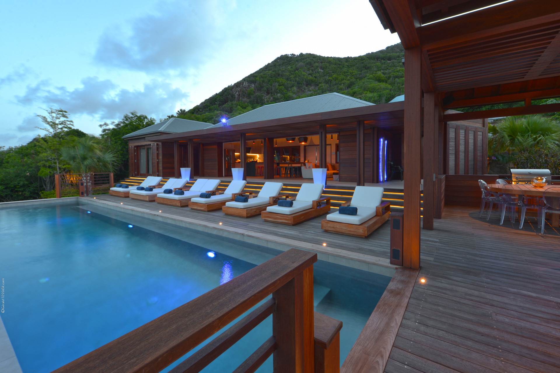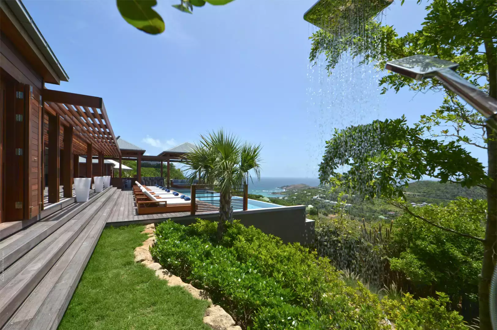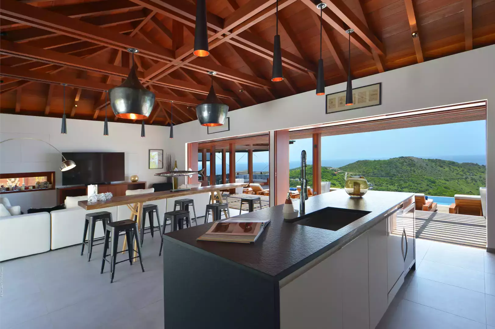 Située sur les hauteurs de Dévet, la Villa La Danse du Soleil offre une vue spectaculaire sur l’océan et sur la baie de Toiny. Son architecture mêle élégance contemporaine et charme caribéen, avec de beaux volumes, des poutres apparentes et une atmosphère chaleureuse. Le vaste séjour s’ouvre sur la terrasse et la piscine à débordement, idéale pour admirer les couchers de soleil ou se détendre face à la mer.