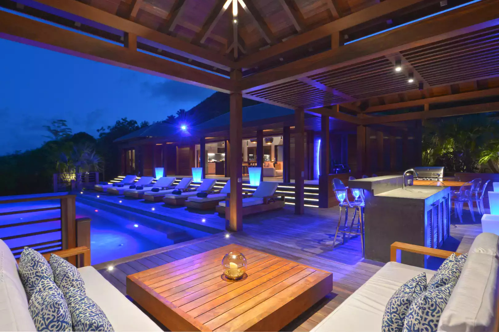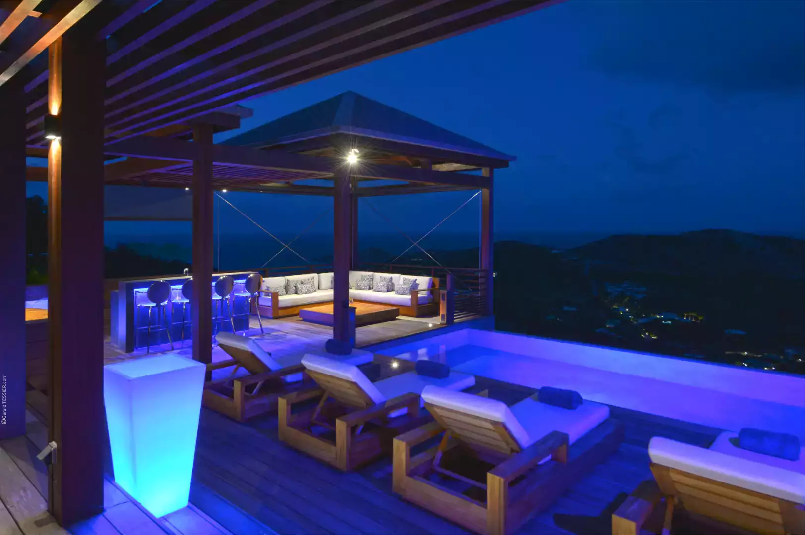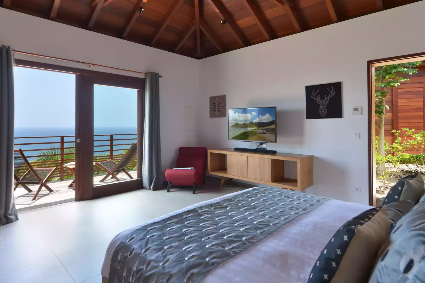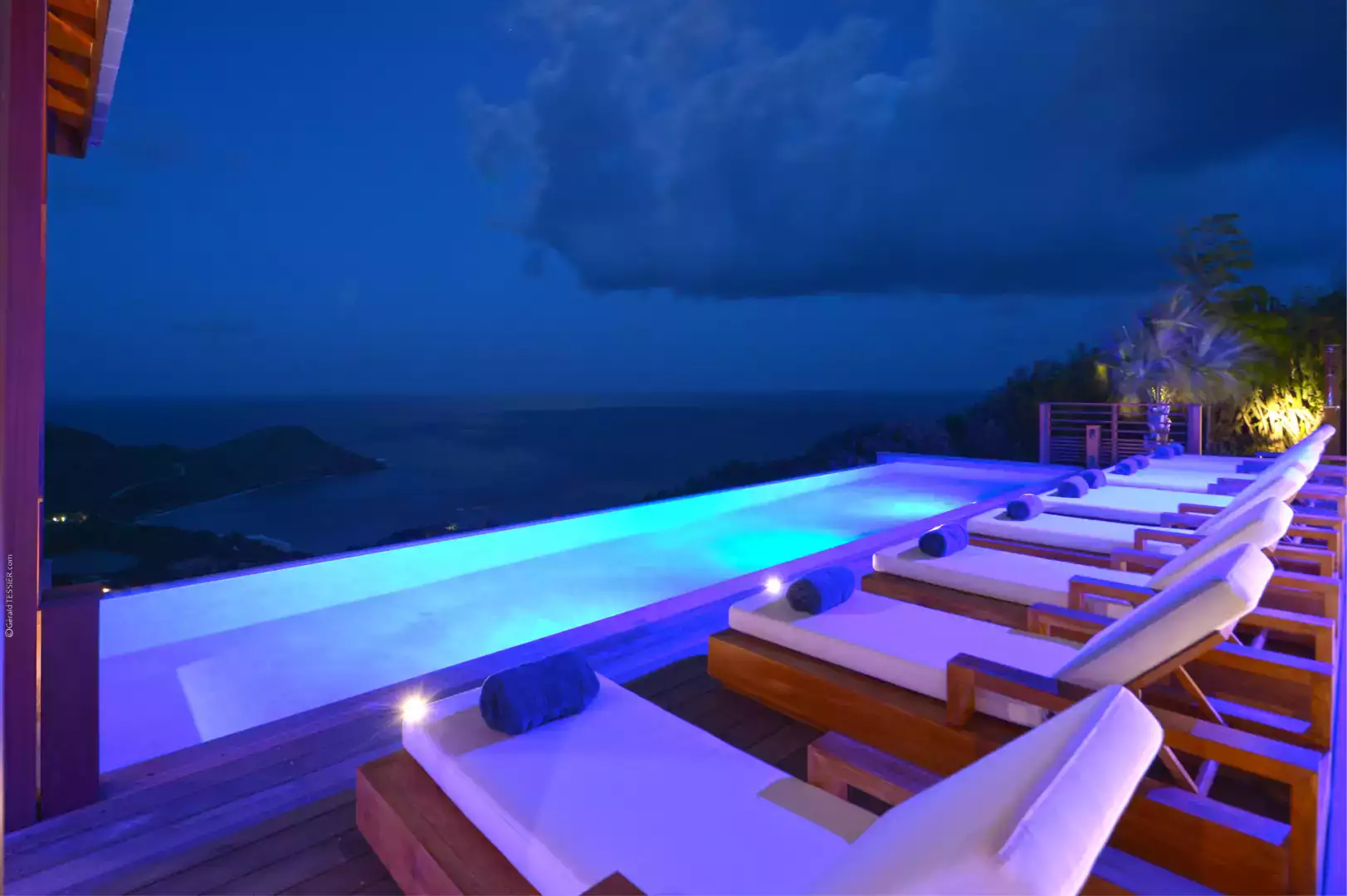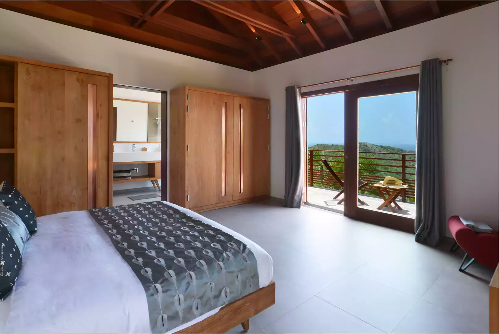 Située sur les hauteurs de Dévet, la Villa La Danse du Soleil offre une vue spectaculaire sur l’océan et sur la baie de Toiny. Son architecture mêle élégance contemporaine et charme caribéen, avec de beaux volumes, des poutres apparentes et une atmosphère chaleureuse. Le vaste séjour s’ouvre sur la terrasse et la piscine à débordement, idéale pour admirer les couchers de soleil ou se détendre face à la mer.
