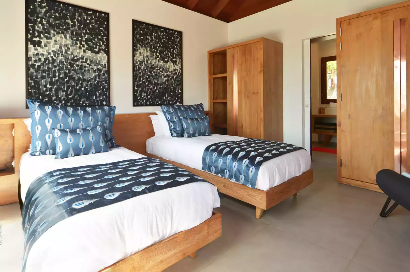 Les cinq chambres, réparties entre la maison principale et plusieurs bungalows indépendants, garantissent confort et intimité à chacun. Certaines disposent d’une terrasse privée, d’une piscine partagée ou encore d’une vue panoramique sur l’océan.
