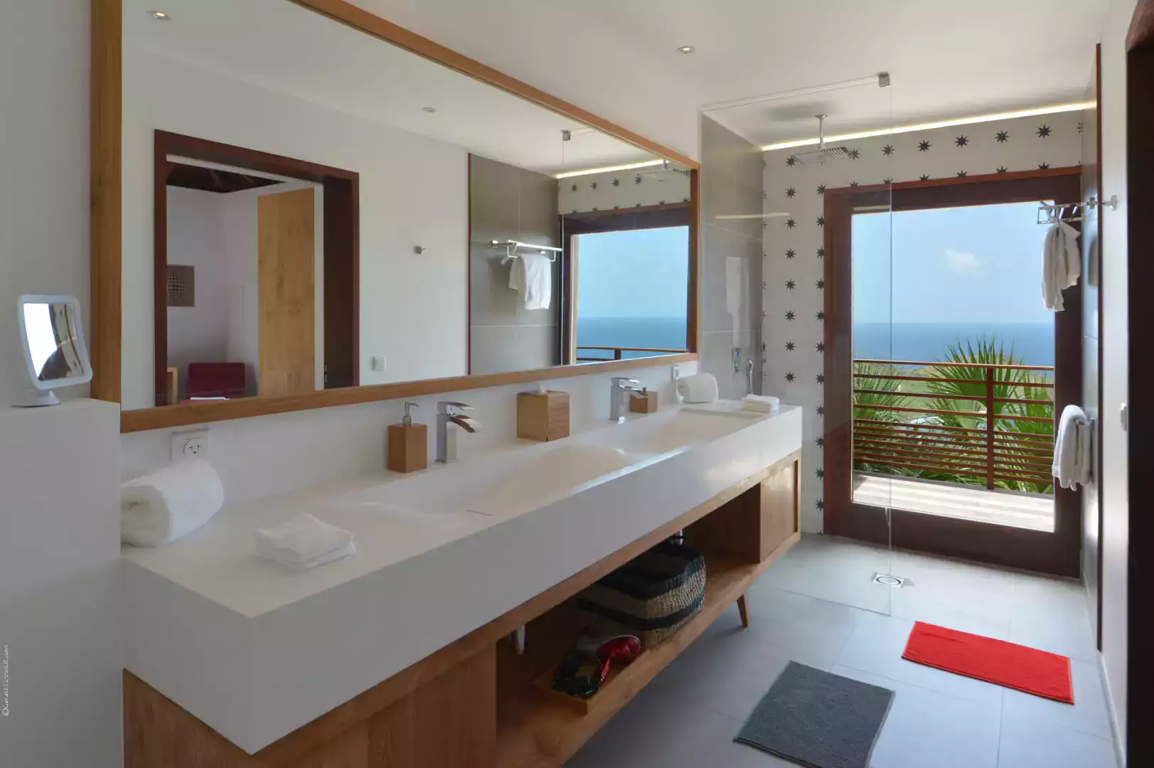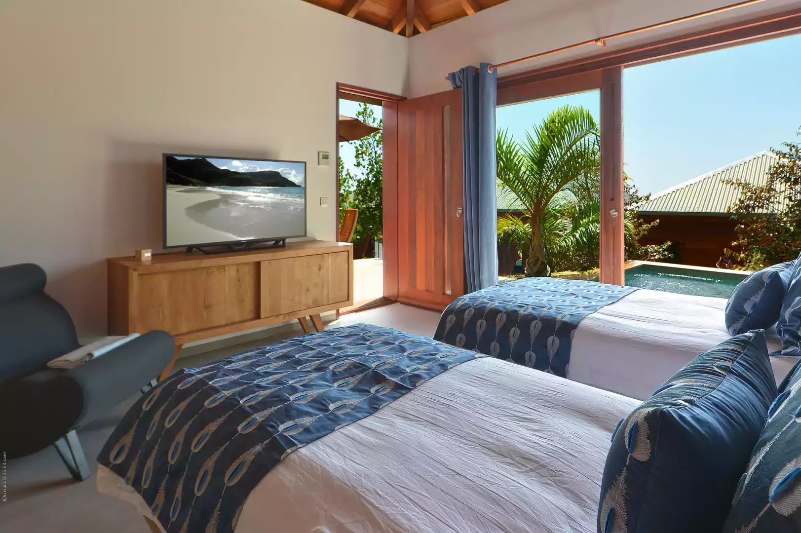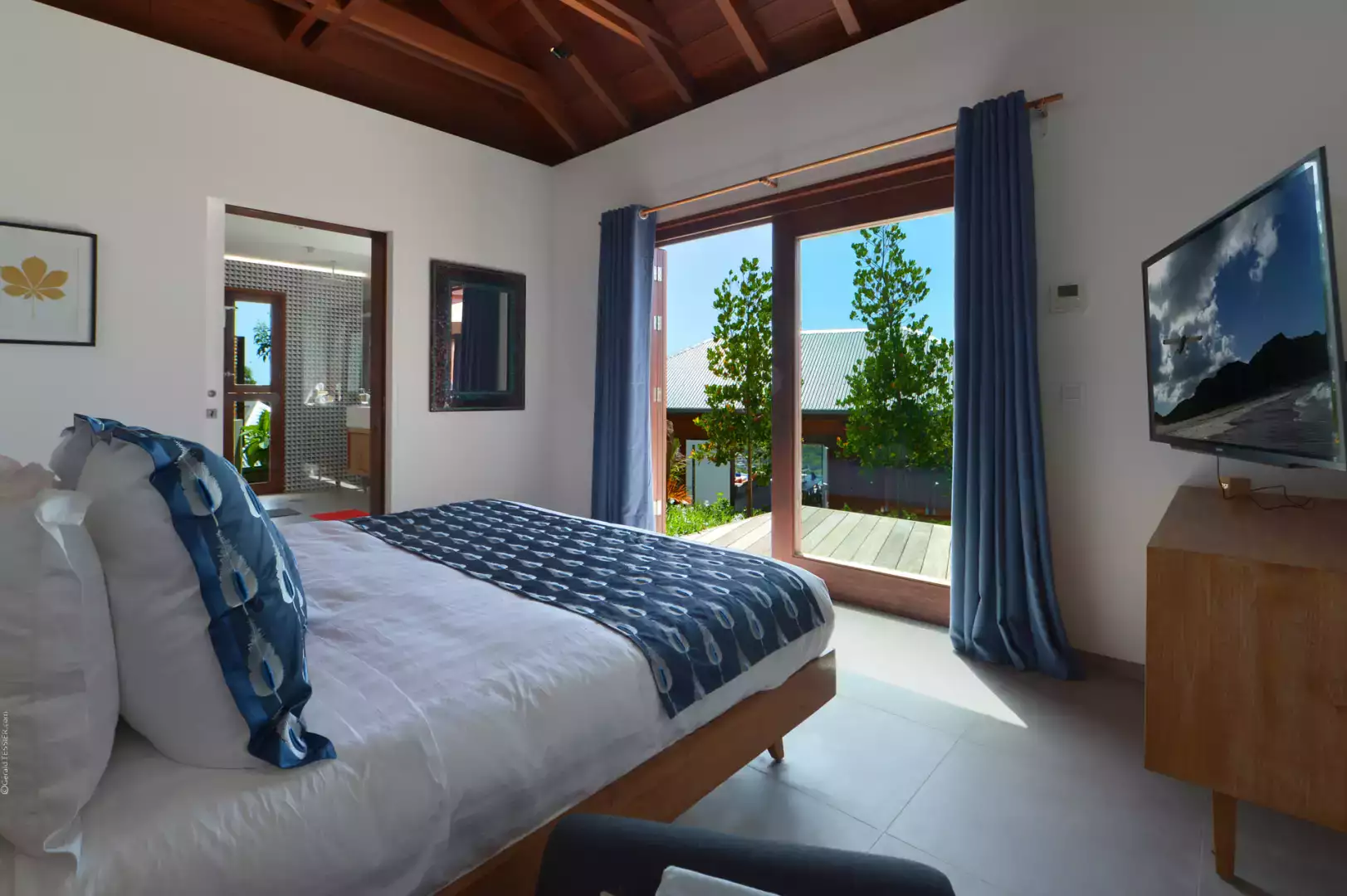 Entourée de végétation tropicale, la villa invite à la détente dans un cadre paisible et raffiné, à proximité des plages et restaurants de Grand Cul de Sac.