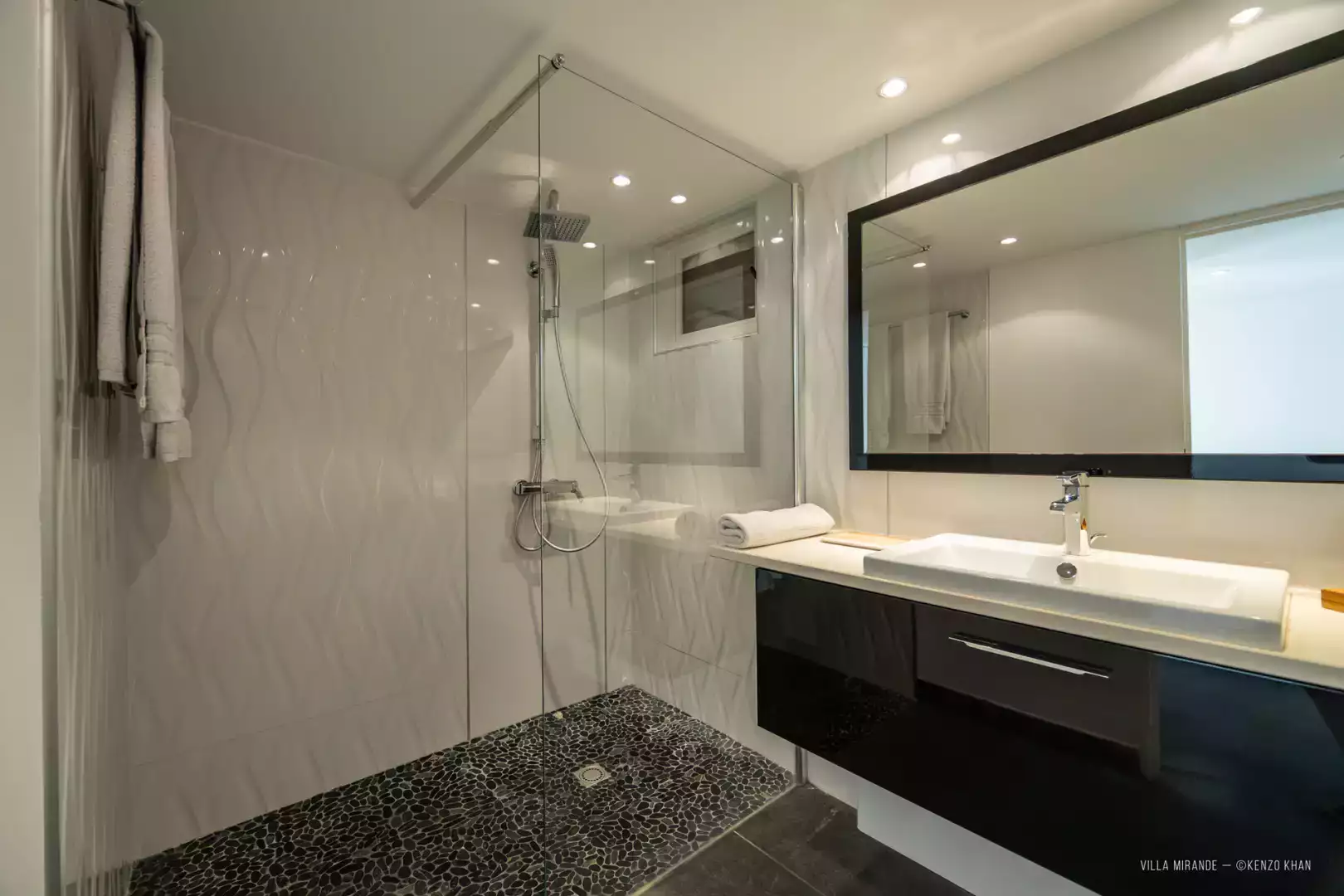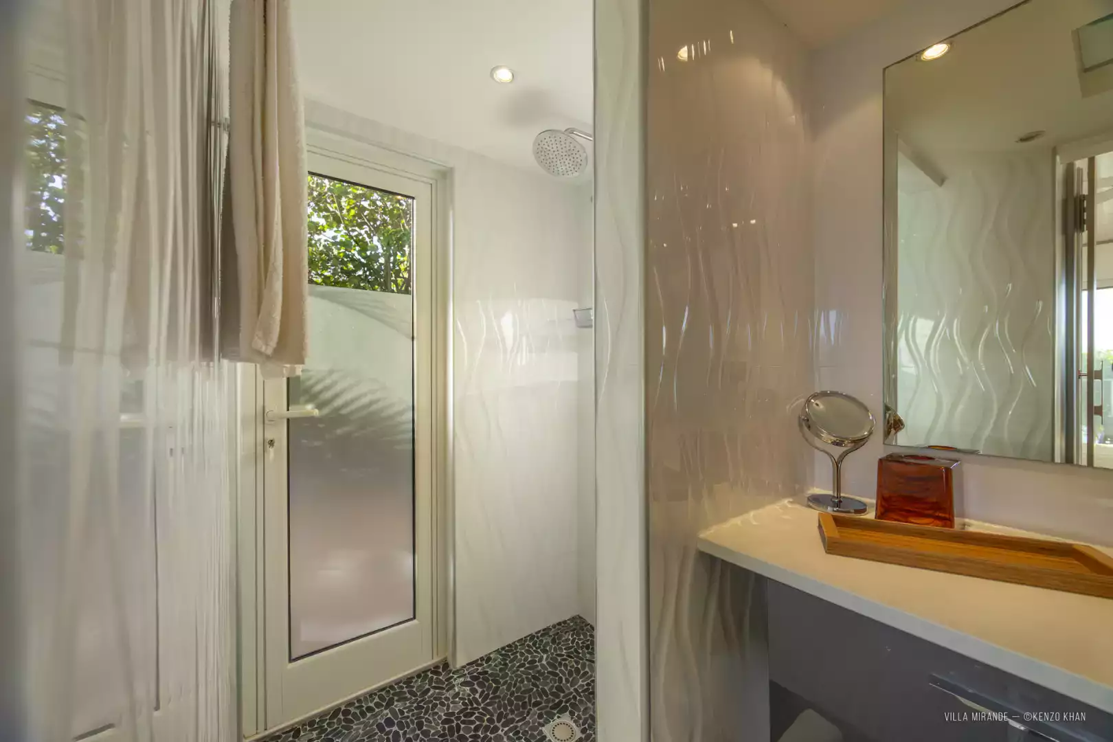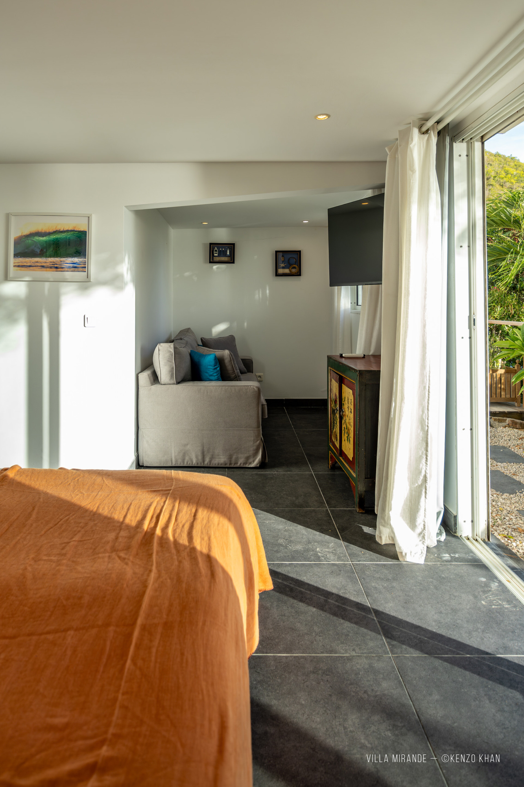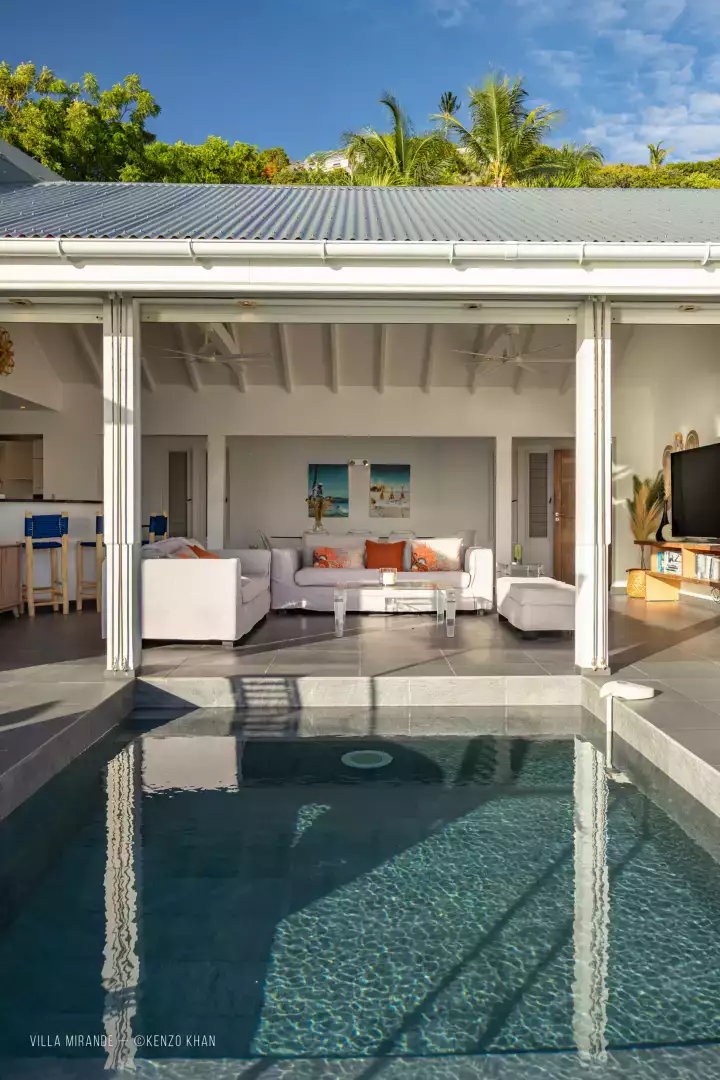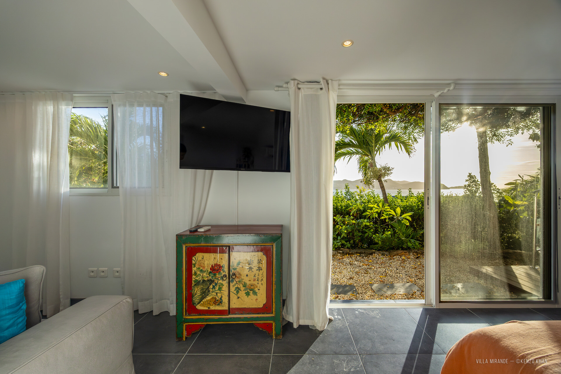 L’espace de vie est conçu dans un style typique de St Barth, avec de grandes ouvertures vers l’extérieur, permettant une fluidité entre la terrasse et la piscine à débordement. La villa dispose de toutes les commodités modernes et jouit également d’une situation privilégiée, à seulement quelques minutes du lagon de Cul de Sac et de la plage prisée des surfeurs à Lorient.