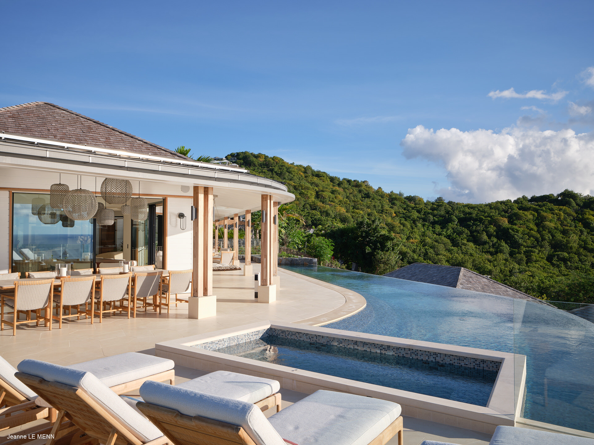 Perchée sur les hauteurs de Lurin, la Villa Sel offre une vue spectaculaire sur la mer et les couchers de soleil, dans un environnement privilégié à St Barth. Cette propriété contemporaine séduit immédiatement par son architecture élégante et ses lignes épurées, parfaitement intégrées dans le paysage.