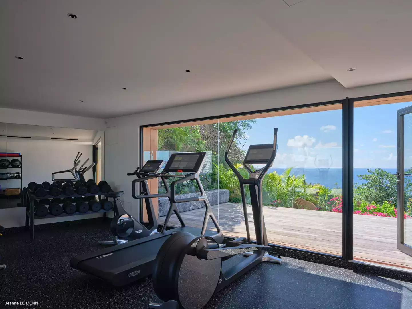 Pensée pour le bien-être, la Villa Sel propose également une salle de fitness entièrement équipée ainsi qu’un espace massage au cœur du jardin.